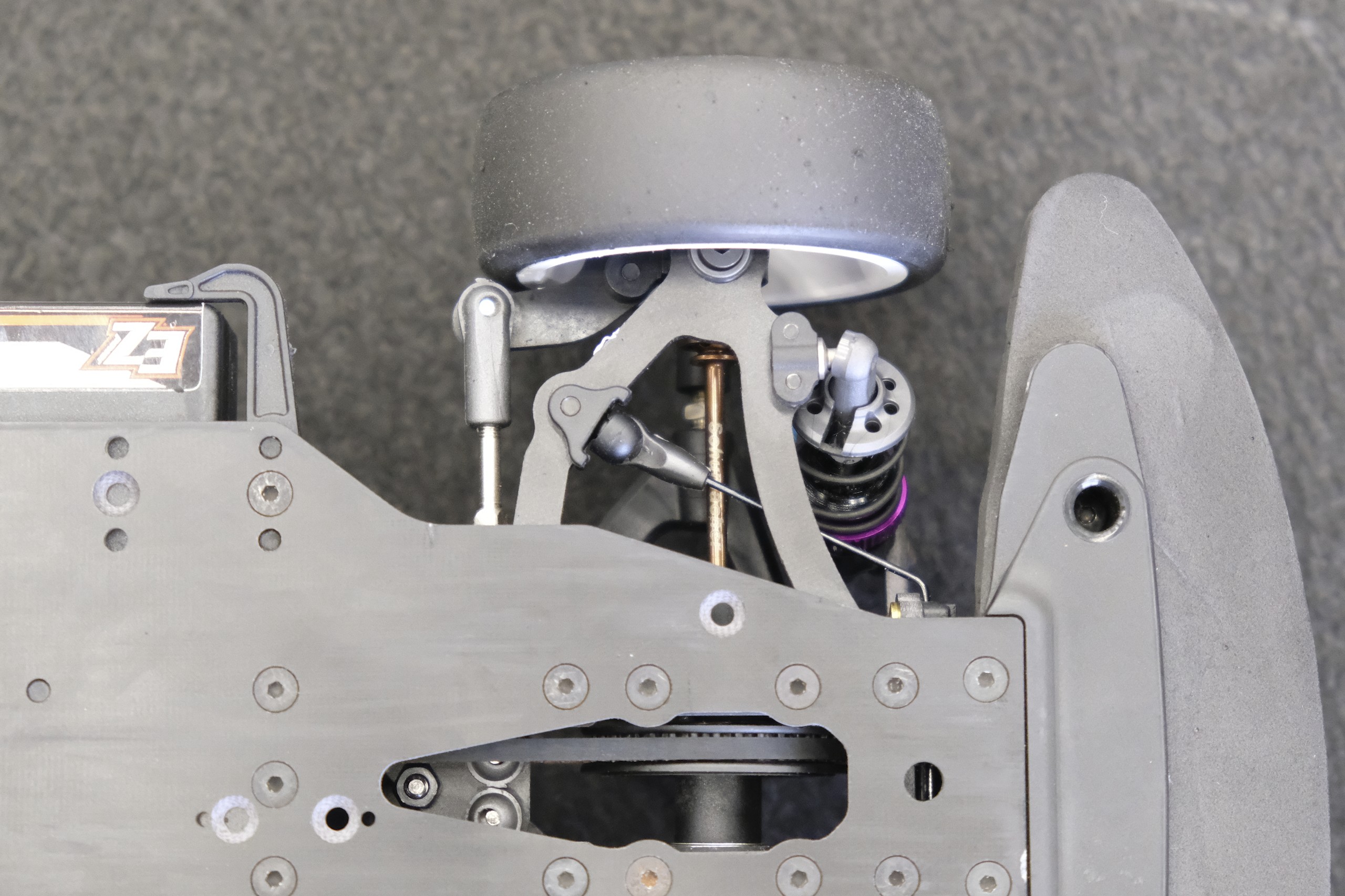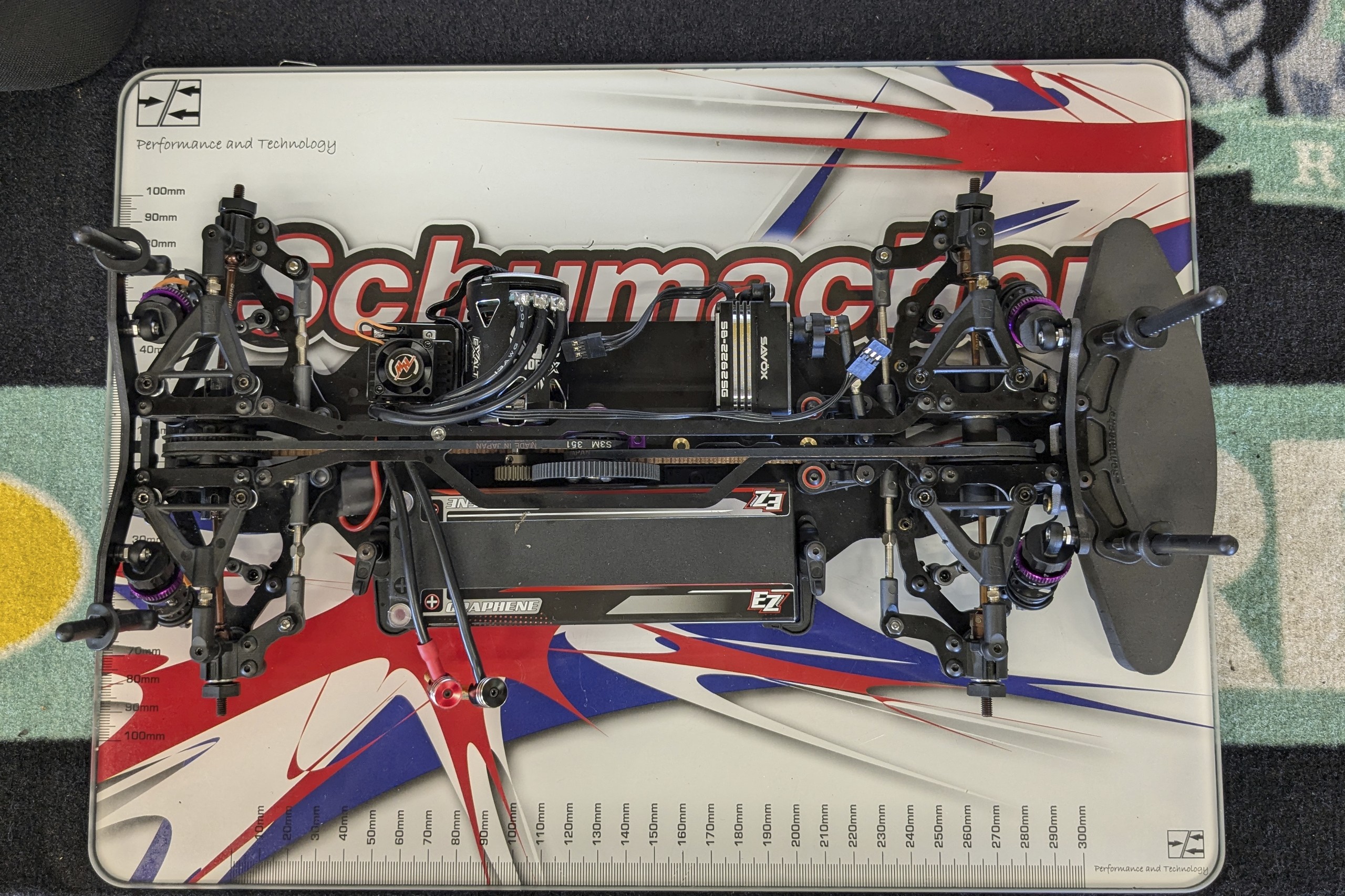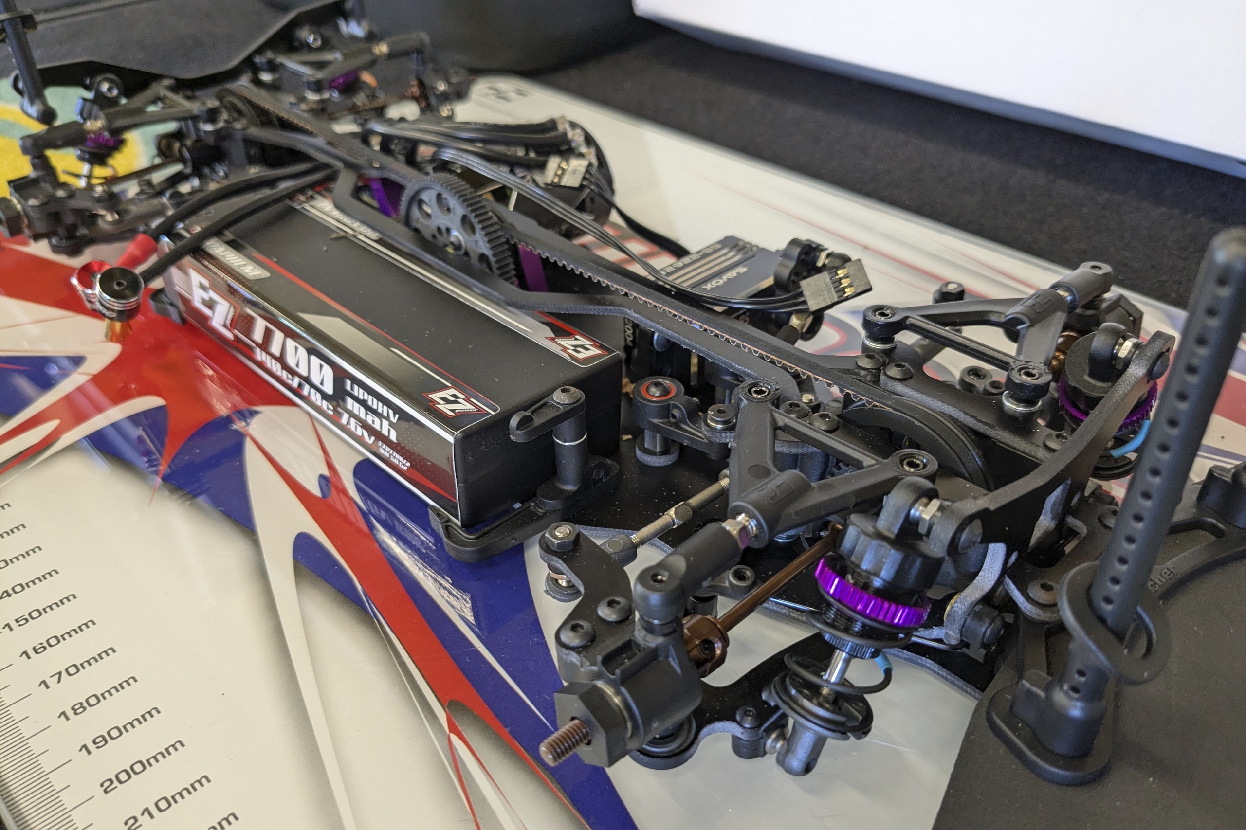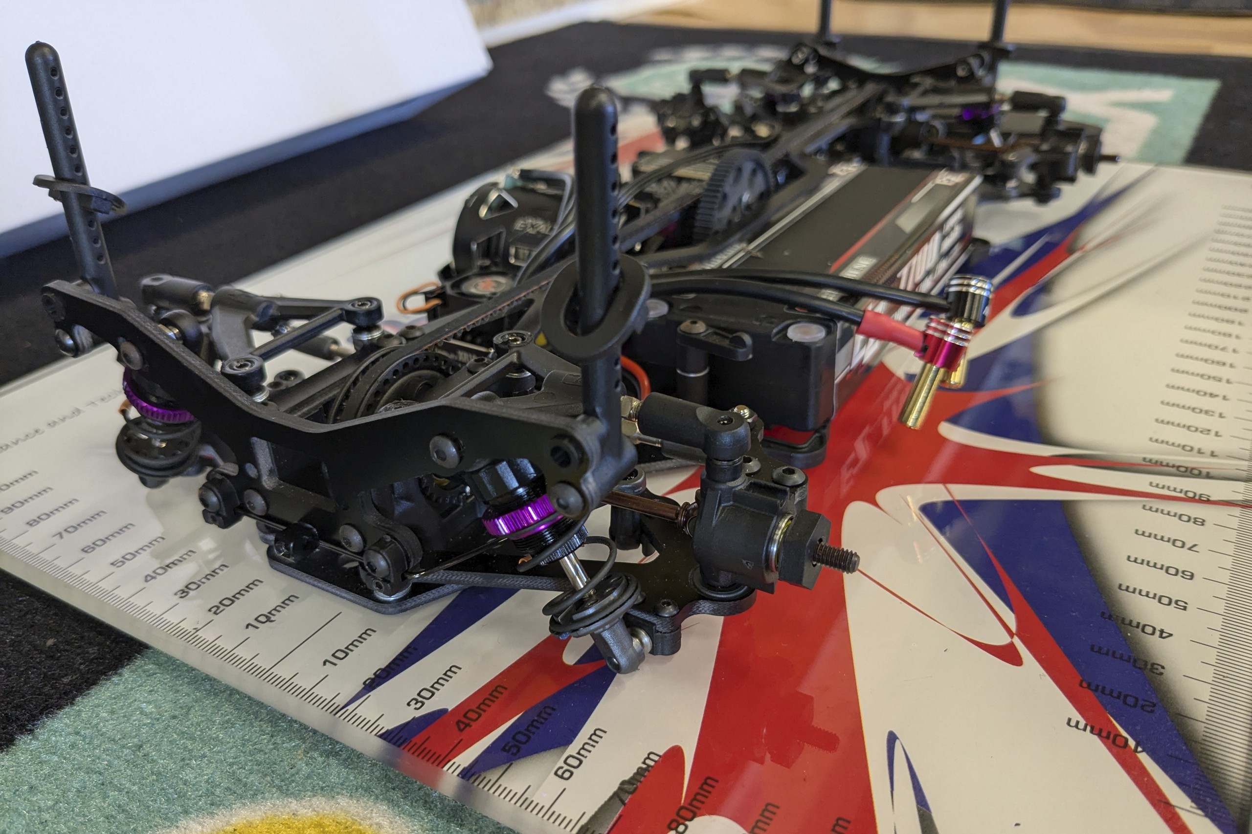 Une troisième série de photos de cette Schumacher Vibe TC lorsqu'elle était en cours de montage et avant les réglages. |