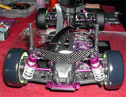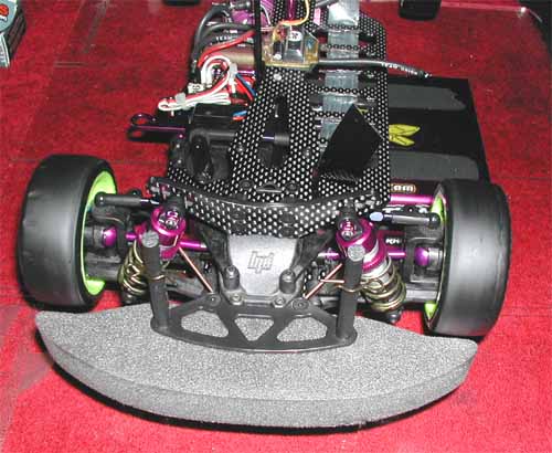 La HPI RS4 Pro4 de Jean-Marc Betticher.Jean-Marc Betticher faisait ses premiers tours de roues en championnat genevois à la toute nouvelle HPI RS4 Pro4 (voir l'article consacré sur ce même site). La voiture semble sur la piste facile et mécaniquement bien né. JMB avait installé une colonette de servo faisant également office de porte-puce et utilisait du scotch armé pour fixer le pack de propulsion au lieu de la barre d'origine. |