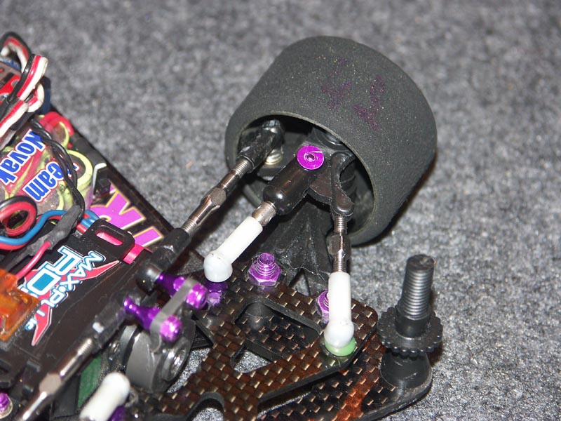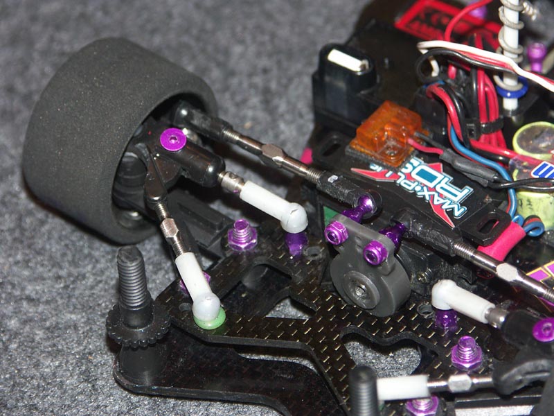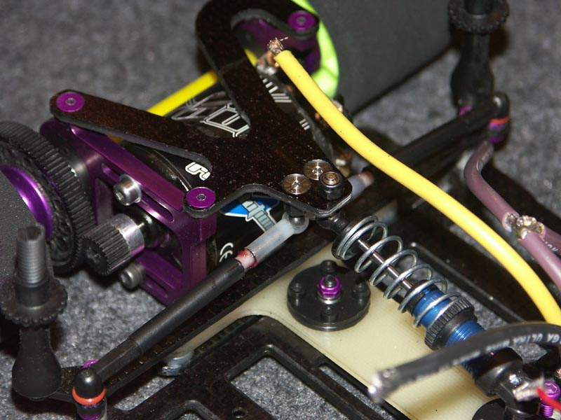 La Trinity Switchblade de Pierre Lebreton.Pierre Lebreton pilotait une Switchblade 12 avec un magnifique châssis en carbone pailletté purple (pas facile à rendre en photo ;-). |