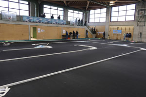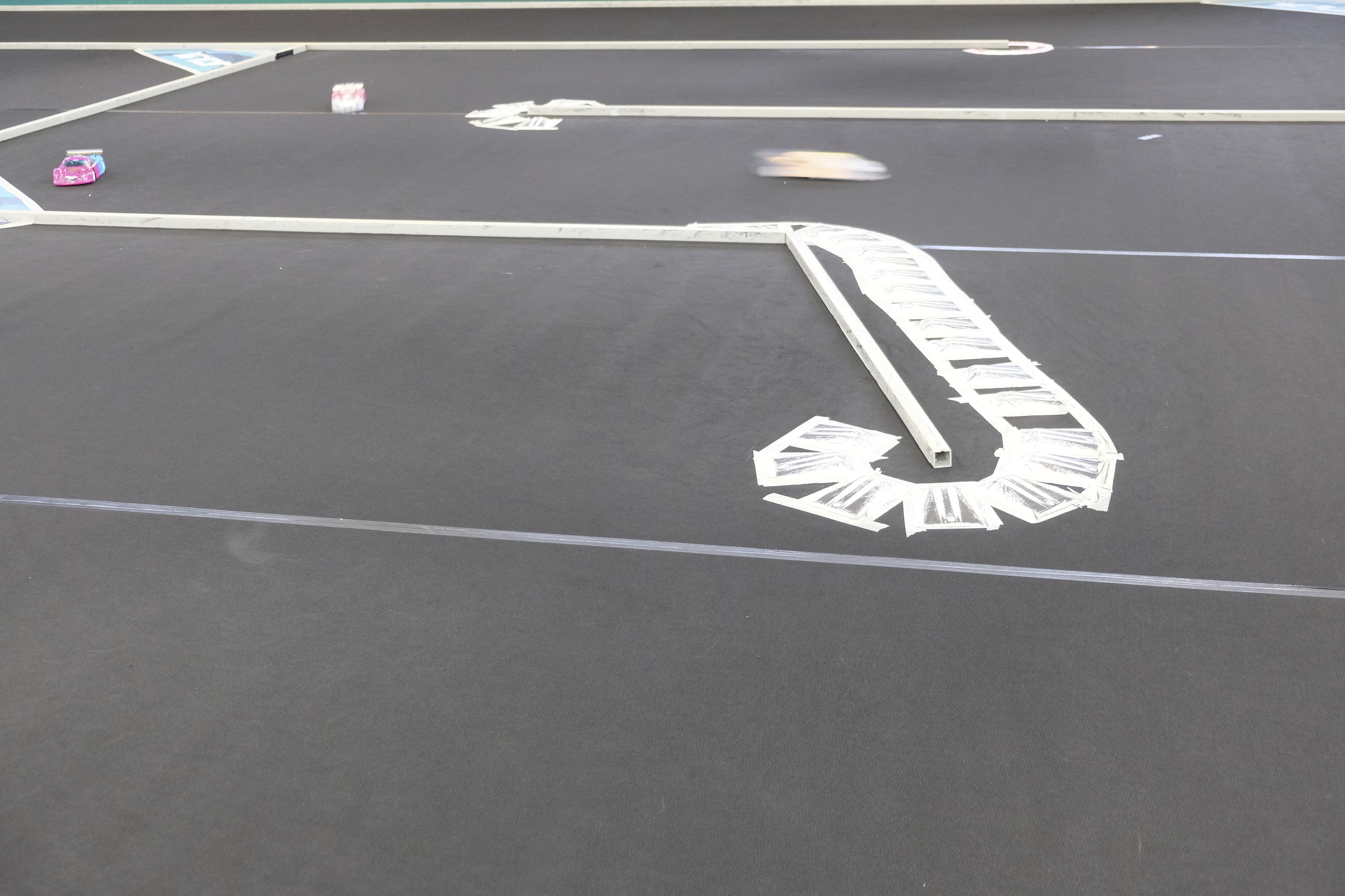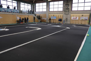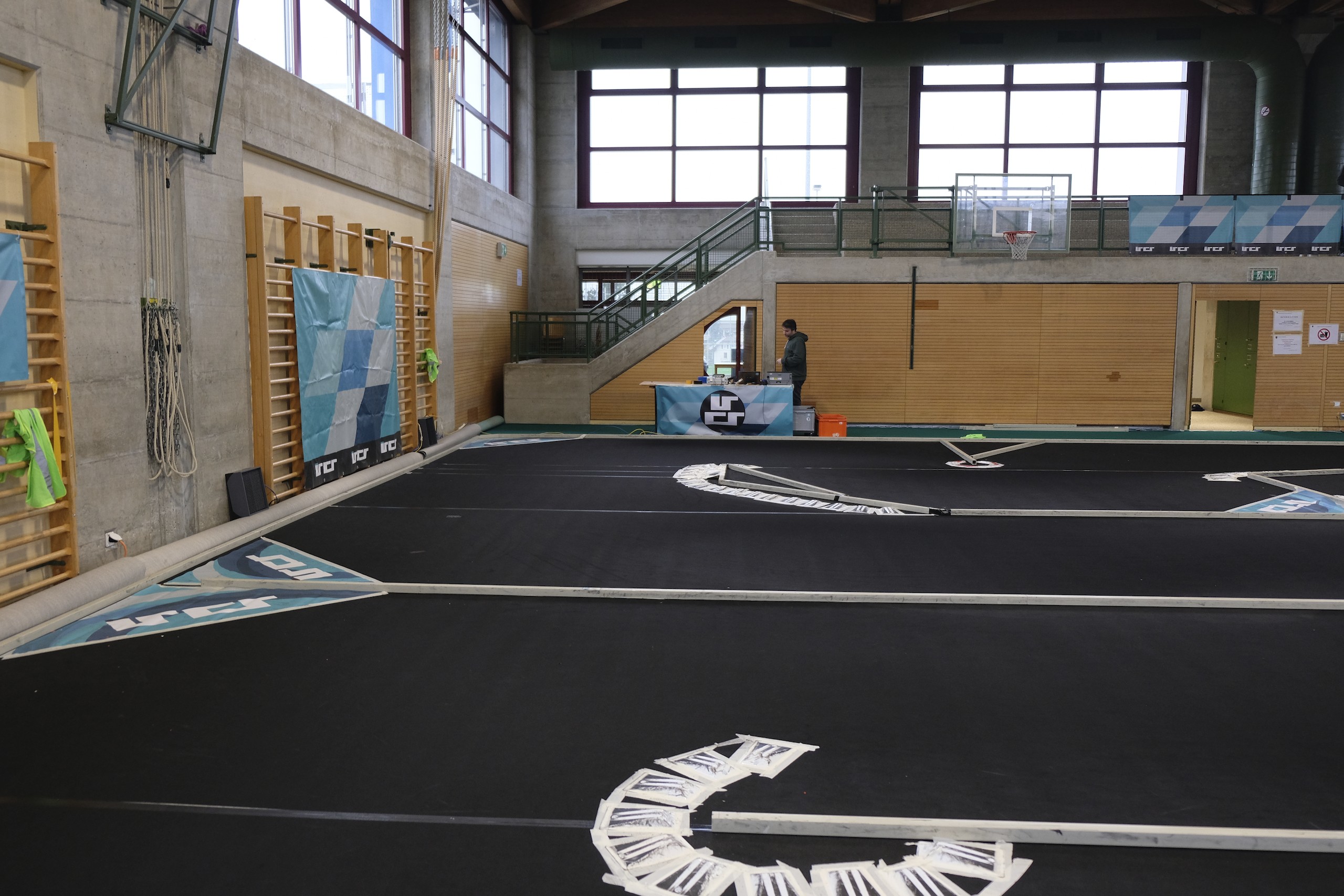 Le règlement officiel se trouve à l'adresse suivante: https://ircr.ch/competitions/ Le samedi après-midi est consacré au montage de la piste jusqu'à 14h00 environ et ensuite aux essais libres (avec une tranche de un quart d'heure toutes les heures prévue pour les pilotes débutants), et le dimanche à la course, avec quatre manches de qualification et trois de finale. La piste.La moquette est toujours de type ETS, achetée chez le fournisseur officiel RC-Carpet.com aux Pays-Bas pour le début de la saison 2024-2025. Le balisage modulable est toujours constitué de poutres en profilé GEHR 50x50x4mm en PP et d'éléments de connexion semi-rapide et de vibreurs moulés spécifiques, associés à du balisage "Track KERBS System" du fabricant japonais Team Tetsujin. Pour cette première manche, un tracé pratiqué dans le sens horaire avait été choisi. La ligne de comptage se situait dans la courbe du coin droit de la piste, du point de vue du podium. Cette courbe débouchait directement sur une chicane suivie d'une ligne droite au pied du podium. Cette dernière enchainait sur un premier virage serré à droite à 180°, un second à gauche, , puis une plus grande remontée à droite menant à une autre chicane débouchant sur une ligne droite. Après celle-ci, s'enchainent un virage serrée à 180° à droite, un court bout droit suivi d'un grand virage à gauche à plus de 200° qui débouche sur un court bout droit, puis un plus grand virage à droite qui plonge vers la liigne de comptage. |