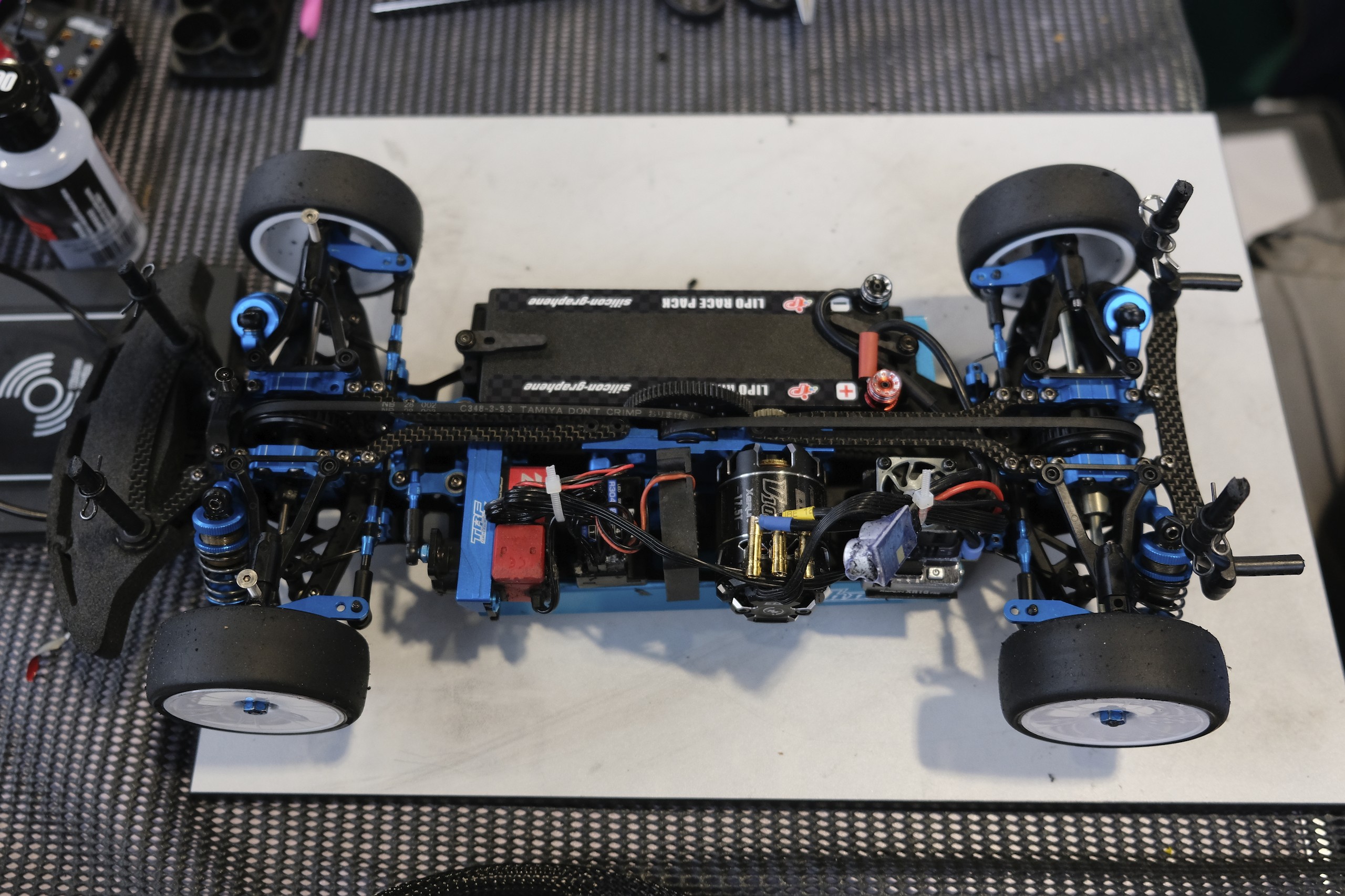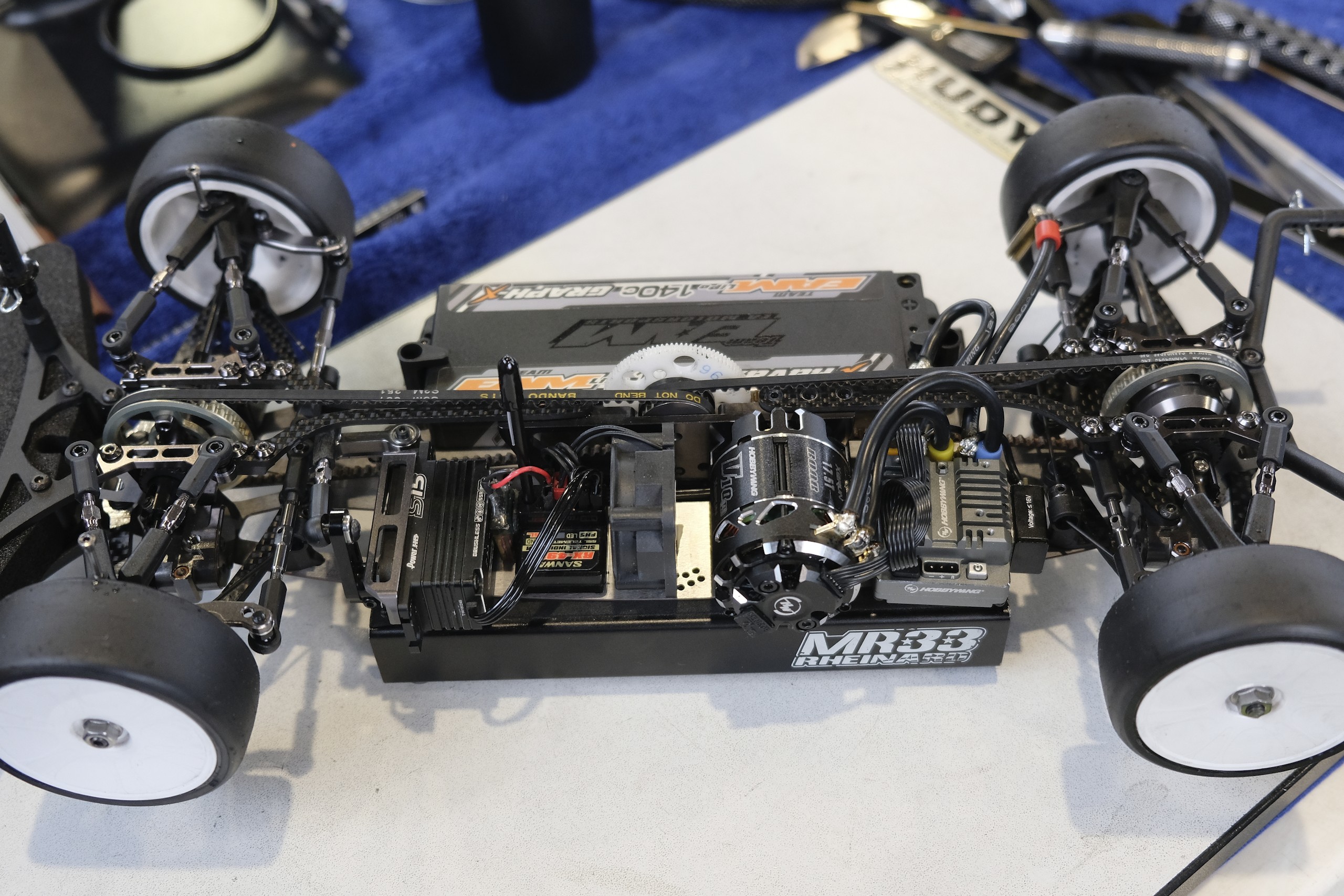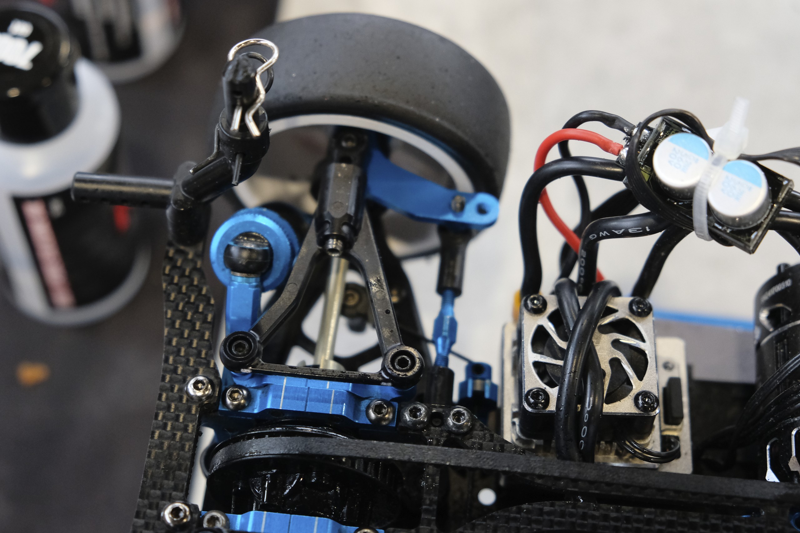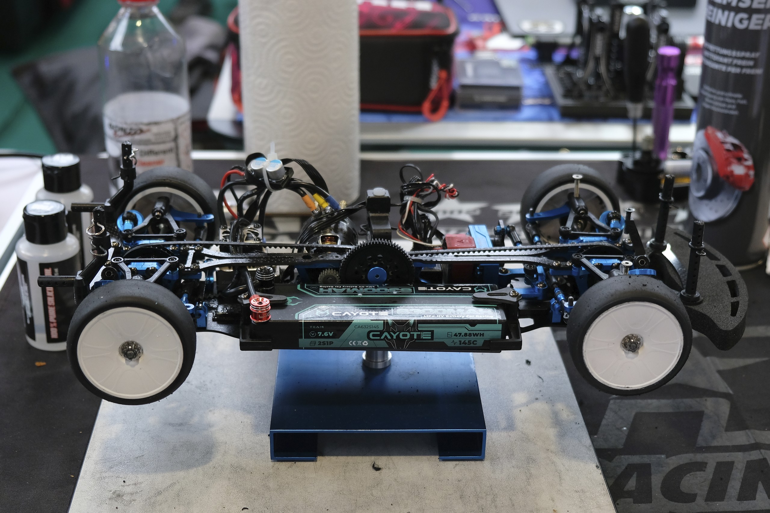 La Tamiya TRF421 de Eric Heubi.Trois pilotes courraient lors de cette première manche des IndoorsSeries de la saison 2025-2026 avec une Tamiya TRF421. La première, celle de Markus Heubi, est motorisée par un moteur brushless 17.5T Hobbywing Xerun V10 Pro G4 associé à d'un contrôleur Xerun XR10 Pro G2 de la même marque, alimenté par des batteries LiHV LCG de 6300mAh de marque Cayote. La partie radiocommande est confiée à Futaba et le servo de direction est un "low-profile" de marque AGFRC référence A50BHLW. |