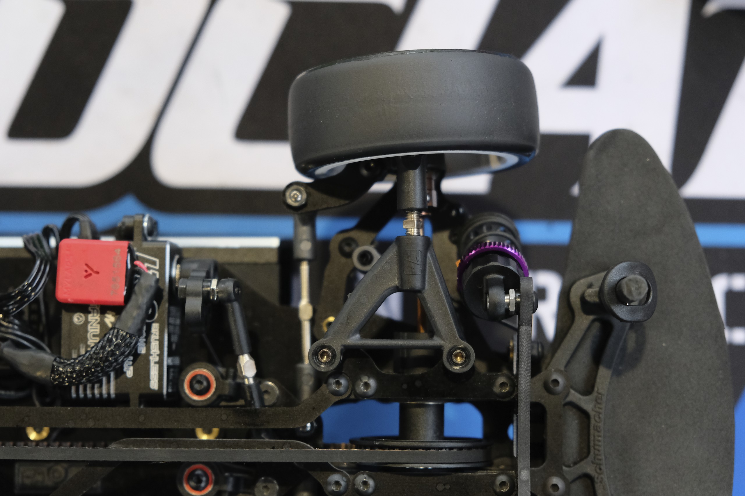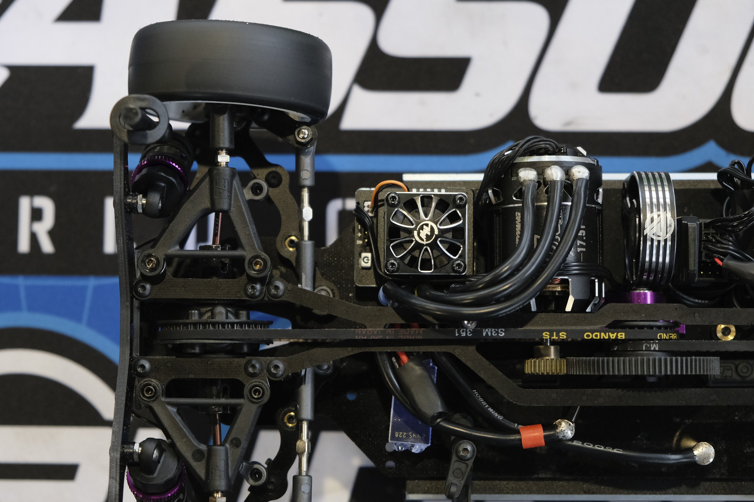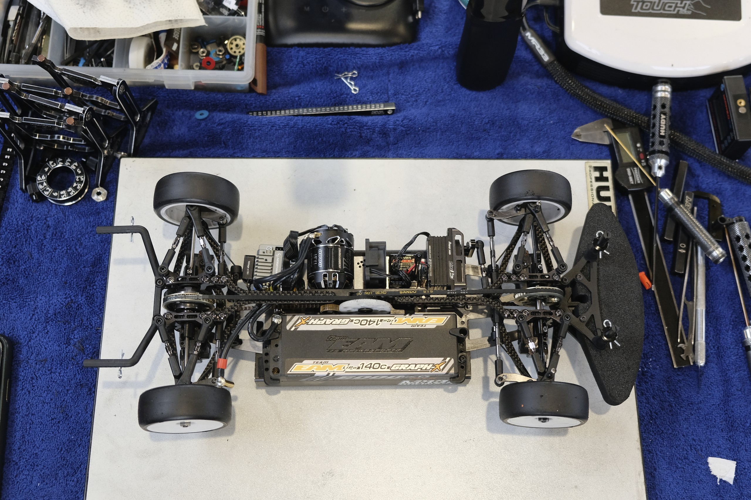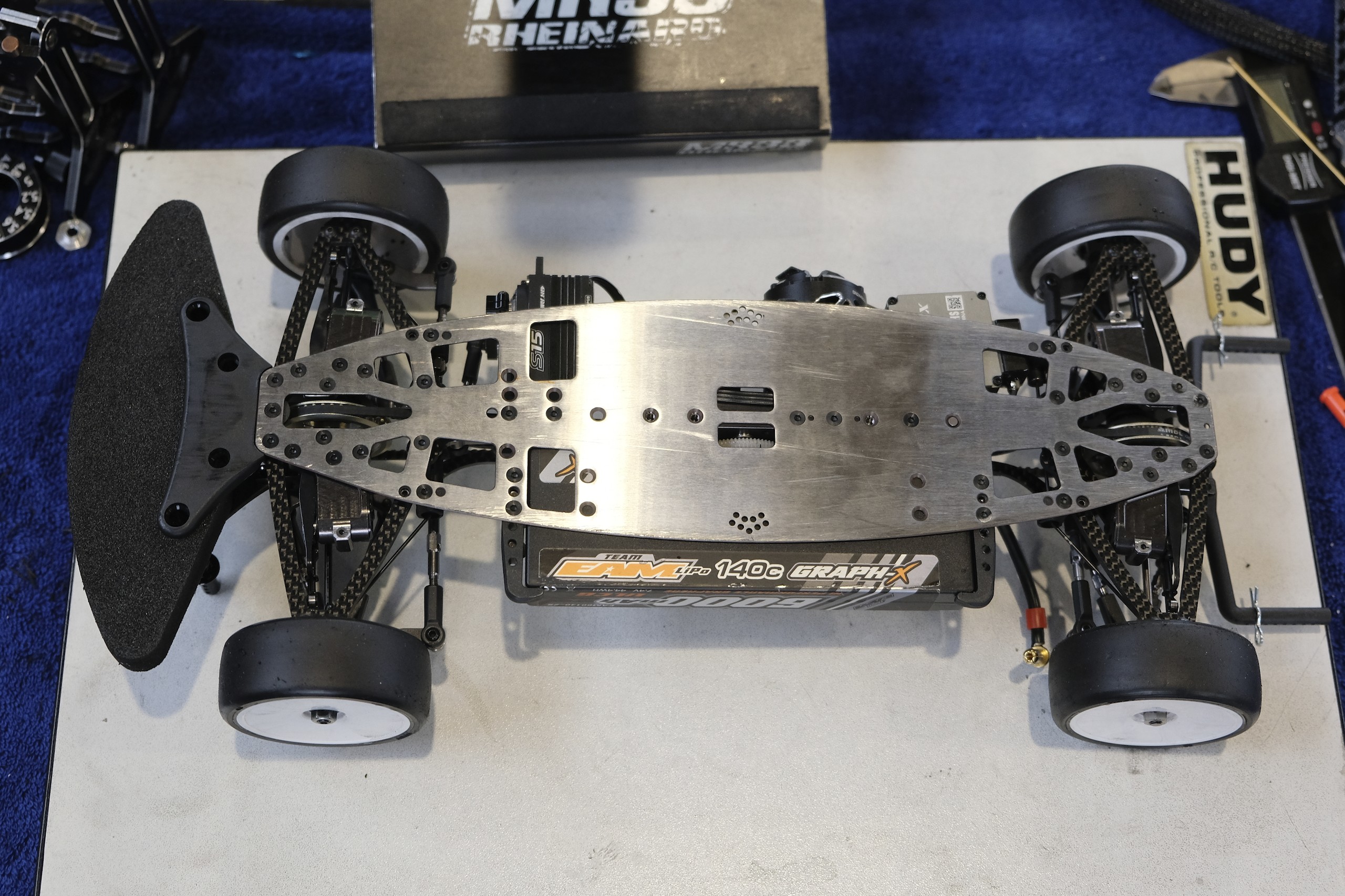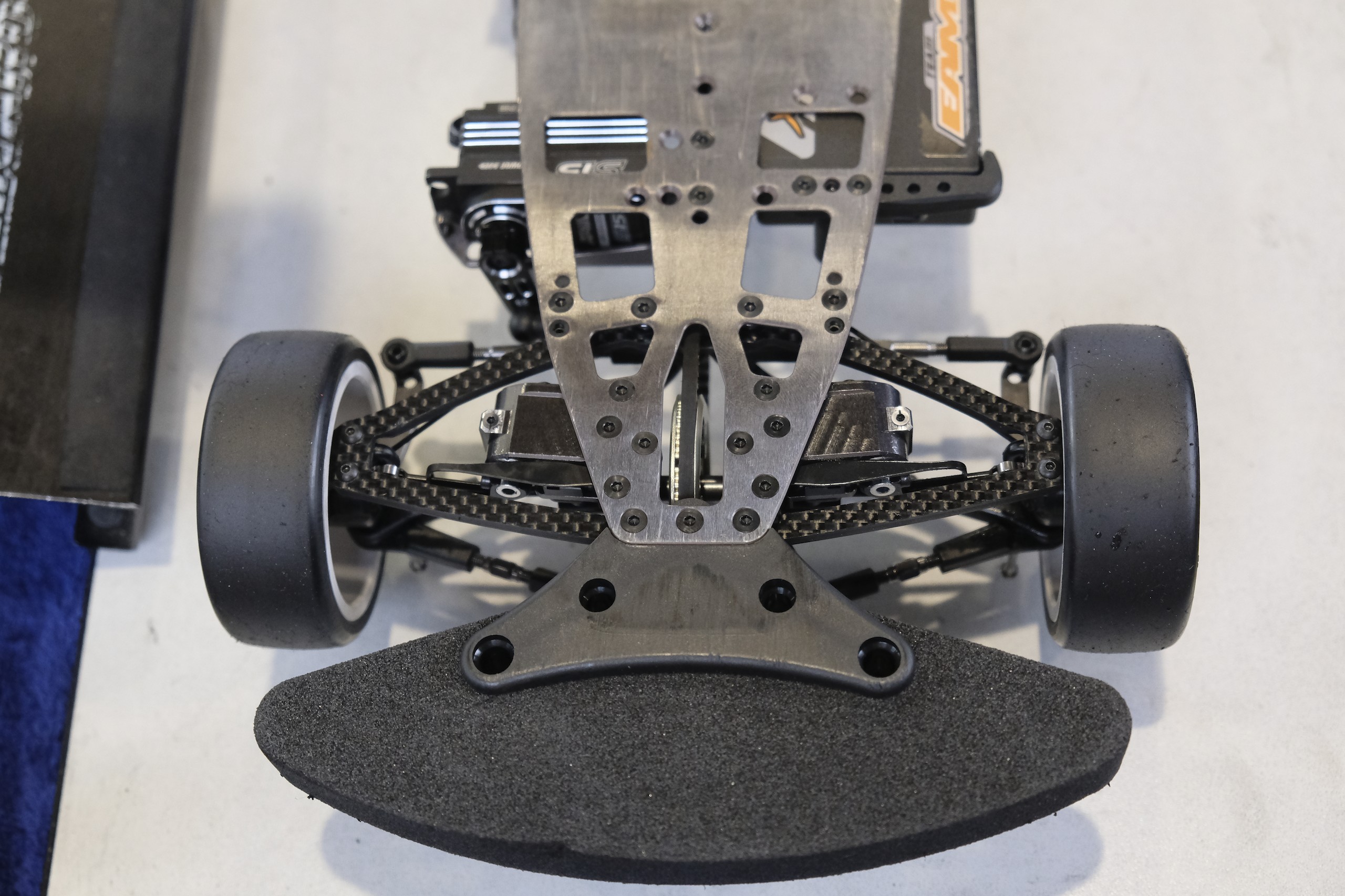 La Tamiya TRF421 de Eric Heubi.Trois pilotes courraient lors de cette première manche des IndoorsSeries de la saison 2025-2026 avec une Tamiya TRF421. La première, celle de Markus Heubi, est motorisée par un moteur brushless 17.5T Hobbywing Xerun V10 Pro G4 associé à d'un contrôleur Xerun XR10 Pro G2 de la même marque, alimenté par des batteries LiHV LCG de 6300mAh de marque Cayote. La partie radiocommande est confiée à Futaba et le servo de direction est un "low-profile" de marque AGFRC référence A50BHLW. |
