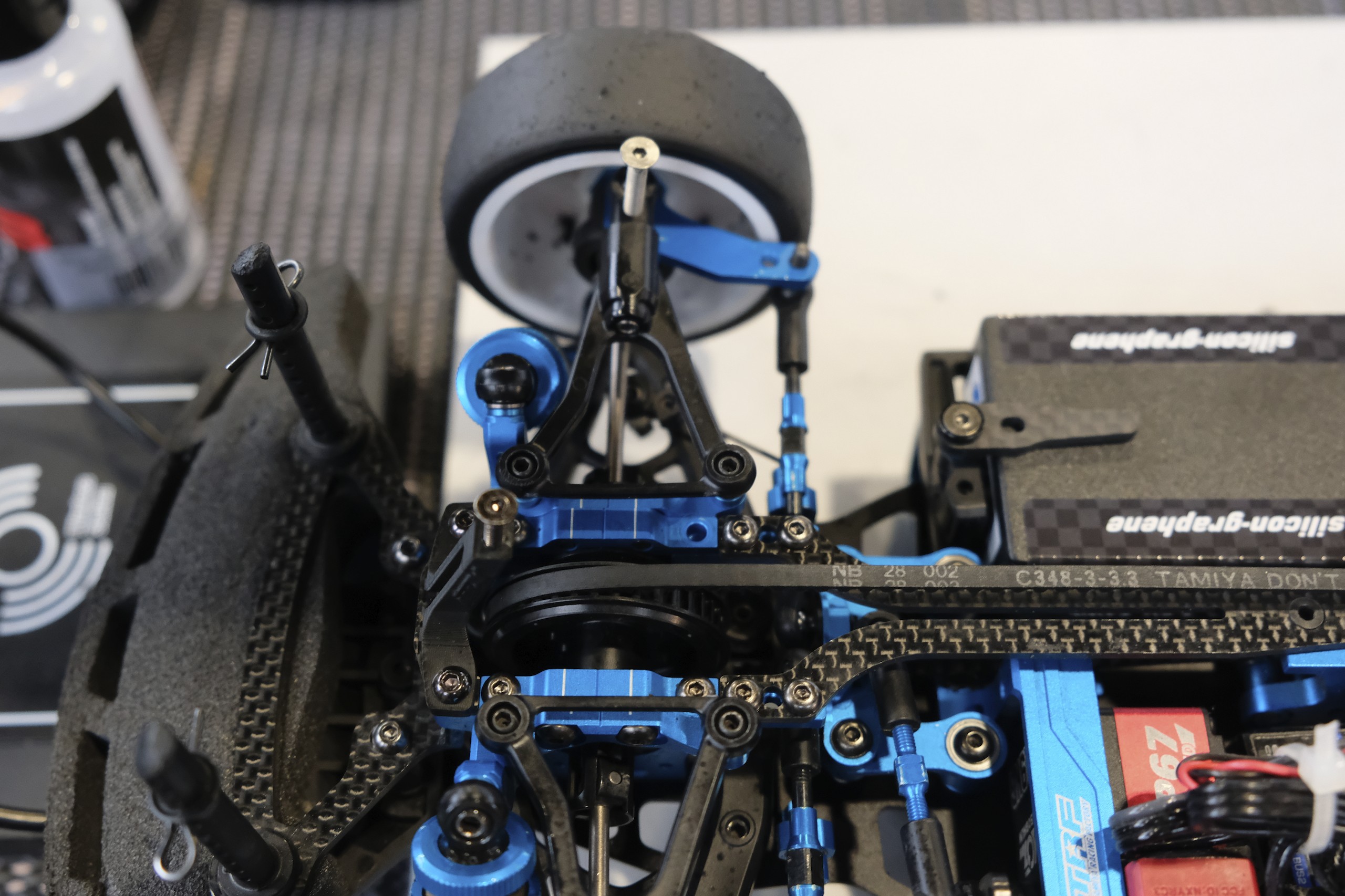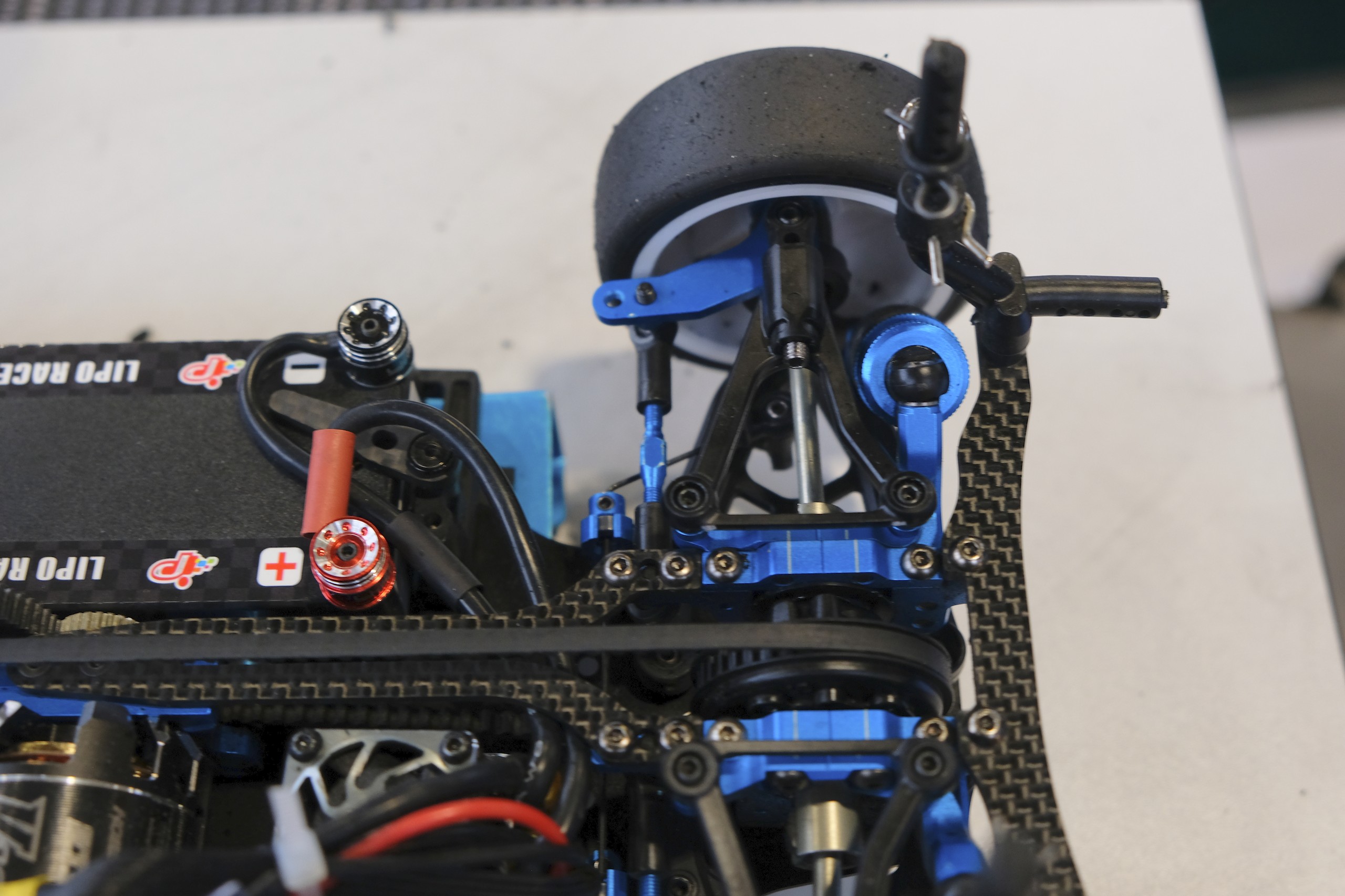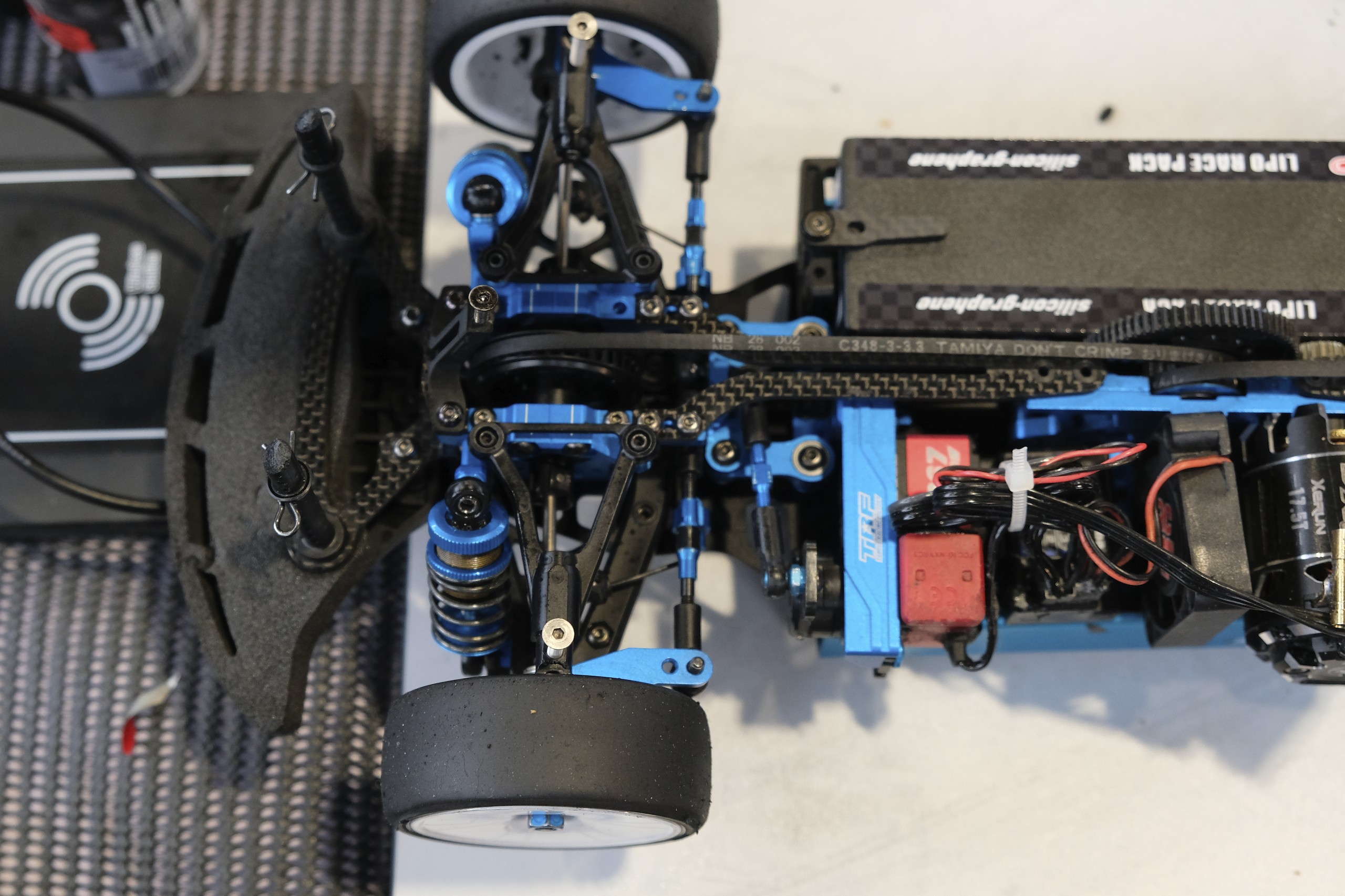 Technique châssis.Beaucoup de propriétaires de Tamiya TRF421 souhaiteraient remplacer les bras de direction en aluminium des porte-fusées d'origine par des versions en carbone, surtout à l'avant, car ils ont tendance à se voiler en cas de chocs un peu violent. Il en existe déjà, par exemple chez le fabricant anglais M-Racing (de qualité inconnue) et chez le fabricant hong-kongais H2RD. Malheureusement, chez ce dernier, la qualité n’est pas vraiment au rendez-vous. En effet, le trou oblong de ces bras est trop large d’environ 0.3mm. Ils sont donc inutilisables en l’état. Seul solution, combler ce vide tant bien que mal avec de la colle cyanoacrylate... Il est d'ailleurs sidérant de voir qu'aucun fabricant ne propose d'options pour la Tamiya TRF421 alors qu'il y a des besoins évidents (il suffit de trainer un peu sur les forums et les réseaux sociaux...) alors que ces mêmes fabricants proposent une ribambelle d'options inutiles pour des autos qui ont des volumes de vente infiniments plus faibles que pour ladite TRF421... Des bras de direction en carbone des porte-fusées pour TRF421 en photos ci-contre étaient en test lors de lors de cette course. Ils se différencient des H2RD par une qualité de carbone différente (la trame visible du tissu de carbone étant plus proche de celle proposée par Tamiya) et un usinage du trou oblong serré, ce qui est voulu et ce qui est très bien pour le guidage, mais qui impose un montage soigné bien à plat. Made in Besançon en France, il devrait bientôt être disponible dans la gamme de pièces THG du magasin français The Hobbies Gate. |