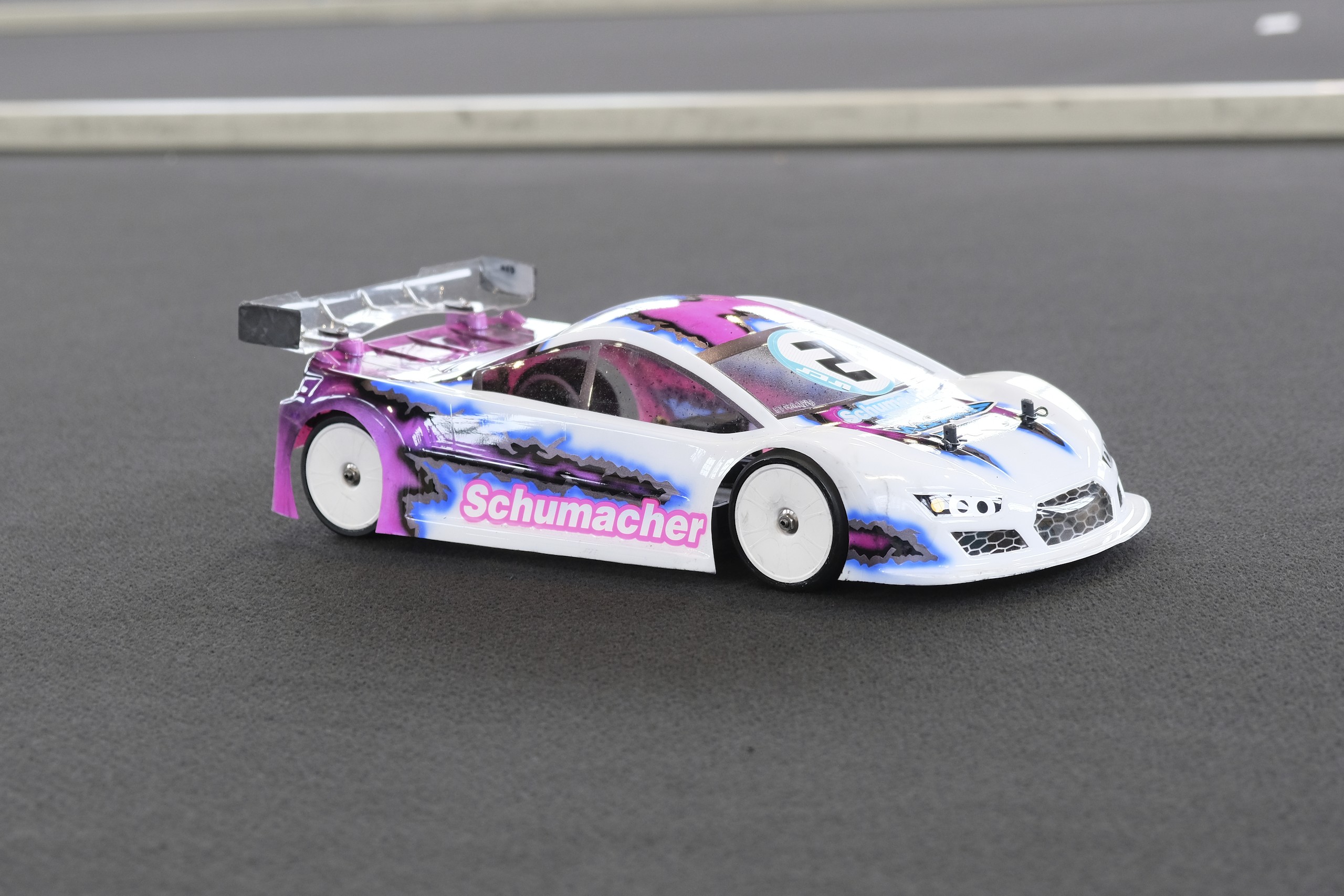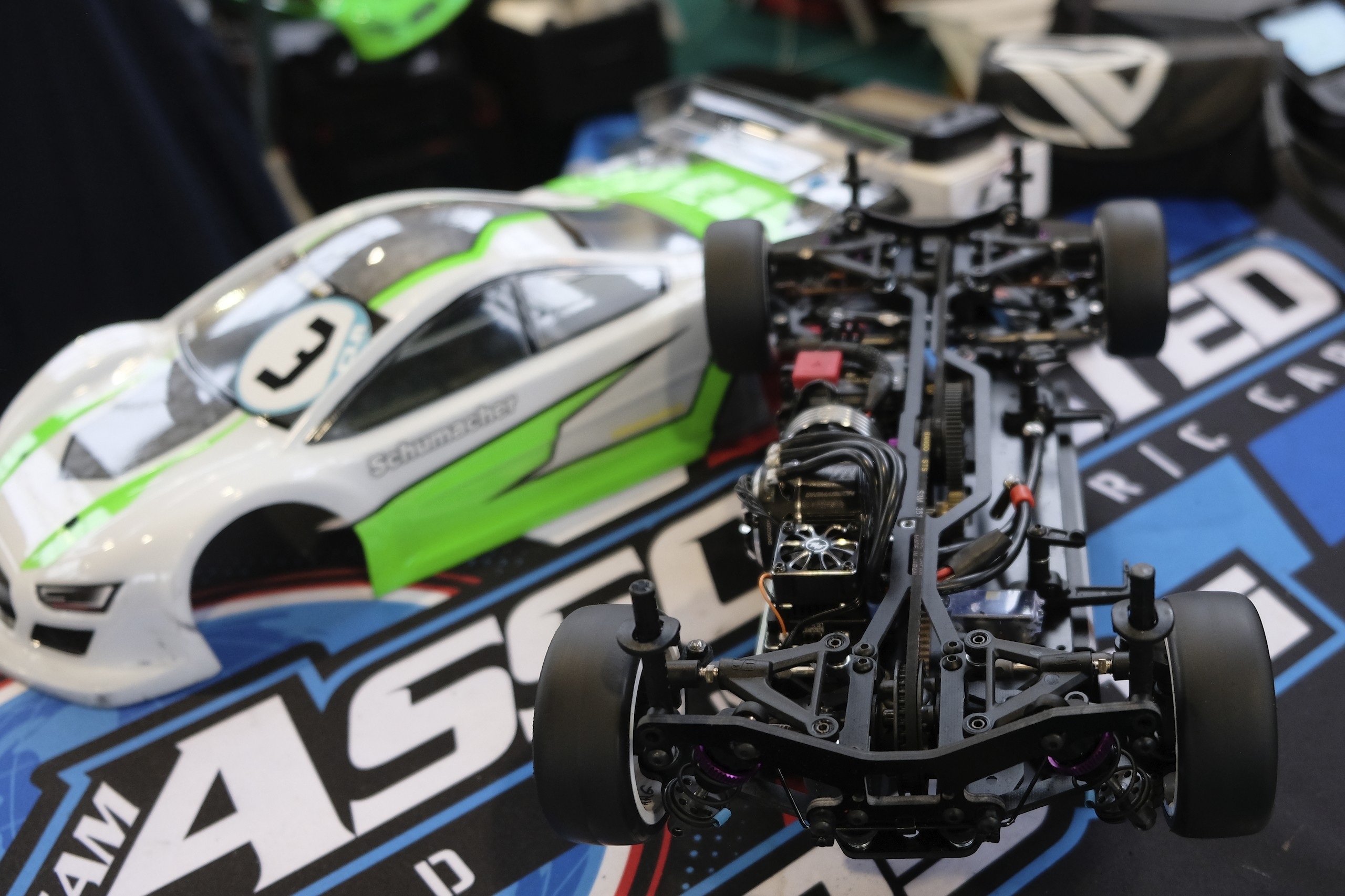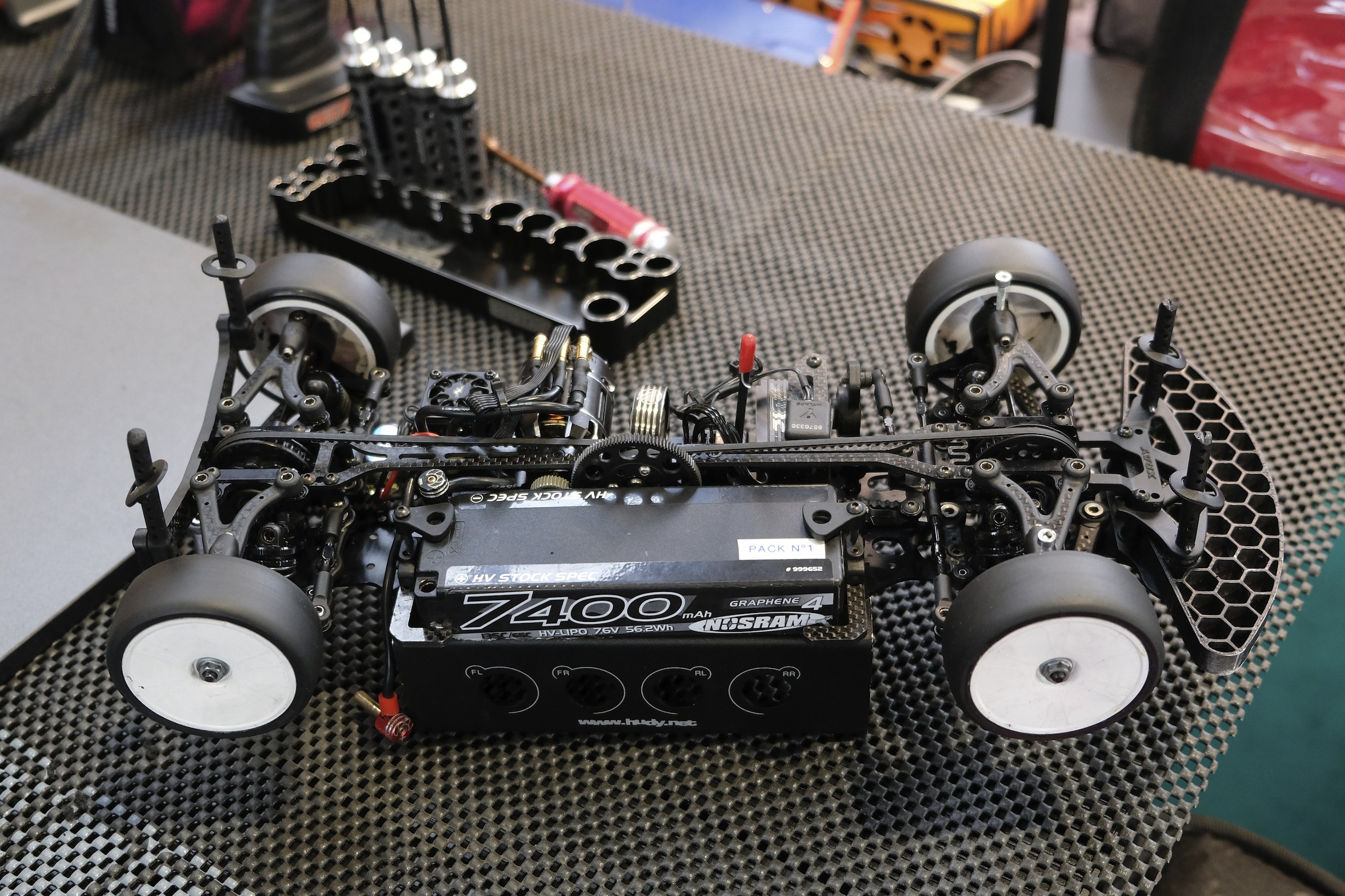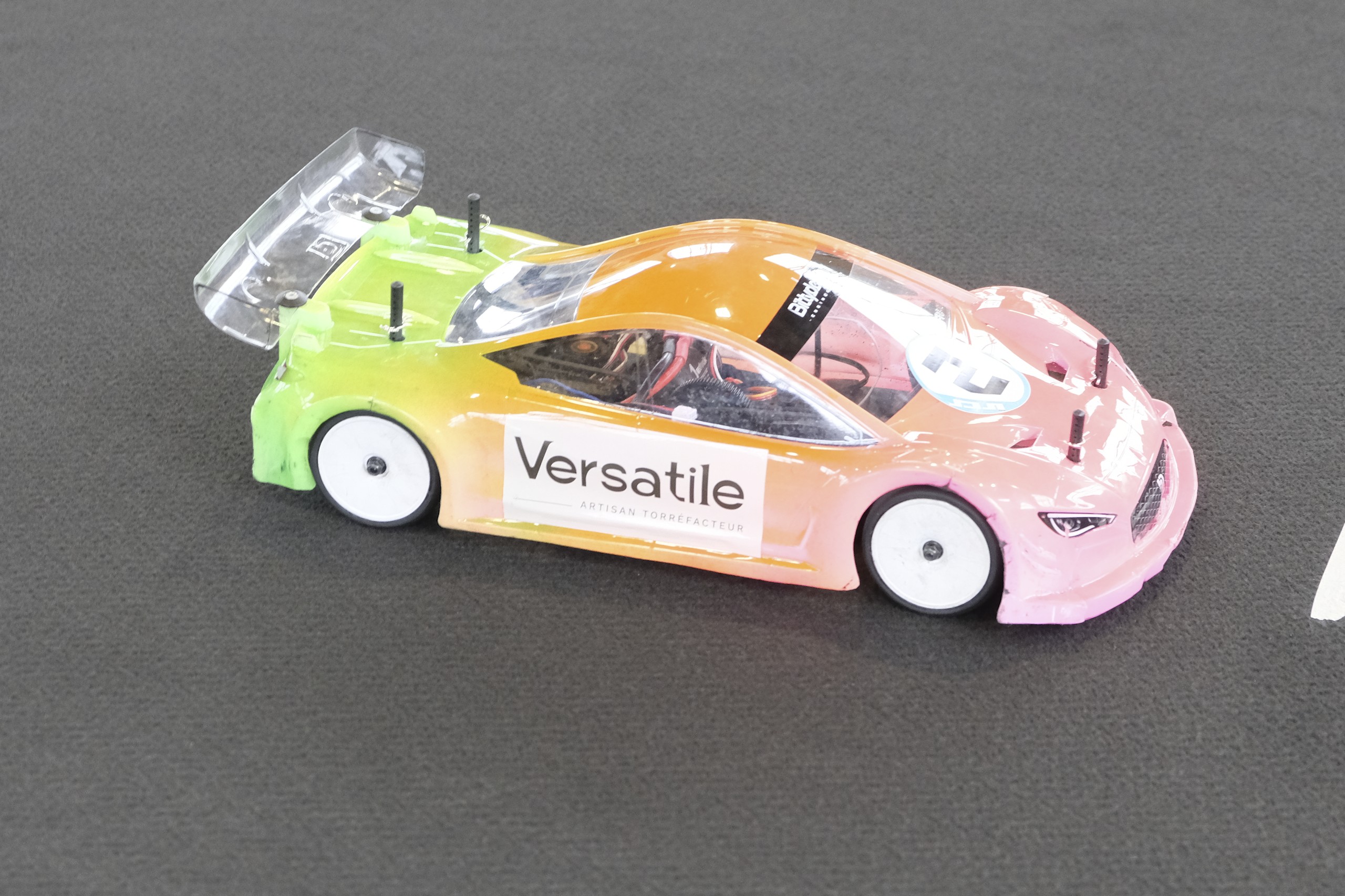 La Schumacher Vibe TC de Grégory Freiburghaus.Deux pilotes, dont Grégory Freiburghaus, roulait avec la nouvelle Touring 1/10° électrique entrée-de-gamme destinée à la compétition de la marque britannique Schumacher Racing Products, la Vibe TC. Cette dernière avait déjà fait l'objet d'une présentation détaillée sur ce même site début octobre. La Schumacher Vibe TC de Grégory Freiburghaus en photos ci-dessous est sensiblement d'origine, hormis l'adoption de barress antiroulis avant et arrière. L'auto en photos ci-dessous est motorisée par un moteur brushless 17.5T Hobbywing Xerun V10 Pro G4 associé à d'un contrôleur Xerun XR10 Pro G2 de la même marque, alimenté par des batteries LiHV LCG de marque IP Intellect et au format "Shorty". La partie radiocommande est confiée à Sanwa et le servo de direction est un "low-profile" de marque HRC Racing référence HRC6820CAR. |