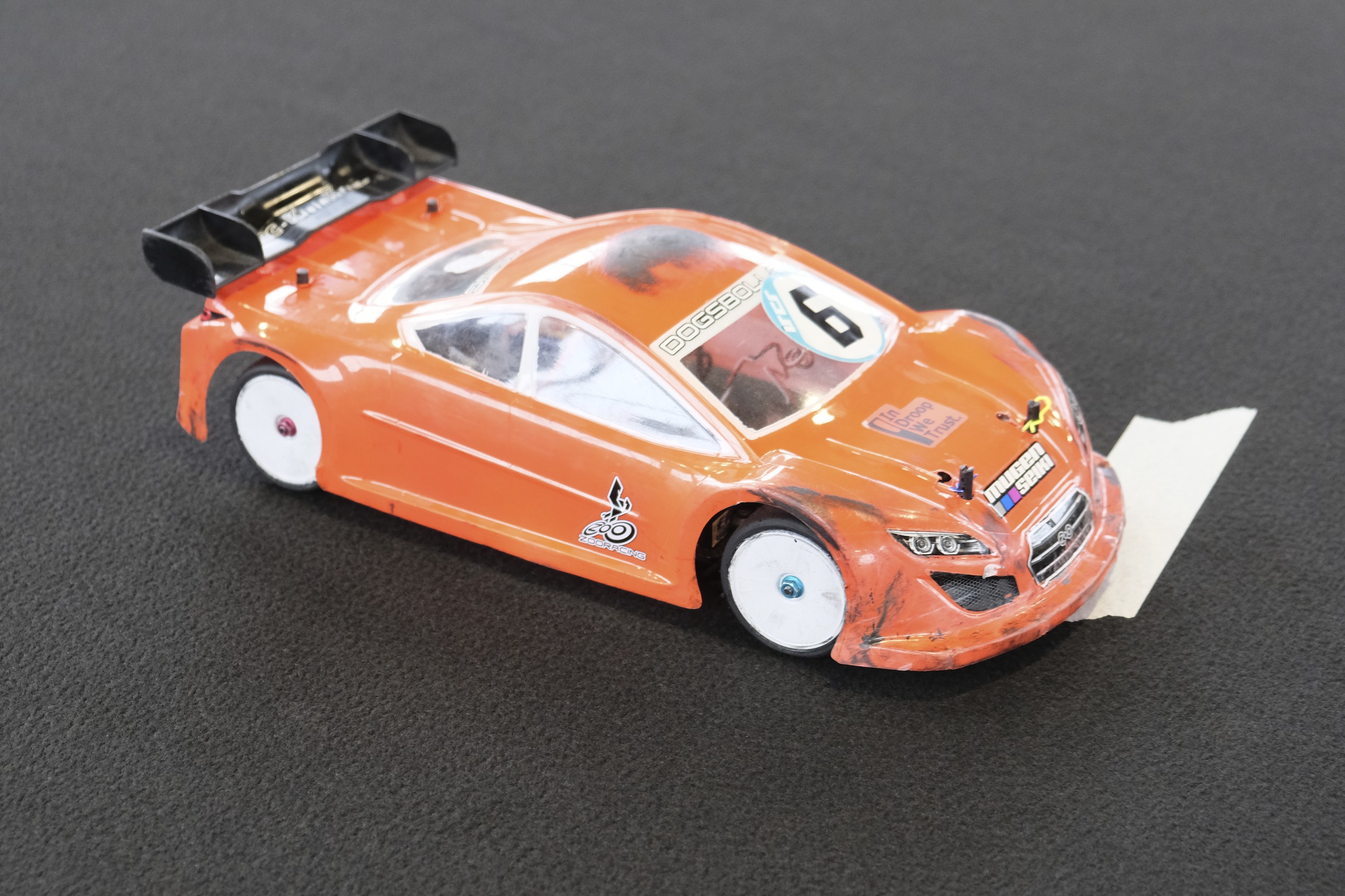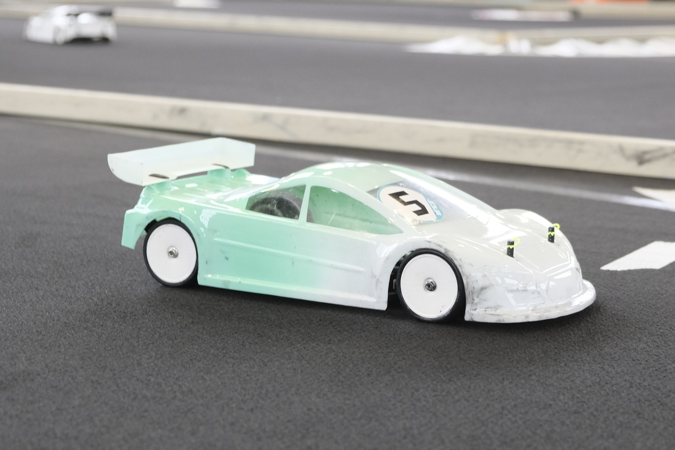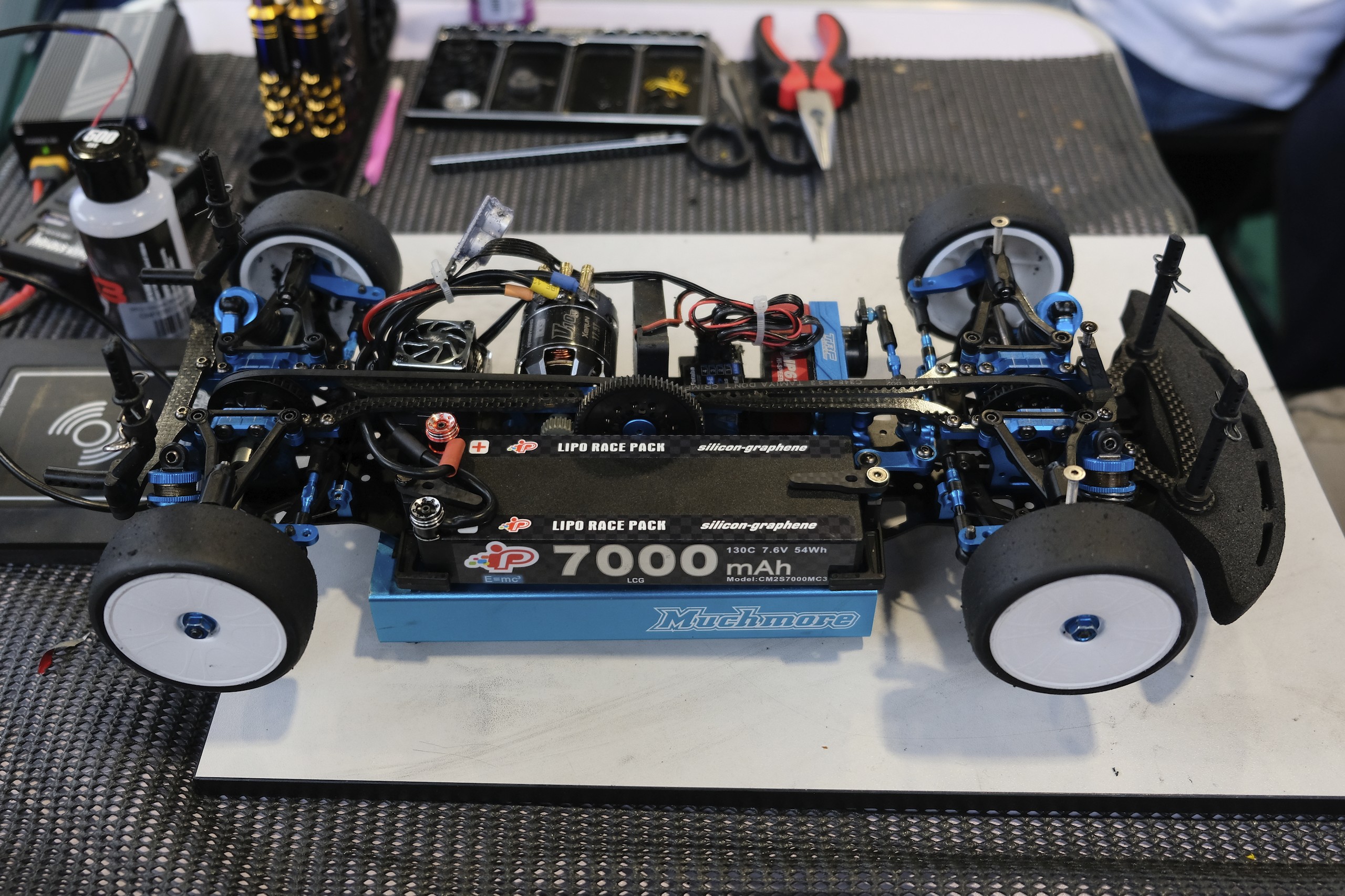 La Schumacher Vibe TC de Grégory Freiburghaus.Deux pilotes, dont Grégory Freiburghaus, roulait avec la nouvelle Touring 1/10° électrique entrée-de-gamme destinée à la compétition de la marque britannique Schumacher Racing Products, la Vibe TC. Cette dernière avait déjà fait l'objet d'une présentation détaillée sur ce même site début octobre. La Schumacher Vibe TC de Grégory Freiburghaus en photos ci-dessous est sensiblement d'origine, hormis l'adoption de barress antiroulis avant et arrière. L'auto en photos ci-dessous est motorisée par un moteur brushless 17.5T Hobbywing Xerun V10 Pro G4 associé à d'un contrôleur Xerun XR10 Pro G2 de la même marque, alimenté par des batteries LiHV LCG de marque IP Intellect et au format "Shorty". La partie radiocommande est confiée à Sanwa et le servo de direction est un "low-profile" de marque HRC Racing référence HRC6820CAR. |
