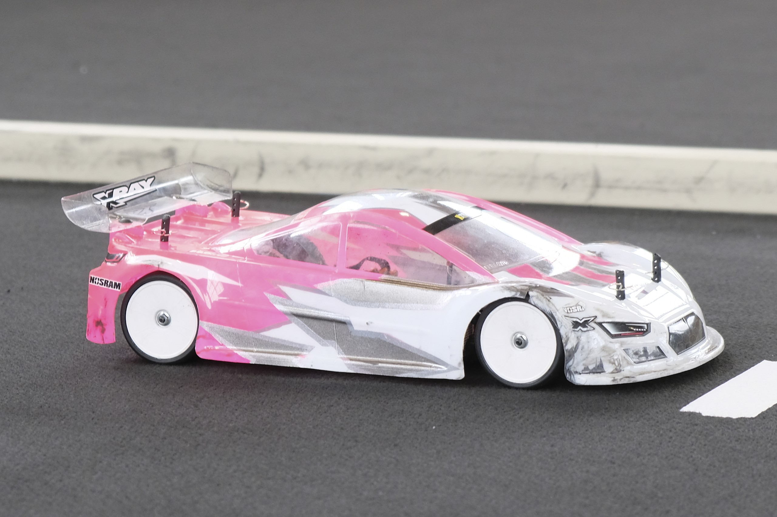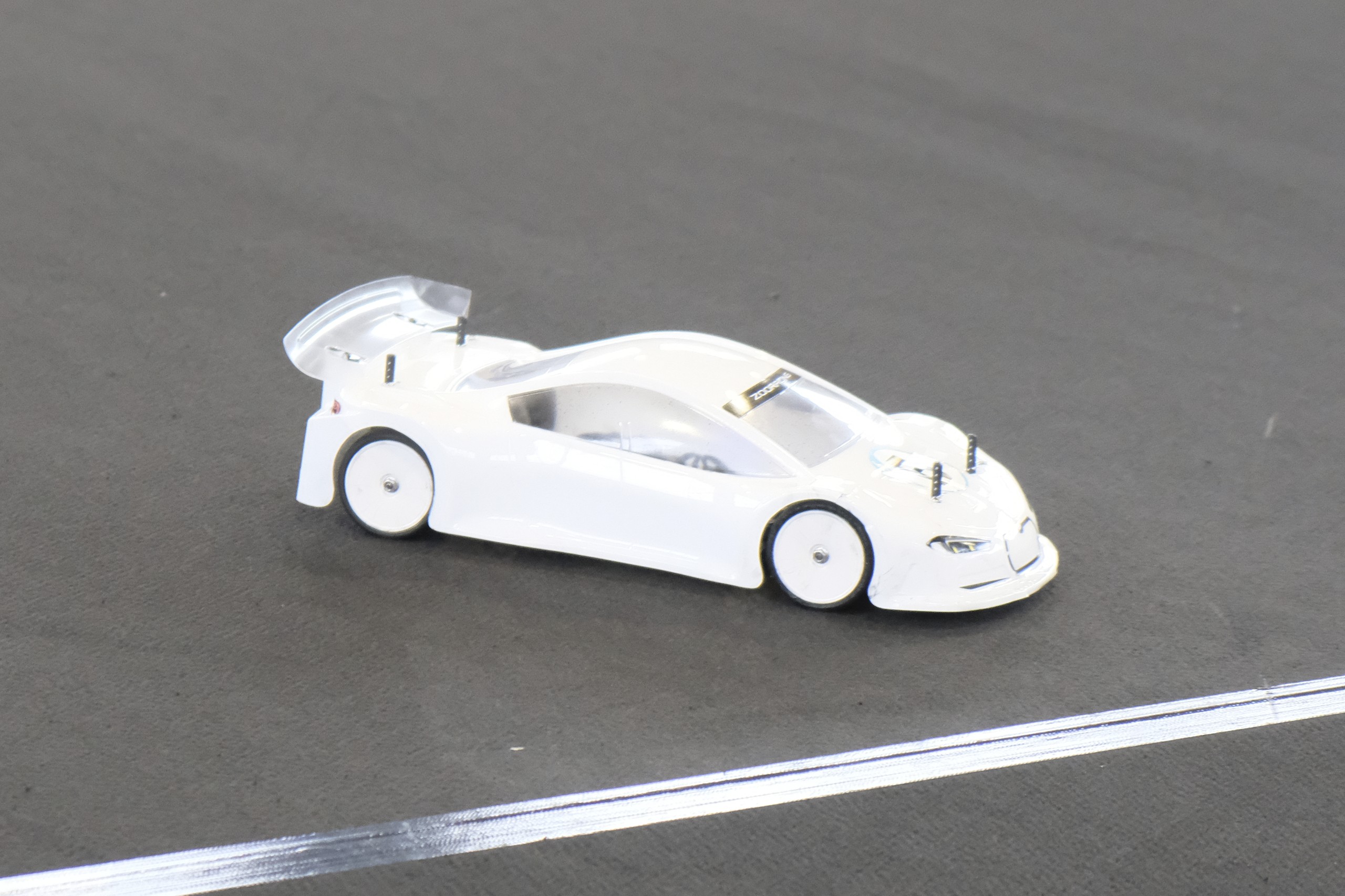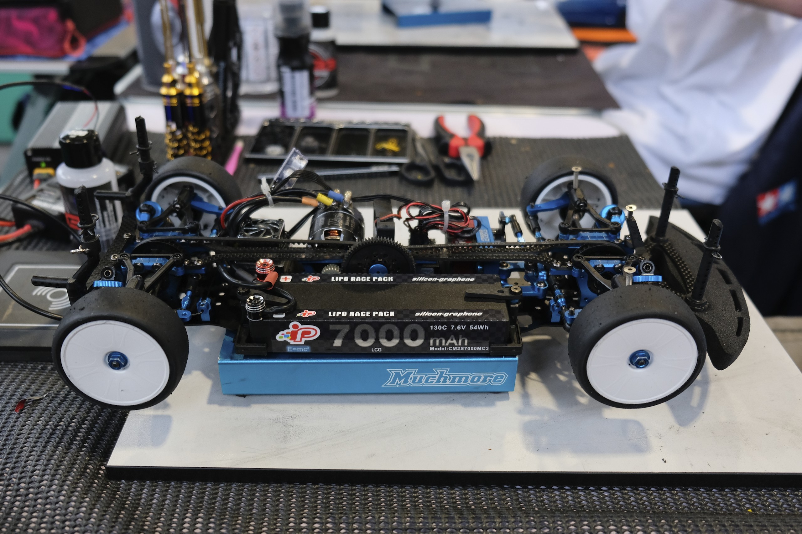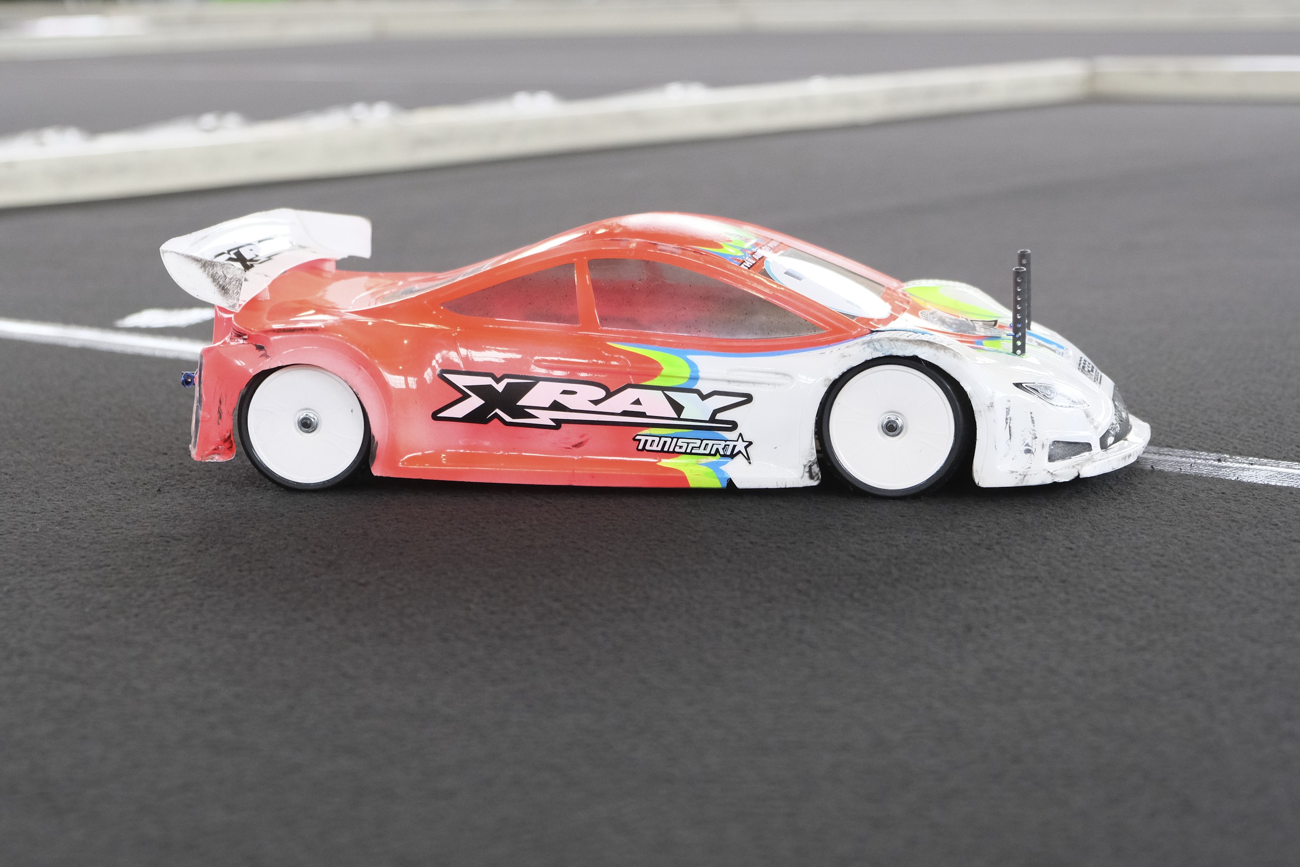 La Schumacher Vibe TC de Grégory Freiburghaus.Deux pilotes, dont Grégory Freiburghaus, roulait avec la nouvelle Touring 1/10° électrique entrée-de-gamme destinée à la compétition de la marque britannique Schumacher Racing Products, la Vibe TC. Cette dernière avait déjà fait l'objet d'une présentation détaillée sur ce même site début octobre. La Schumacher Vibe TC de Grégory Freiburghaus en photos ci-dessous est sensiblement d'origine, hormis l'adoption de barress antiroulis avant et arrière. L'auto en photos ci-dessous est motorisée par un moteur brushless 17.5T Hobbywing Xerun V10 Pro G4 associé à d'un contrôleur Xerun XR10 Pro G2 de la même marque, alimenté par des batteries LiHV LCG de marque IP Intellect et au format "Shorty". La partie radiocommande est confiée à Sanwa et le servo de direction est un "low-profile" de marque HRC Racing référence HRC6820CAR. |