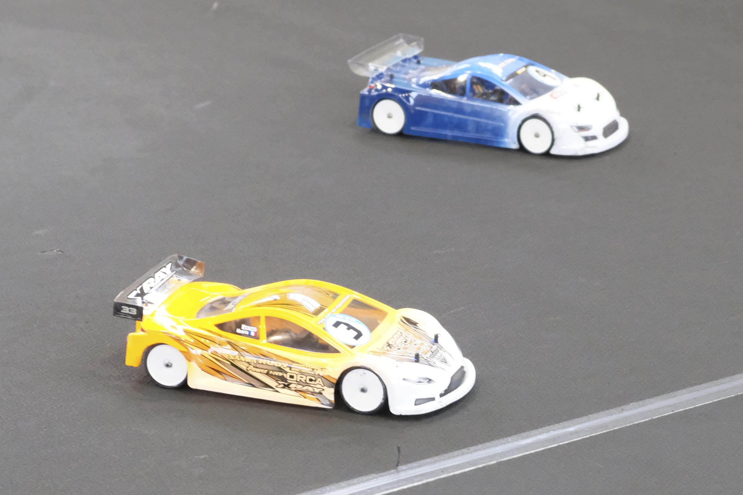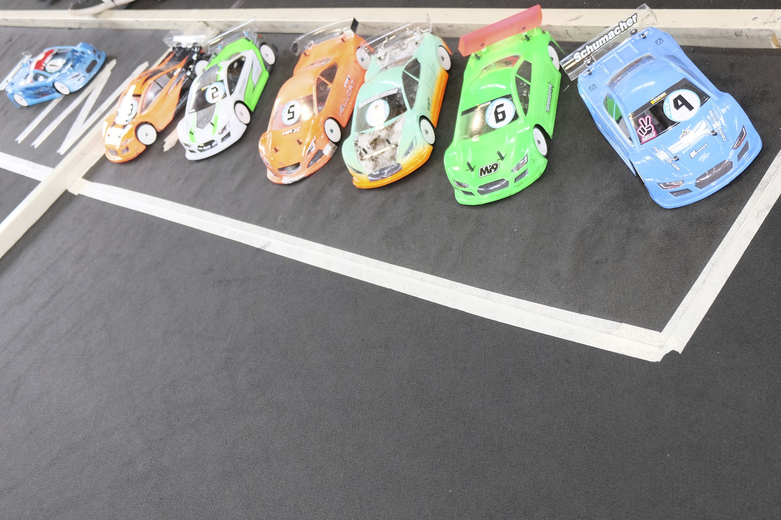 Dans la première manche de finale A, le poleman Benjamin Elbisser s'est imposé en complétant 33 tours en un temps total de 5:07.637, avec un meilleur tour chronométré à 8.997 secondes, et une moyenne au tour de 9.288 secondes. Jean Hannecart suit à la deuxième place avec 31 tours en 5:04.688, marquant un meilleur tour à 9.171 secondes. Le podium est complété par Cédric Ansermoz avec 31 tours en 5:08.322. Jean-Philippe Michel, Sébastien Leuenberger et Alexis Banderier sont également rentrés dans le club des 31 tours. Vincent Cavard a dominé la première manche de la finale B avec 32 tours réalisés en 5:09.895, affichant un meilleur tour en 9.369 secondes et une moyenne au tour de 9.649 secondes. Il a devancé Cristobal Santos, auteur de 31 tours en 5:09.314, et Jean-Baptiste Janssens, également avec 31 tours en 5:09.649. Paul Franceschi et Sébastien Dreyer seront tous les deux contraints à l'abandon à mi-course suite à de grosses casses. En finale C, Eric Heubi a pris la tête lors de la première manche en réalisant 30 tours en 5:03.140, avec un meilleur tour chronométré à 9.714 secondes et une moyenne au tour de 10.046 secondes. Maxime Weeburg suit de près avec également 30 tours en 5:04.584. Kenzo Hurth a complété le podium avec 30 tours, en 5:09.226. Dominique Hurth s'est imposé dans la première manche de la finale D avec 28 tours en 5:09.759, enregistrant un meilleur tour à 10.377 secondes et une moyenne au tour de 10.991 secondes. Eloan Baudet et Mathys Gropetti ont terminés respectivement deuxième et troisième, tous deux avec 26 tours. Six pilotes se sont affrontés en finale E. Pascal Carlucci remporte la première manche avec 26 tours en 5:03.000, signant un meilleur tour chronométré à 10.885 secondes et une moyenne au tour de 11.606 secondes. Cédric Courant suit de près avec également 26 tours en 5:04.112, avec un meilleur tour en 10.570 secondes. Grégory Freiburghaus a complété le podium avec un temps total de 5:07.252 pour les mêmes 26 tours. Marc Wirtz a terminé quatrième, devant Steve Joye et Rodolphe Lyonnet avec chacun 24 tours. Trois pilotes ont concouru en finale F. |