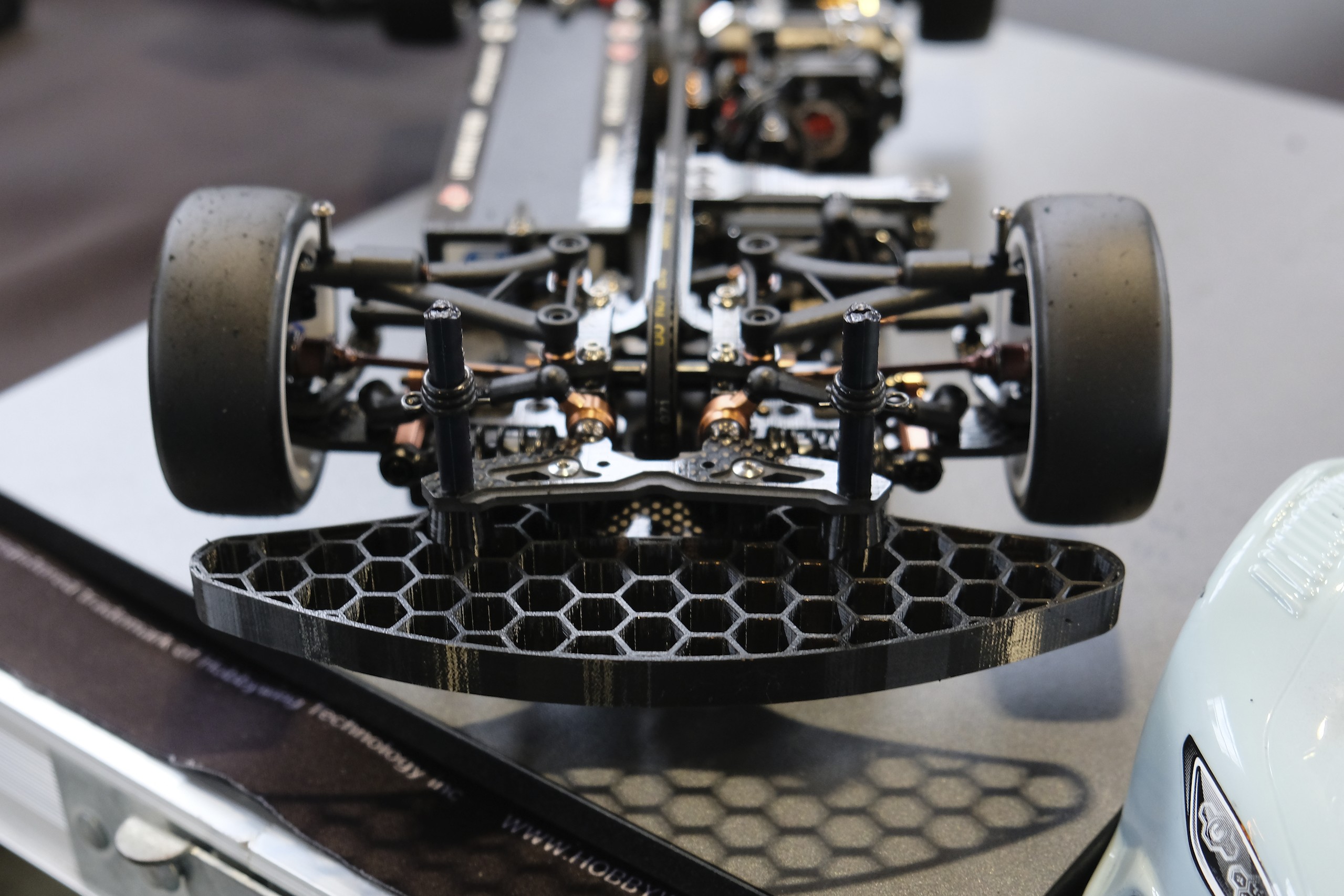 Technique carrosseries.Vu sur la Awesomatix A800RR de Luca Martinelli présentée précédemment, ce support central arrière de carrosserie issu de l'impression 3D de marque Axxelerate RC était en test ici, et devrait être prochainement commercialisé par le magasin suisse RCXX.ch. Le concept est vraiment intéressant pour créer un point supplémentaire pour éviter que la carrosserie ne se déforme sous charge, il est juste un peu dommage (comme souvent avec les supports centraux avant, quelque soit la marque) que sa fixation se fasse par une des vis de fixation d'un support de biellettes en pinçant du plastique. |