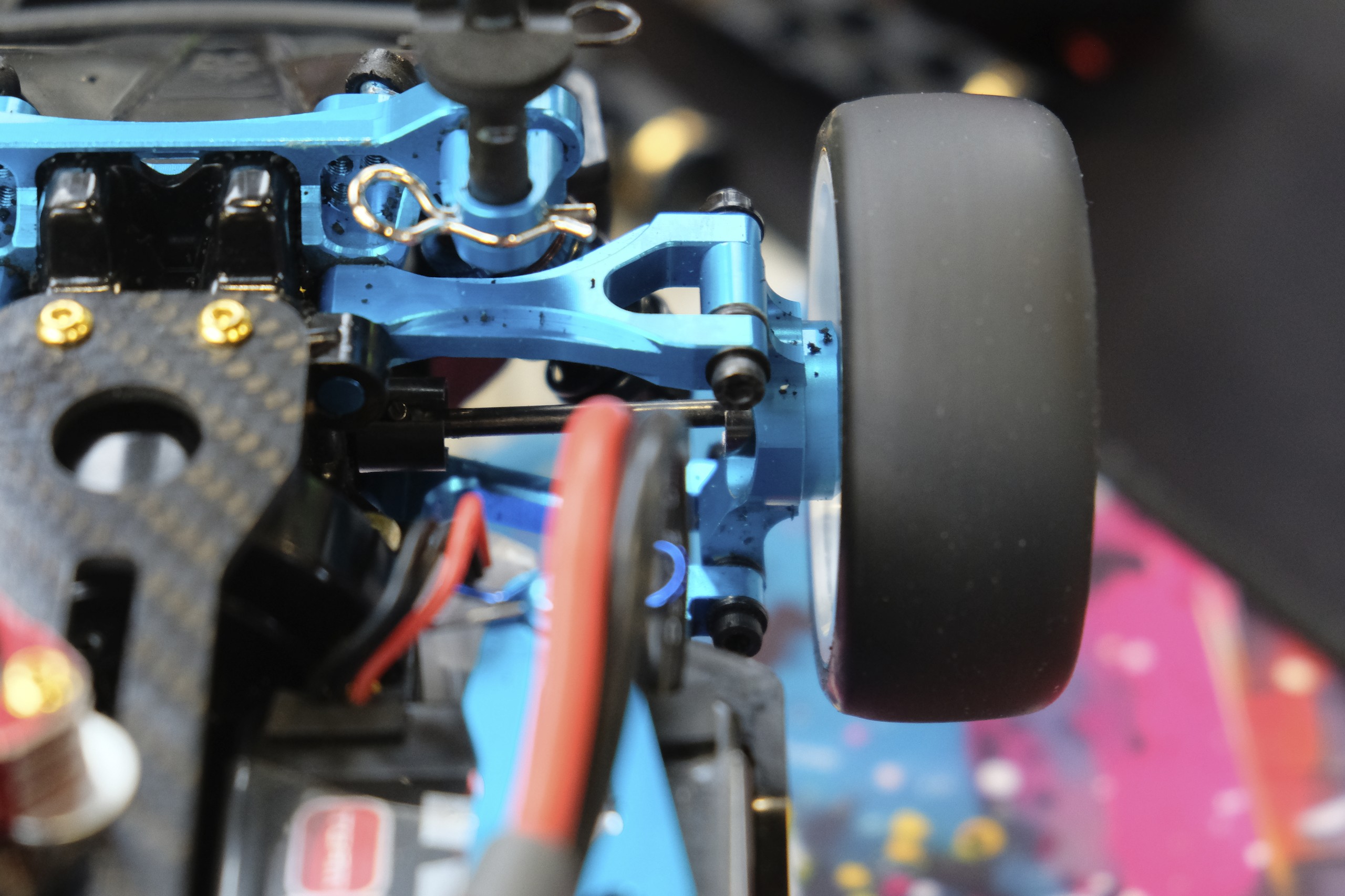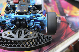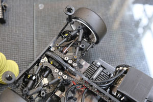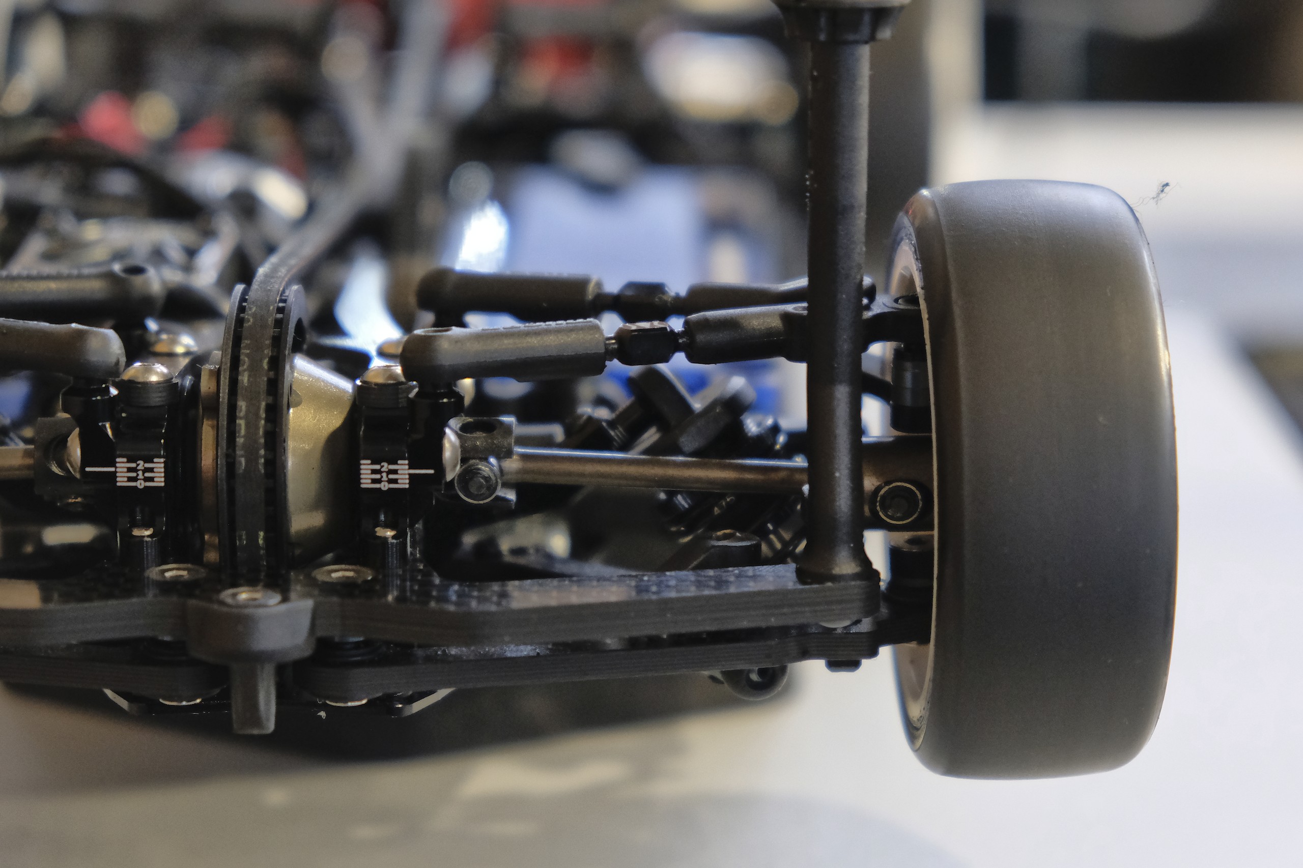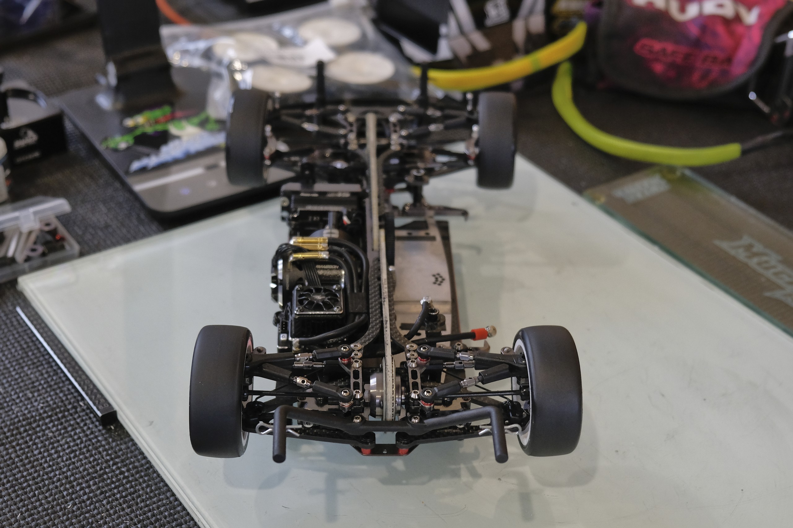 La Schumacher Mi9 de Ben Jebira.Ben Jebira a survolé les qualifications et les finales au volant de sa Schumacher Mi9 équipé d'un châssis en acier d'origine WeiRC. Ce dernier a une épaisseur de 1,2 mm d'épaisseur pour un poids annoncé de 160g et nécessite des vis spécifiques pour son montage en raison de cette faible épaisseur. |