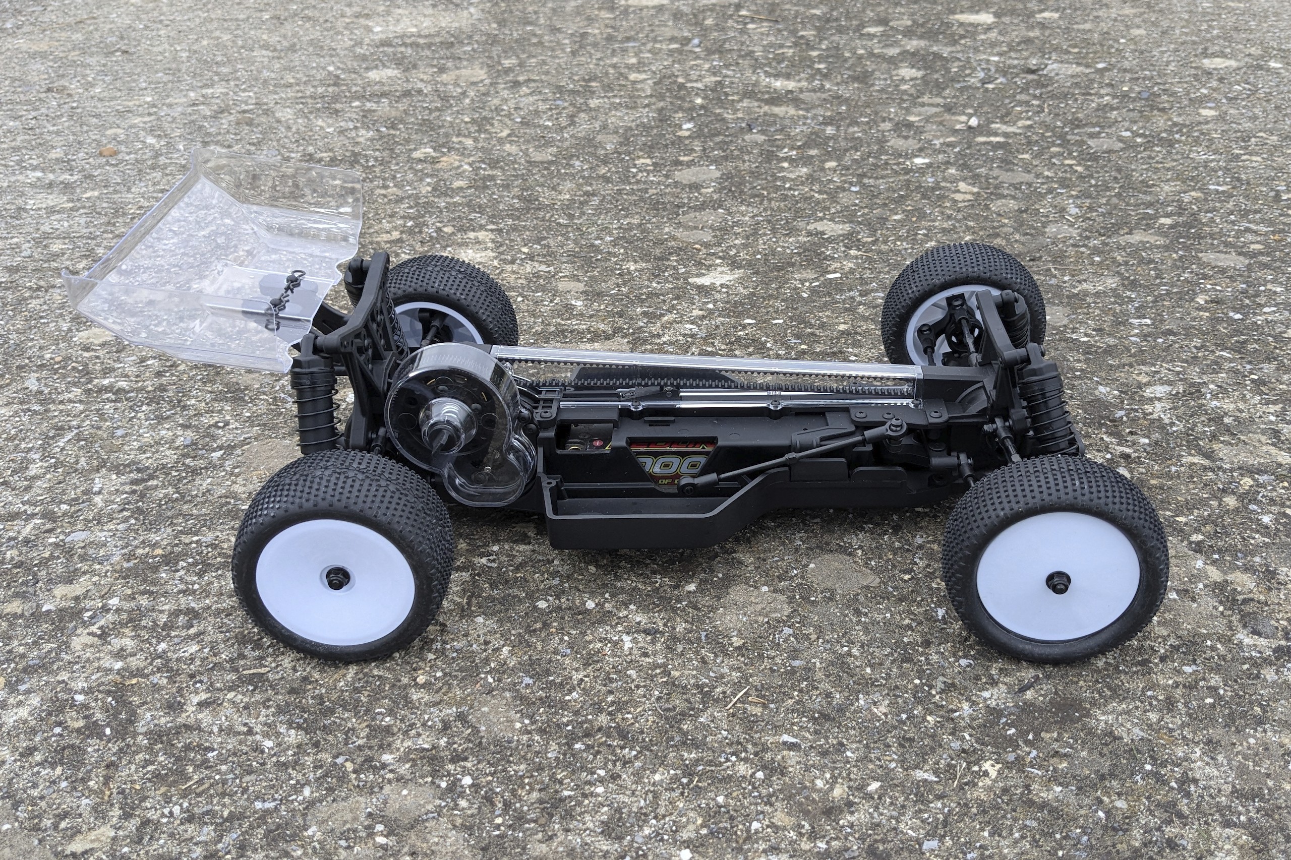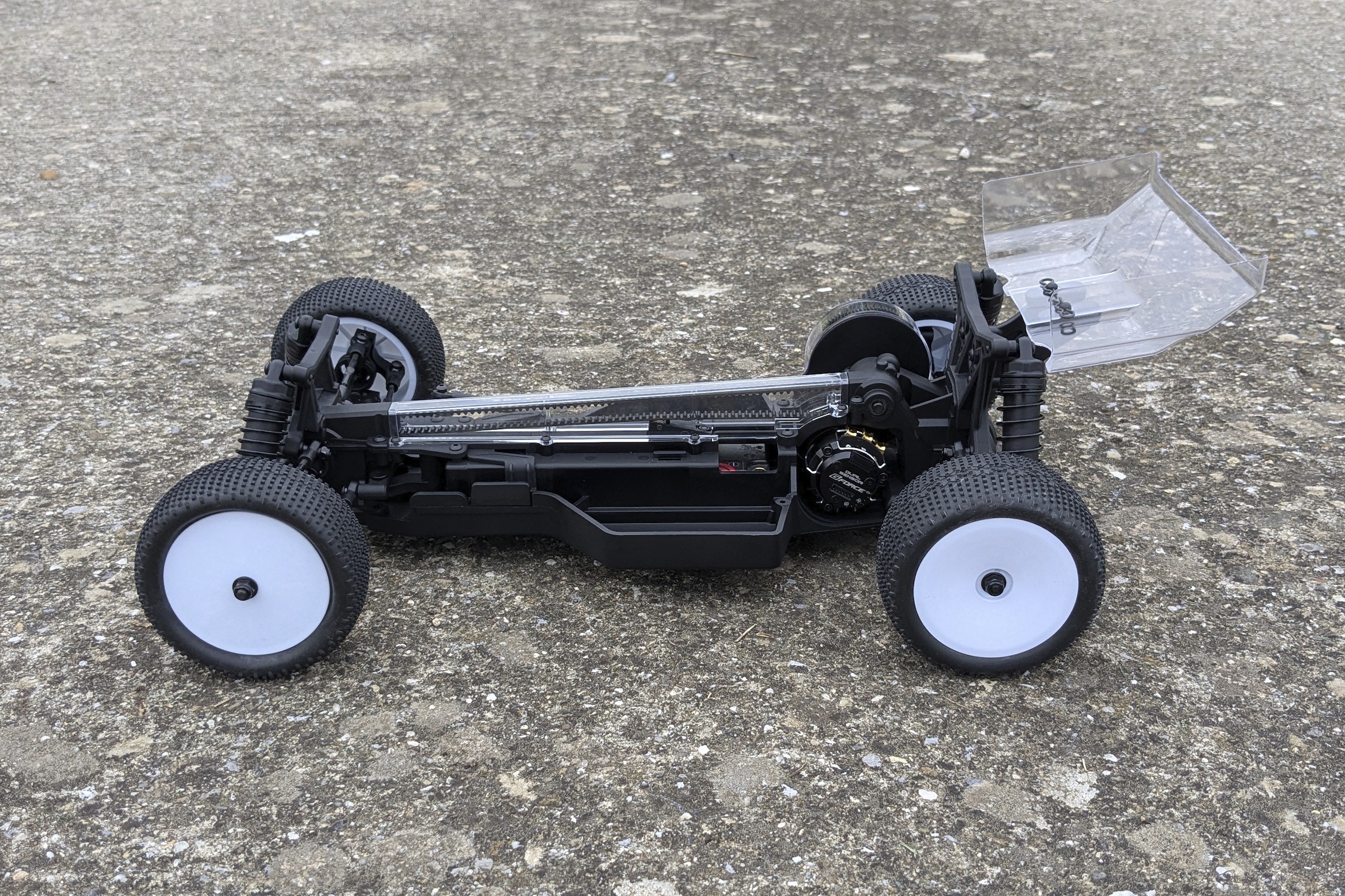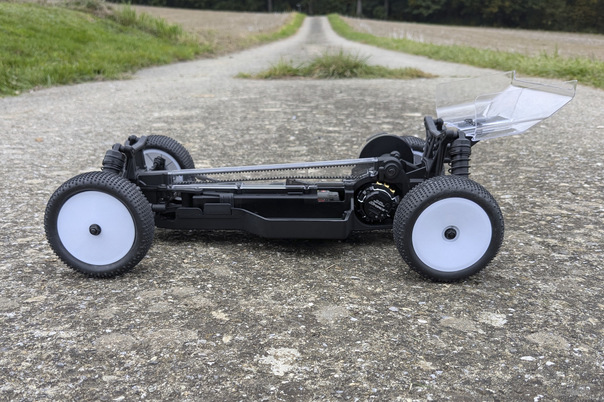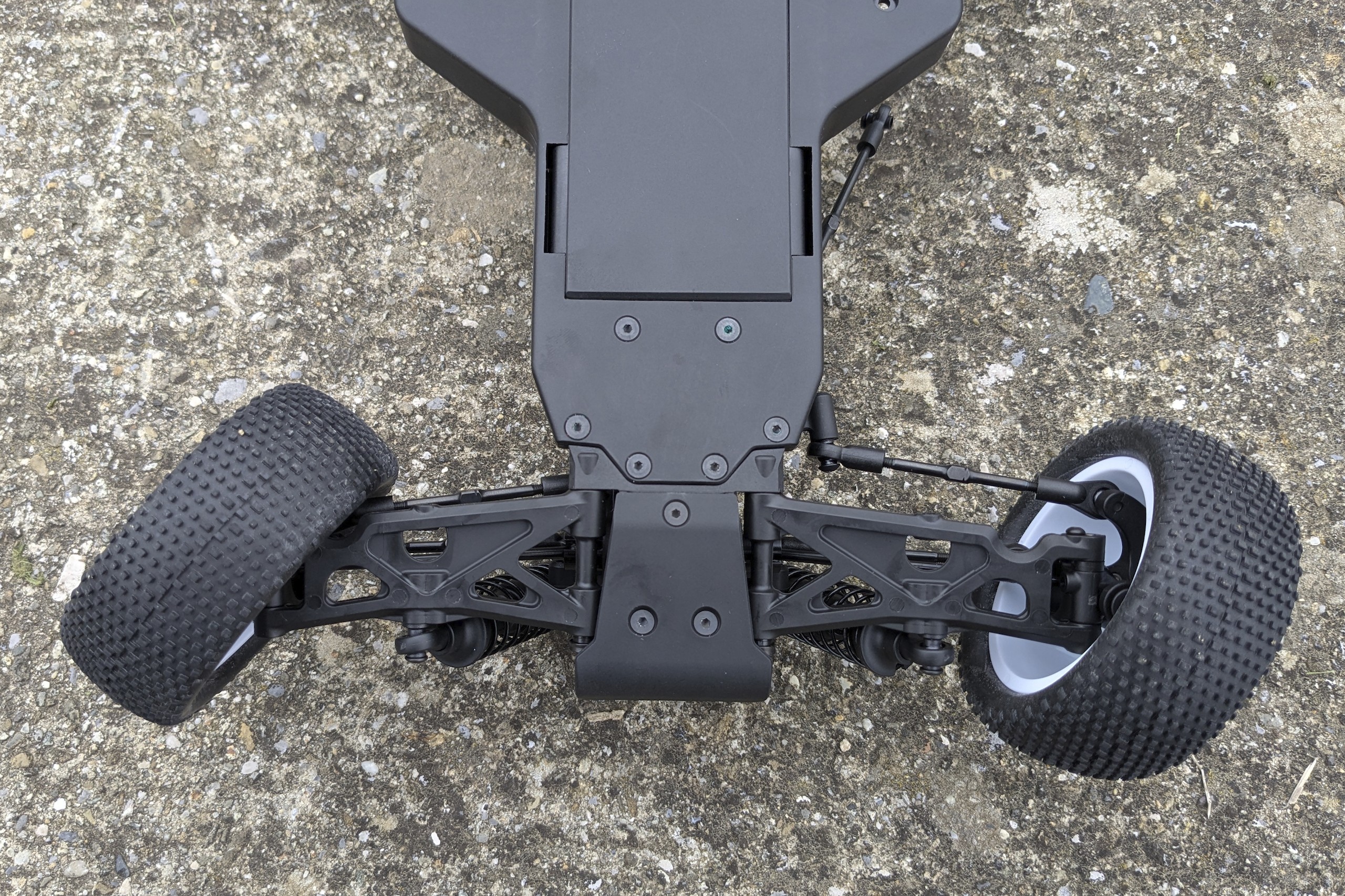 Les suspensions avant et arrière sont relativement classique avec de longs triangles inférieurs surmontés de biellettes à pas inversés (déjà prémontés à la bonne longueur!) associés à des amortisseurs hydrauliques de gros volume à émulsion (c'est-à-dire sans coupelle de volume constant) à corps en plastique. Le châssis est basé sur une grande pièce injectée en plastique permettant de loger la batterie en position longitudinale. La batterie s'insère par le dessous de l'auto grâce à un couvercle amovible pivotable et qui se vérrouille par deux clips et qui est de plus sécurisée par un loquet glissant. La transmission est à deux courroies, placées relativement au centre de l'auto, et à moteur en position centrale arrière, ce qui fait que, en raison du logement longitudinal de ladite batterie, que la couronne est placée relativement en hauteur, comme dans les années 90 justement, et que les courroies avant et arrière voient chacune leur chemin guidé sur leur brin inférieur par une poulie pour contourner ledit logement. Les jantes et les pneus sont de monte traditionnelle 2.2 pouces compatible avec la plupart des propositions du marché. L'auto comporte beaucoup de pièces en plastique, mais la plaque du support moteur est en alliage d'aluminium. L'ensemble respire la qualité, plus particulièrement au niveau de l'injection des pièces plastiques et de l'ajustement entre celles-ci, et démontre un grand soin dans la conception. Ici le focus a été fait sur la simplicité, la facilité d'entretien et d'utilisation et une certaine robustesse. Cela s'est fait au détriment du poids de l'auto qui semble assez lourde en comparaison d'autres autos du marché et d'une transmission relativement bruyante en raison de son carénage. Au final, cette proposition de G-Force est intrigante et séduisante. Elle ne s'adresse pas vraiment au marché généraliste du loisir, ni au marché de la haute compétition, mais par exemple à des débutants exigeants, à d'anciens pilotes qui ont eu déjà un Auto8 ou un AutoRCM dans les mains et qui veulent reprendre gentiment, à des "casual drivers" qui veulent participer à des compétitions locales à leur rythme avec un engin original, à des adeptes de Vintage qui veulent rouler "Old-School" en prenant plus de risques qu'avec une ancienne auto. Bref, le Xtrada n'est pas vraiment un produit mainstream, mais pourrait répondre à bon nombre de besoin de niches. Pas encore de retour du comportement sur la piste de ce G-Force XStrada, mais les bons ingrédients semblent déjà être réunis pour un résultat sympathique. |