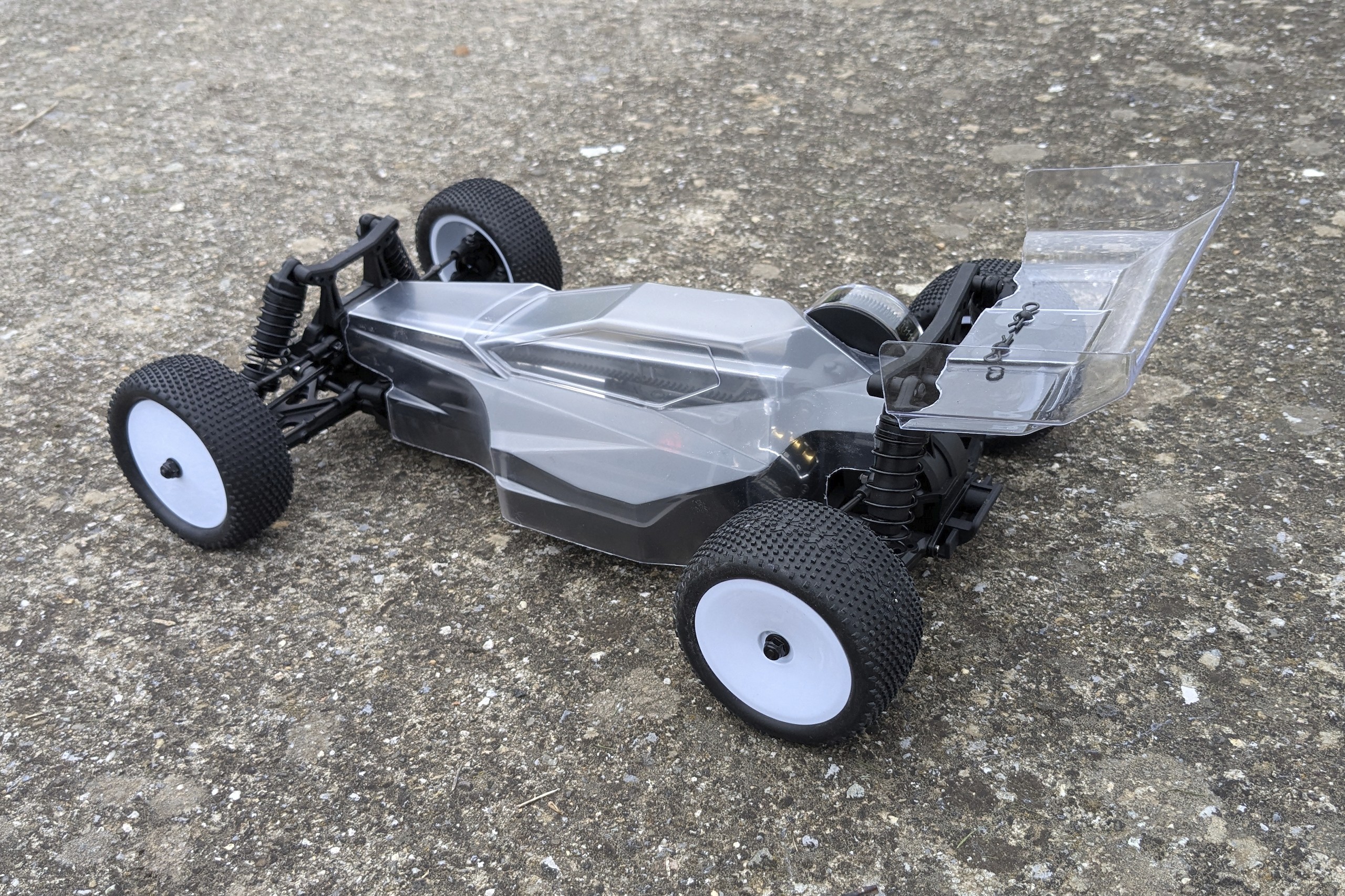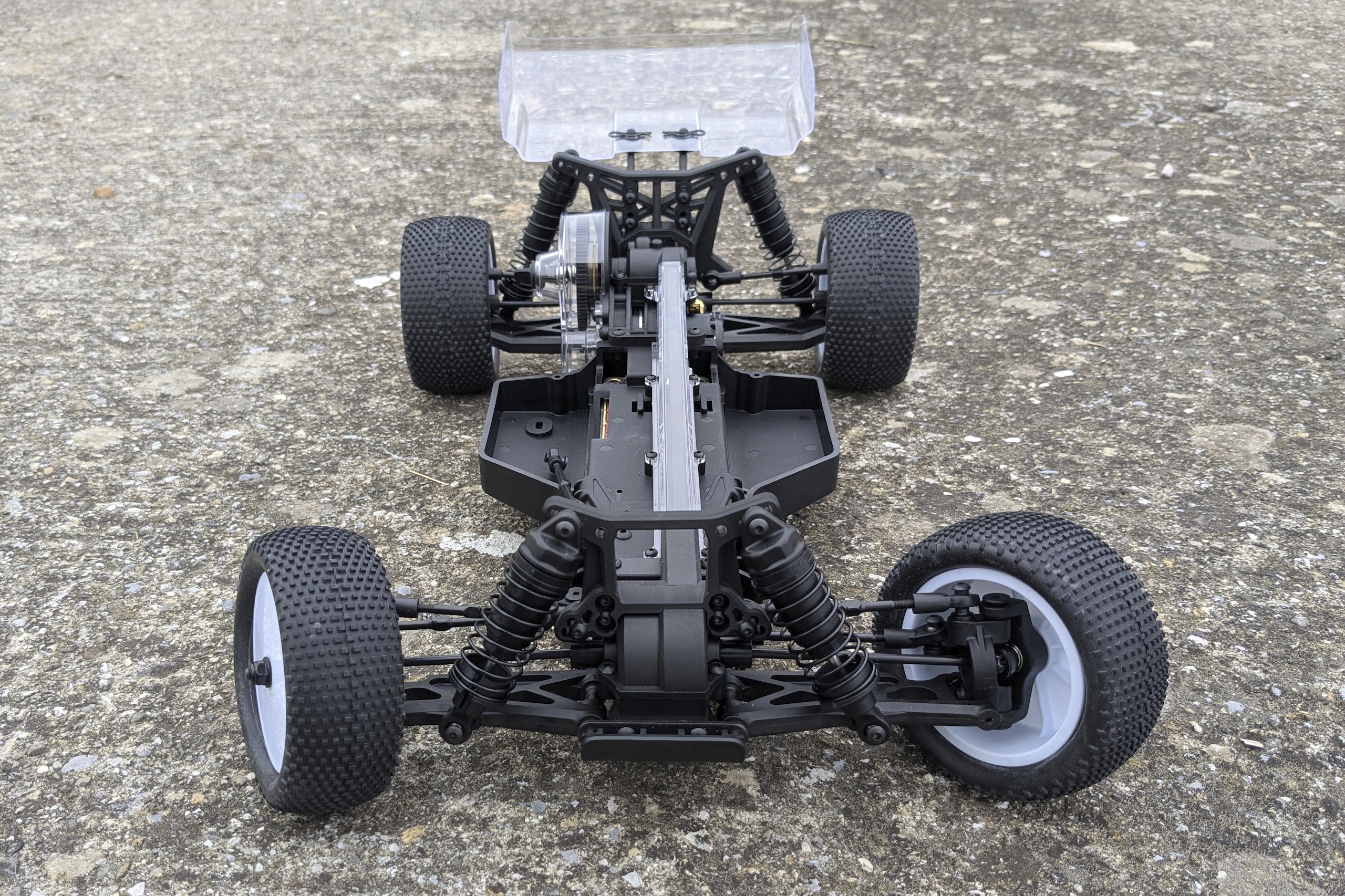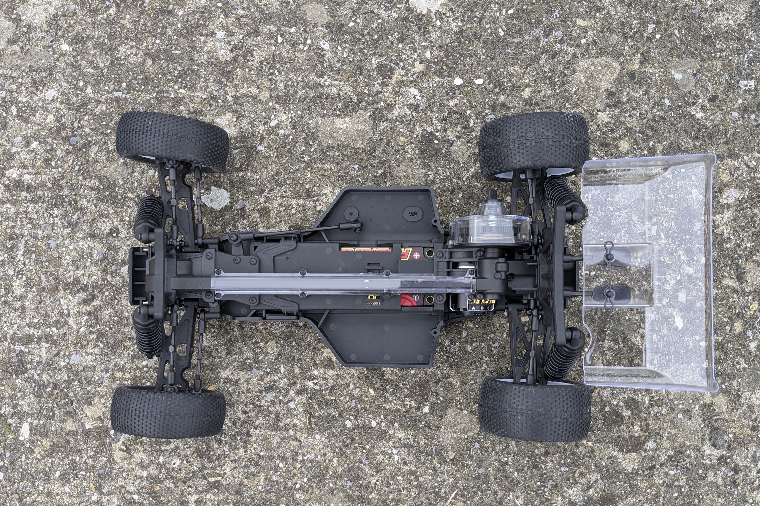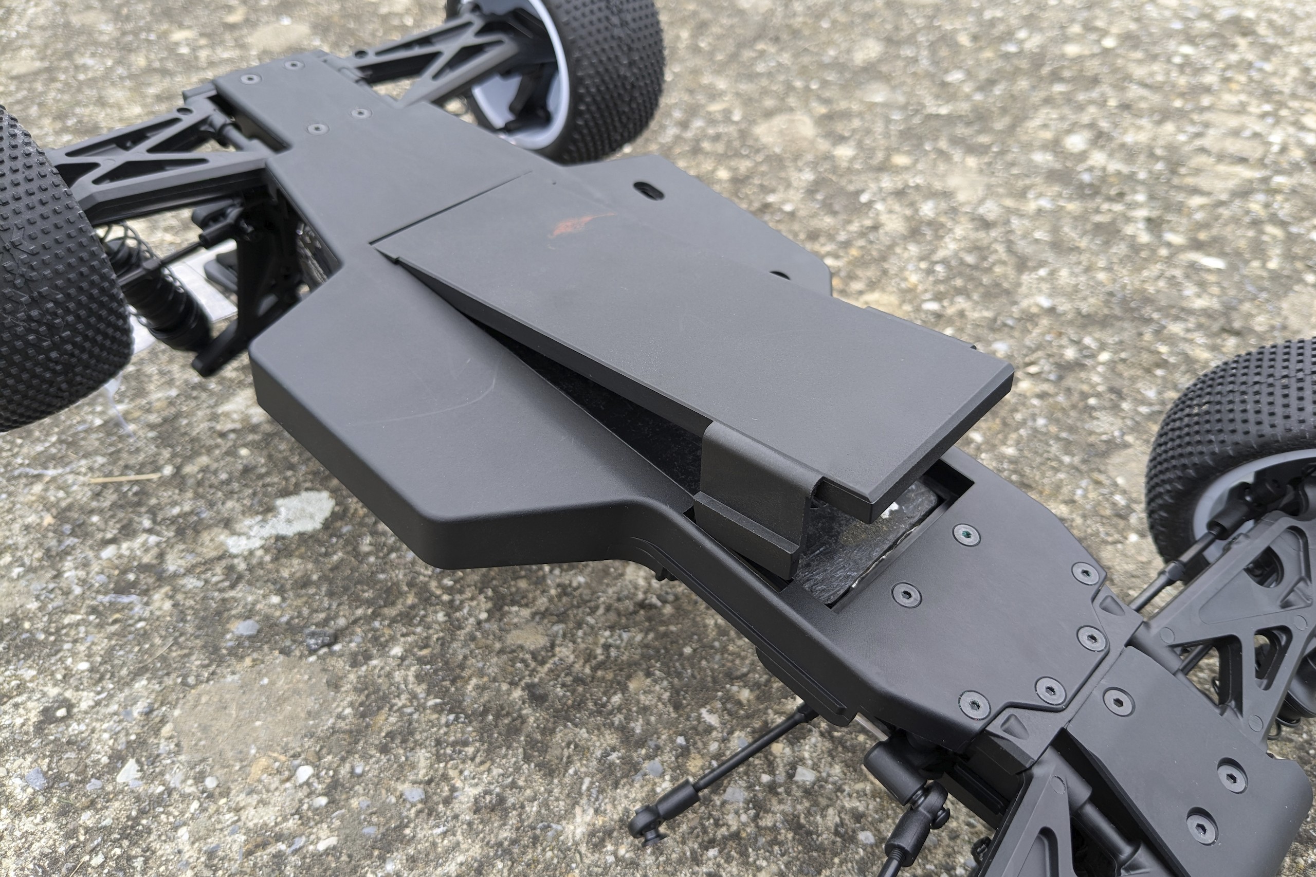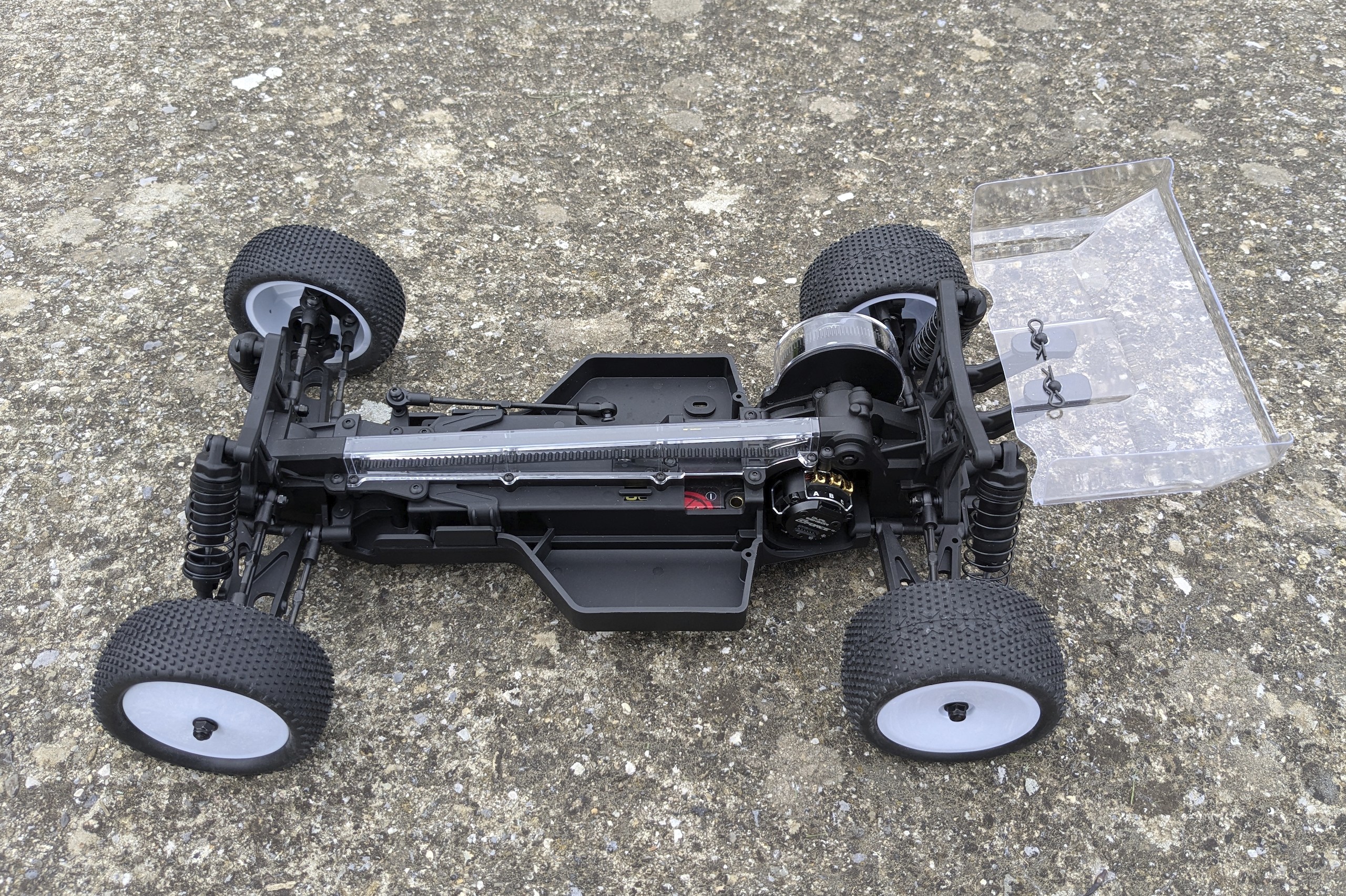 Les suspensions avant et arrière sont relativement classique avec de longs triangles inférieurs surmontés de biellettes à pas inversés (déjà prémontés à la bonne longueur!) associés à des amortisseurs hydrauliques de gros volume à émulsion (c'est-à-dire sans coupelle de volume constant) à corps en plastique. Le châssis est basé sur une grande pièce injectée en plastique permettant de loger la batterie en position longitudinale. La batterie s'insère par le dessous de l'auto grâce à un couvercle amovible pivotable et qui se vérrouille par deux clips et qui est de plus sécurisée par un loquet glissant. La transmission est à deux courroies, placées relativement au centre de l'auto, et à moteur en position centrale arrière, ce qui fait que, en raison du logement longitudinal de ladite batterie, que la couronne est placée relativement en hauteur, comme dans les années 90 justement, et que les courroies avant et arrière voient chacune leur chemin guidé sur leur brin inférieur par une poulie pour contourner ledit logement. Les jantes et les pneus sont de monte traditionnelle 2.2 pouces compatible avec la plupart des propositions du marché. L'auto comporte beaucoup de pièces en plastique, mais la plaque du support moteur est en alliage d'aluminium. L'ensemble respire la qualité, plus particulièrement au niveau de l'injection des pièces plastiques et de l'ajustement entre celles-ci, et démontre un grand soin dans la conception. Ici le focus a été fait sur la simplicité, la facilité d'entretien et d'utilisation et une certaine robustesse. Cela s'est fait au détriment du poids de l'auto qui semble assez lourde en comparaison d'autres autos du marché et d'une transmission relativement bruyante en raison de son carénage. Au final, cette proposition de G-Force est intrigante et séduisante. Elle ne s'adresse pas vraiment au marché généraliste du loisir, ni au marché de la haute compétition, mais par exemple à des débutants exigeants, à d'anciens pilotes qui ont eu déjà un Auto8 ou un AutoRCM dans les mains et qui veulent reprendre gentiment, à des "casual drivers" qui veulent participer à des compétitions locales à leur rythme avec un engin original, à des adeptes de Vintage qui veulent rouler "Old-School" en prenant plus de risques qu'avec une ancienne auto. Bref, le Xtrada n'est pas vraiment un produit mainstream, mais pourrait répondre à bon nombre de besoin de niches. Pas encore de retour du comportement sur la piste de ce G-Force XStrada, mais les bons ingrédients semblent déjà être réunis pour un résultat sympathique. |