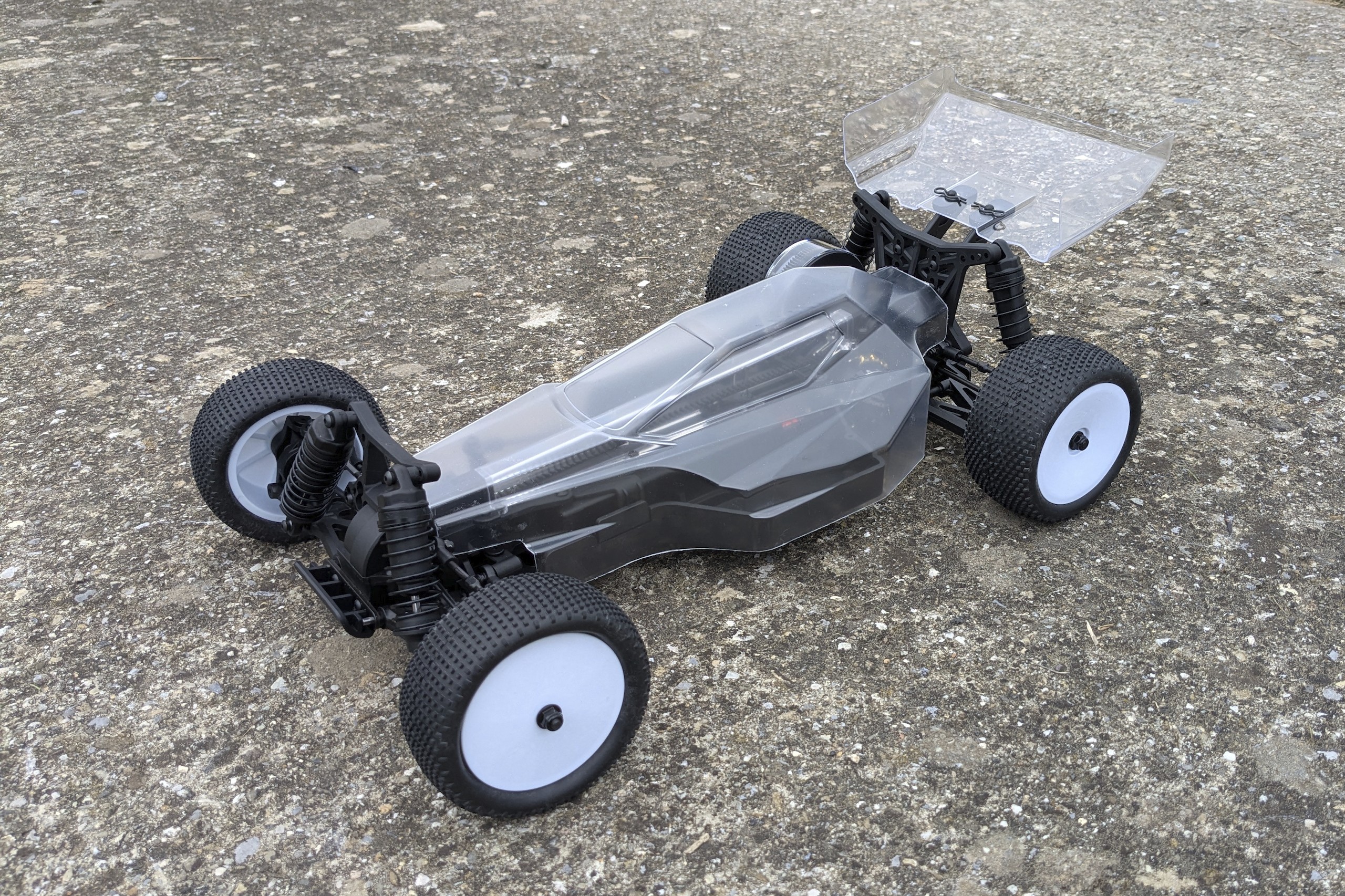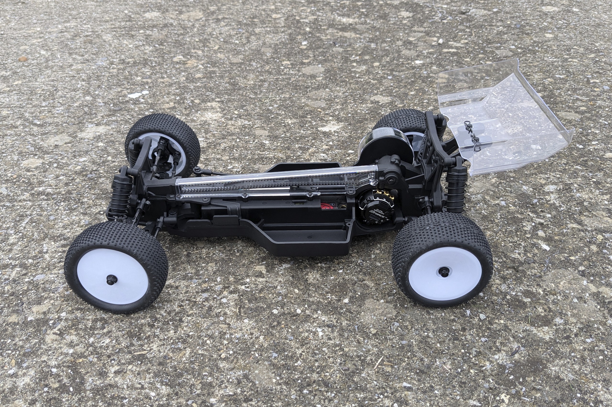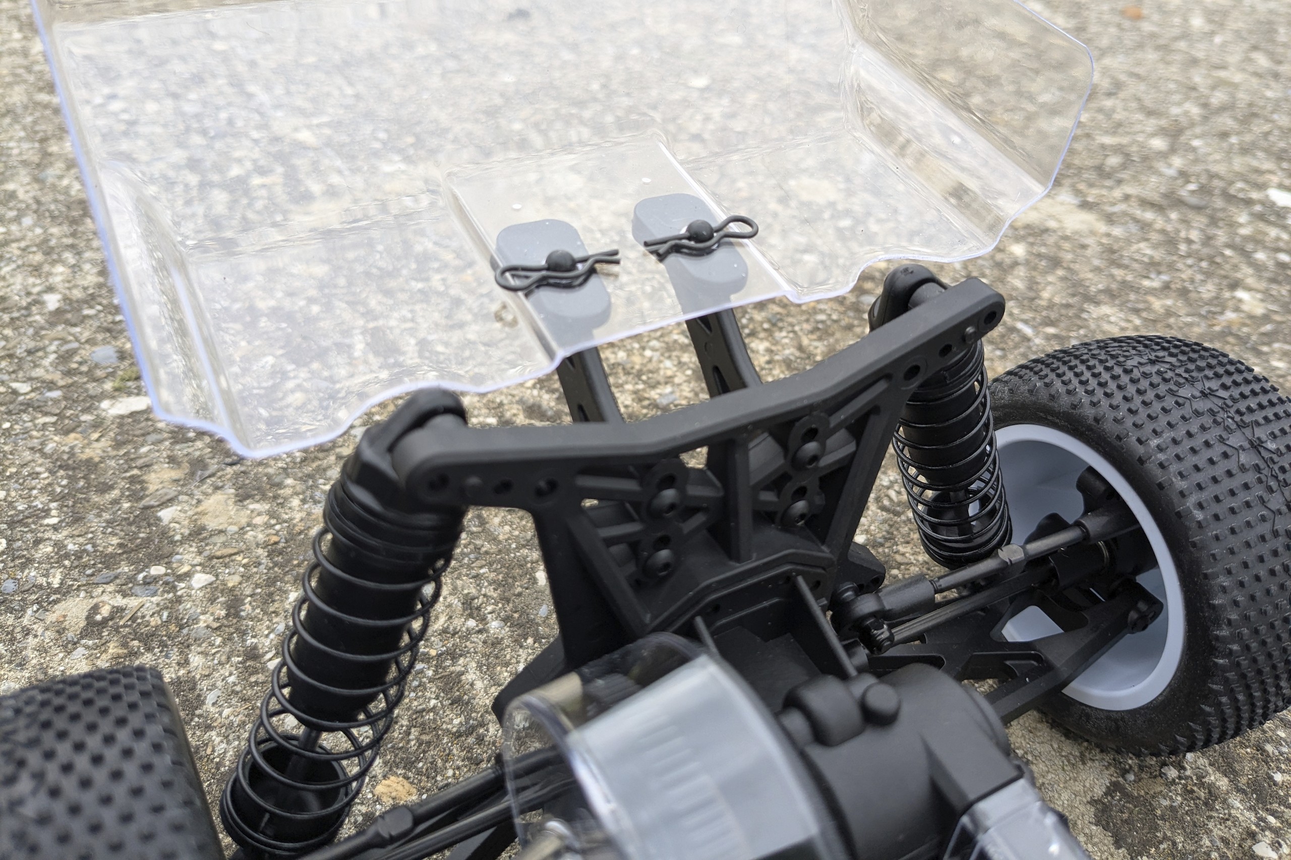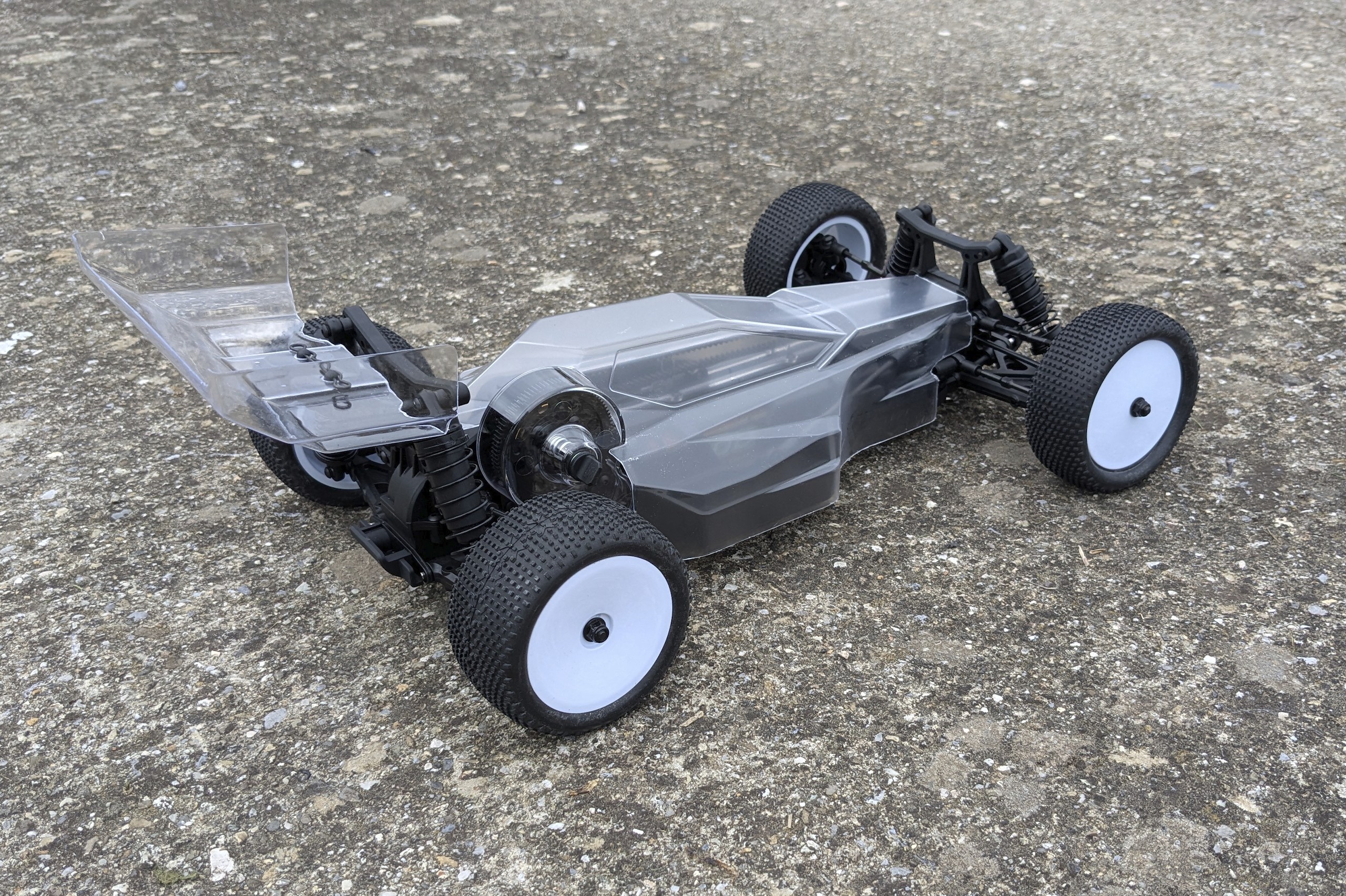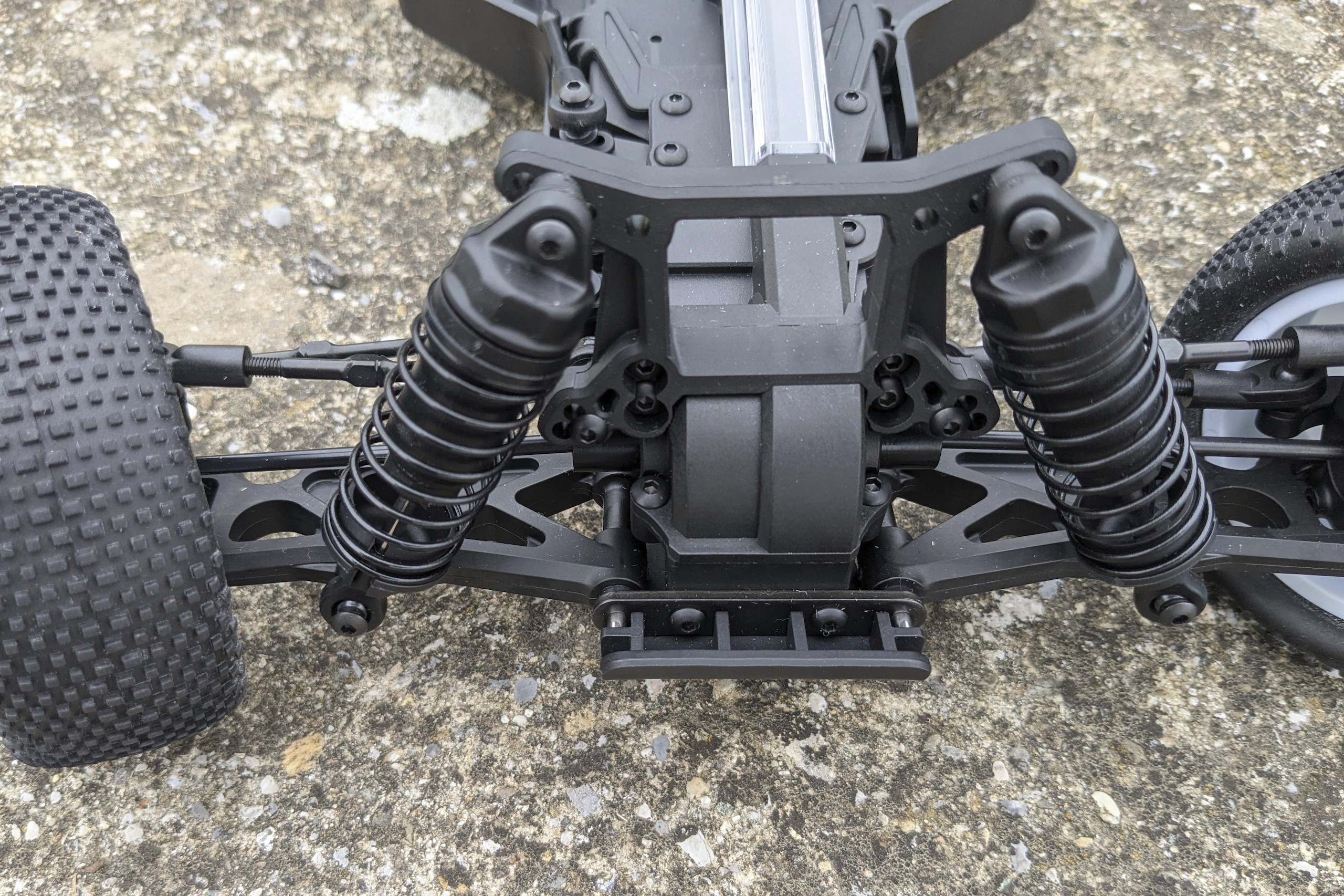 Les suspensions avant et arrière sont relativement classique avec de longs triangles inférieurs surmontés de biellettes à pas inversés (déjà prémontés à la bonne longueur!) associés à des amortisseurs hydrauliques de gros volume à émulsion (c'est-à-dire sans coupelle de volume constant) à corps en plastique. Le châssis est basé sur une grande pièce injectée en plastique permettant de loger la batterie en position longitudinale. La batterie s'insère par le dessous de l'auto grâce à un couvercle amovible pivotable et qui se vérrouille par deux clips et qui est de plus sécurisée par un loquet glissant. La transmission est à deux courroies, placées relativement au centre de l'auto, et à moteur en position centrale arrière, ce qui fait que, en raison du logement longitudinal de ladite batterie, que la couronne est placée relativement en hauteur, comme dans les années 90 justement, et que les courroies avant et arrière voient chacune leur chemin guidé sur leur brin inférieur par une poulie pour contourner ledit logement. Les jantes et les pneus sont de monte traditionnelle 2.2 pouces compatible avec la plupart des propositions du marché. L'auto comporte beaucoup de pièces en plastique, mais la plaque du support moteur est en alliage d'aluminium. L'ensemble respire la qualité, plus particulièrement au niveau de l'injection des pièces plastiques et de l'ajustement entre celles-ci, et démontre un grand soin dans la conception. Ici le focus a été fait sur la simplicité, la facilité d'entretien et d'utilisation et une certaine robustesse. Cela s'est fait au détriment du poids de l'auto qui semble assez lourde en comparaison d'autres autos du marché et d'une transmission relativement bruyante en raison de son carénage. Au final, cette proposition de G-Force est intrigante et séduisante. Elle ne s'adresse pas vraiment au marché généraliste du loisir, ni au marché de la haute compétition, mais par exemple à des débutants exigeants, à d'anciens pilotes qui ont eu déjà un Auto8 ou un AutoRCM dans les mains et qui veulent reprendre gentiment, à des "casual drivers" qui veulent participer à des compétitions locales à leur rythme avec un engin original, à des adeptes de Vintage qui veulent rouler "Old-School" en prenant plus de risques qu'avec une ancienne auto. Bref, le Xtrada n'est pas vraiment un produit mainstream, mais pourrait répondre à bon nombre de besoin de niches. Pas encore de retour du comportement sur la piste de ce G-Force XStrada, mais les bons ingrédients semblent déjà être réunis pour un résultat sympathique. |