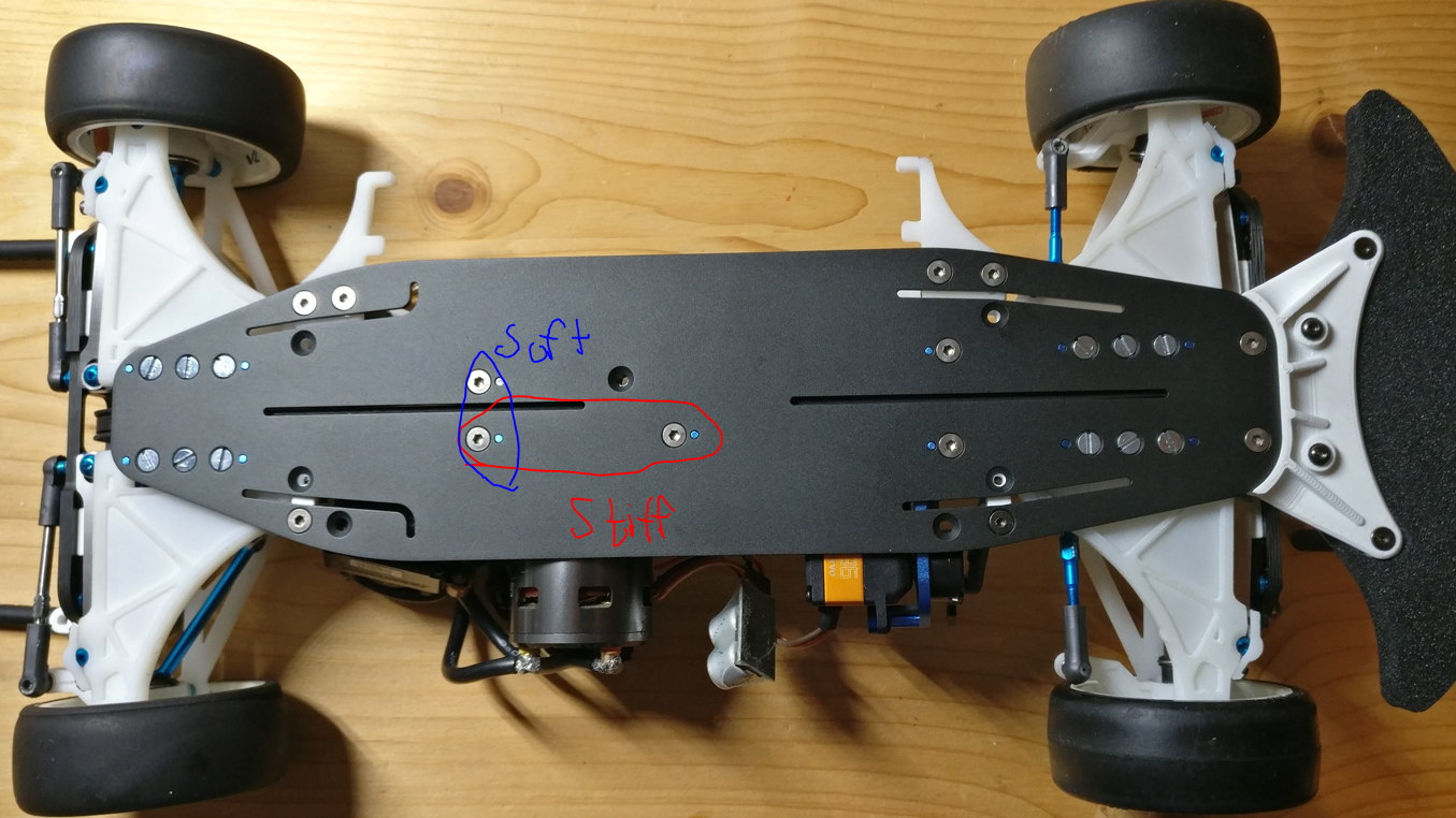 P3: Chassis-Flex ist ein grosser Setup-Parameter, wird aber nicht wirklich quantifiziert.Vor dem Start des eigenen Chassis-Designs wurde mit einer Vorrichtung die Torsionssteifigkeit verschiedener Modelle ausgemessen: von Schumacher Mi5 weich bis TRF416X hart. |