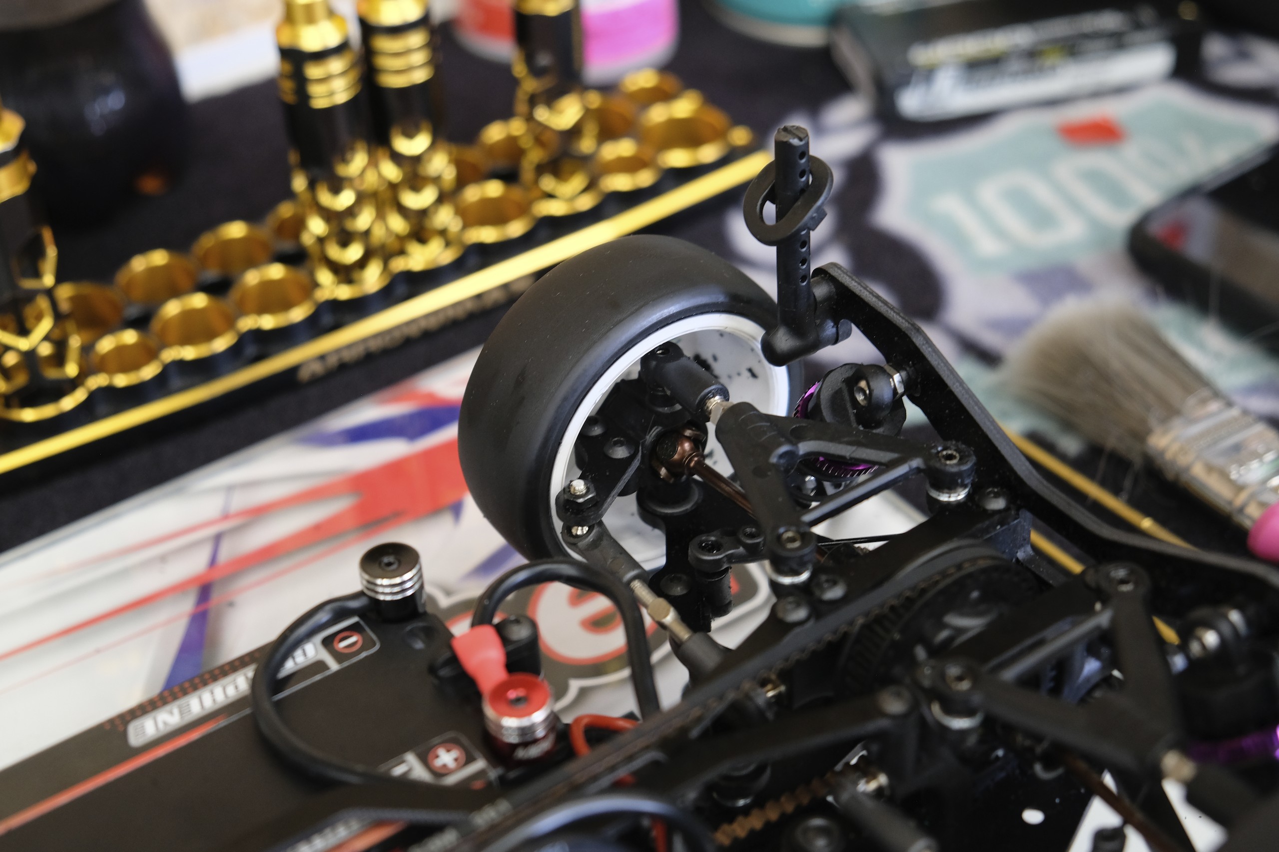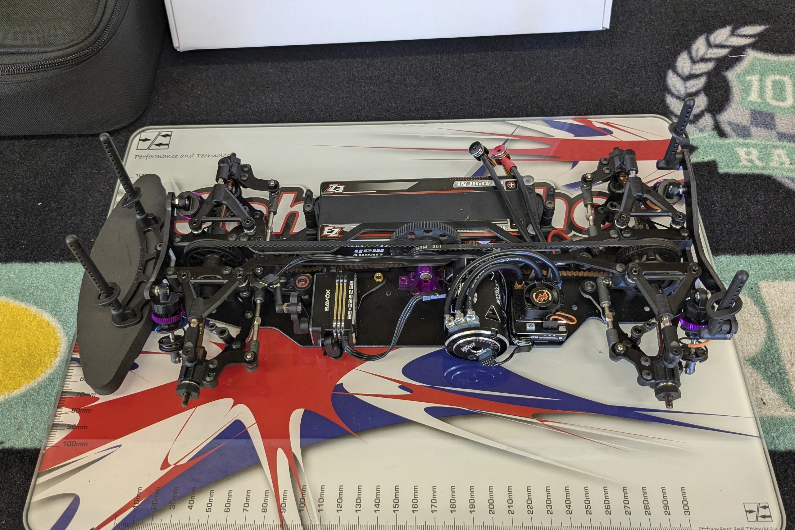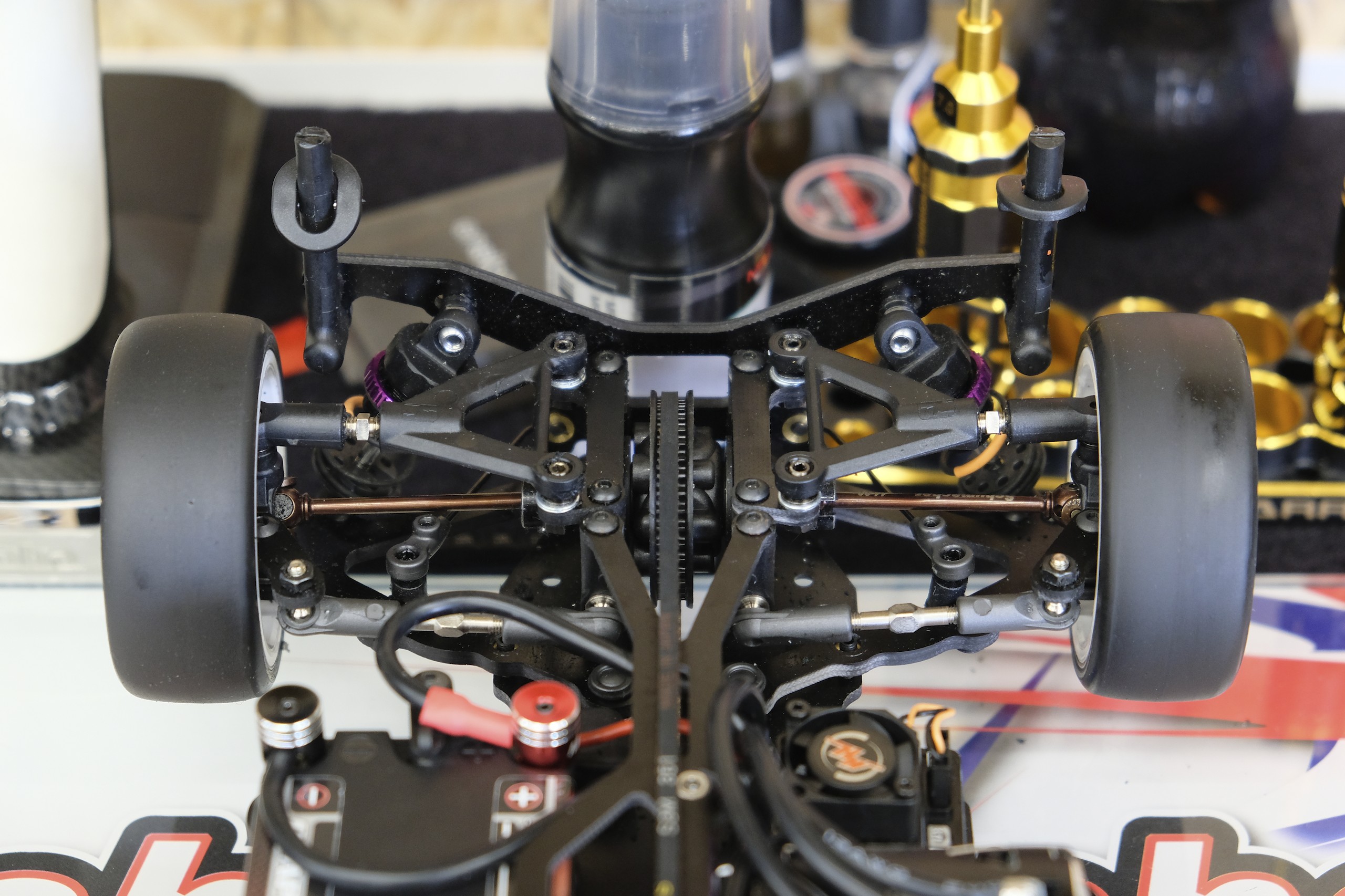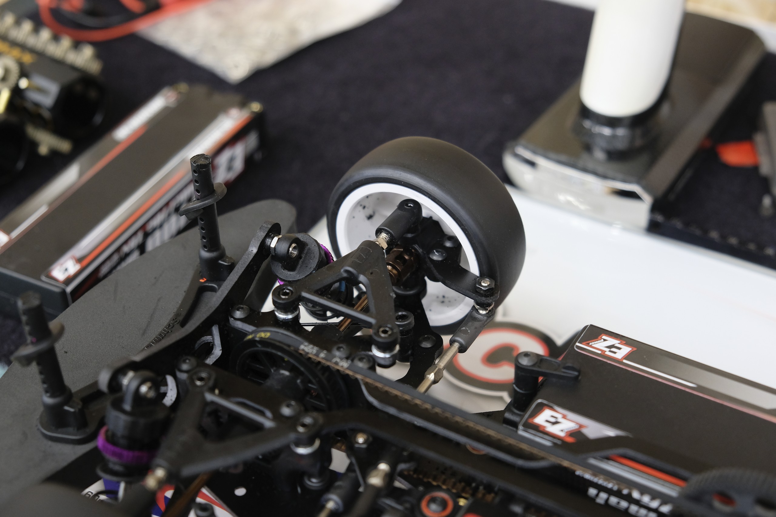 Une troisième série de photos de cette Schumacher Vibe TC lorsqu'elle était en cours de montage et avant les réglages. |