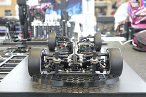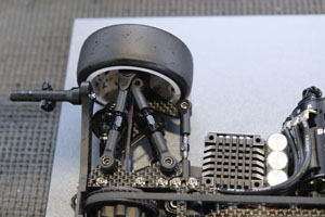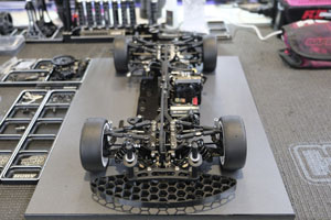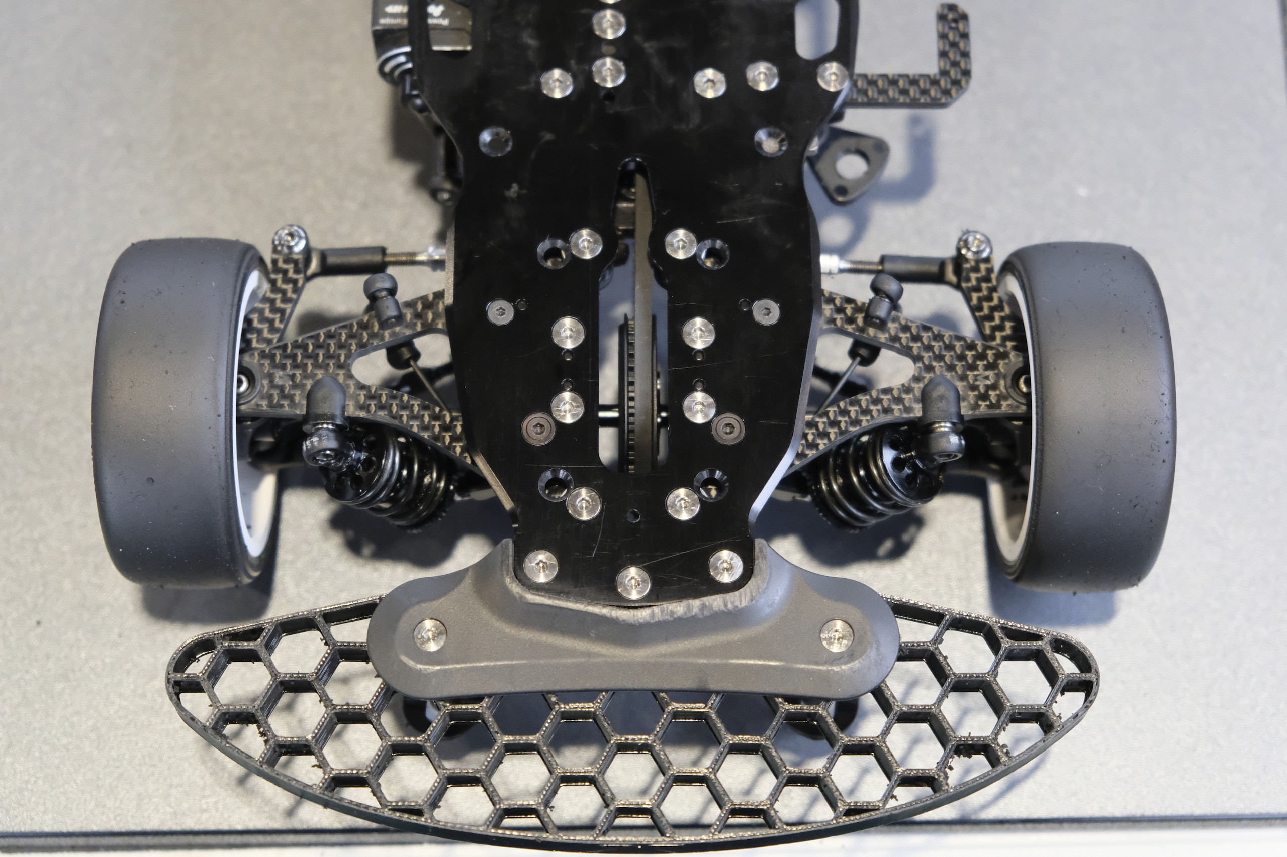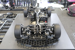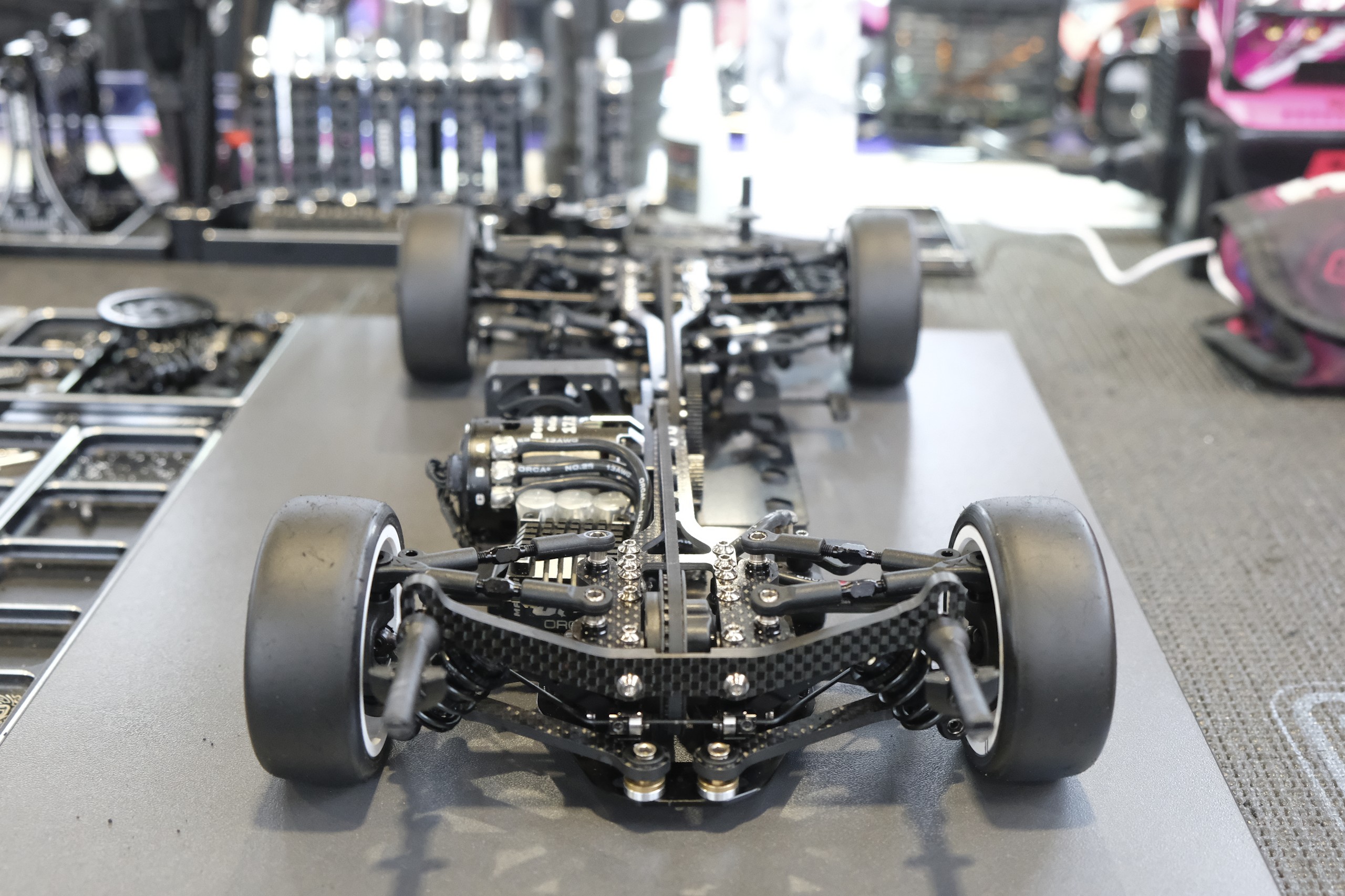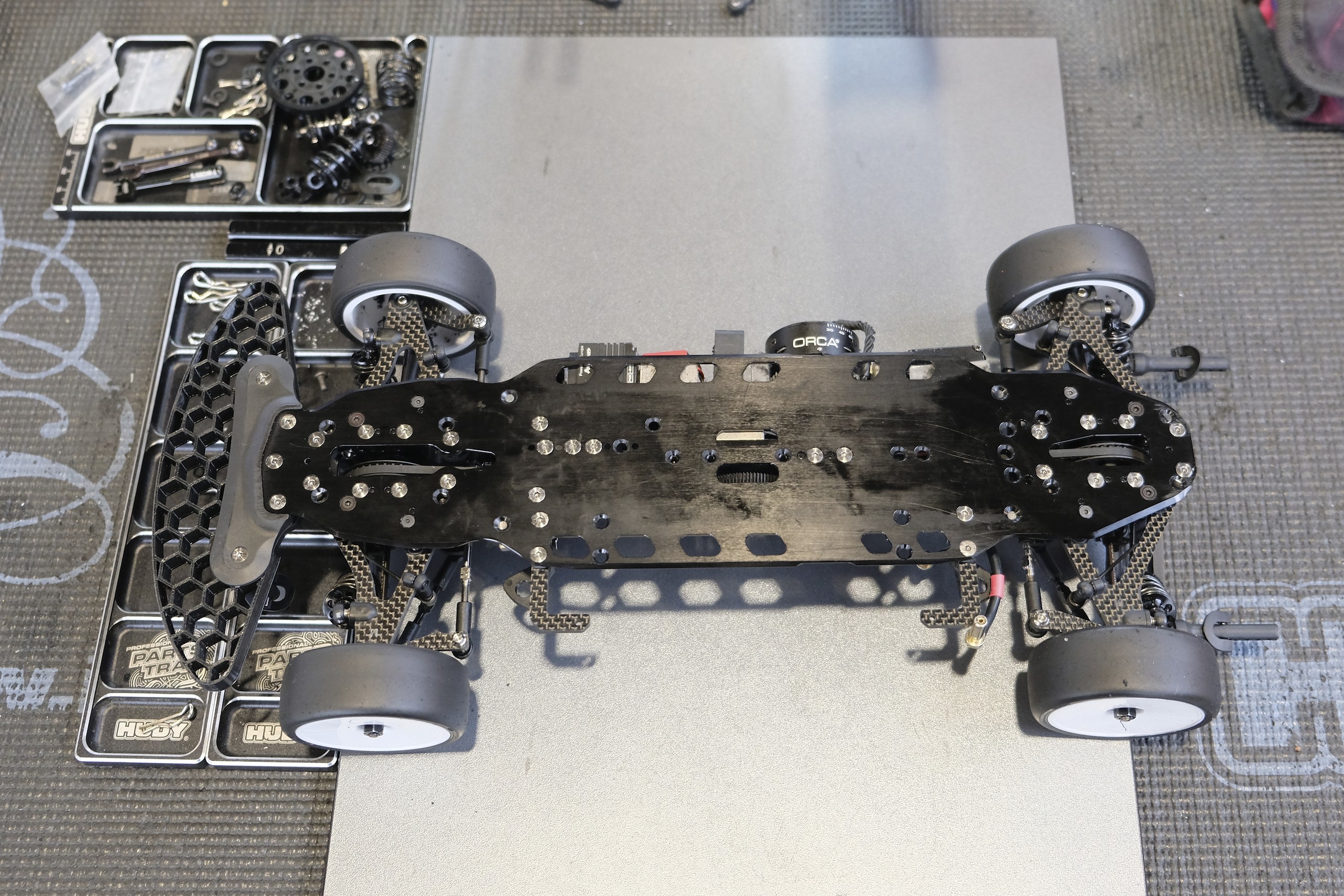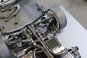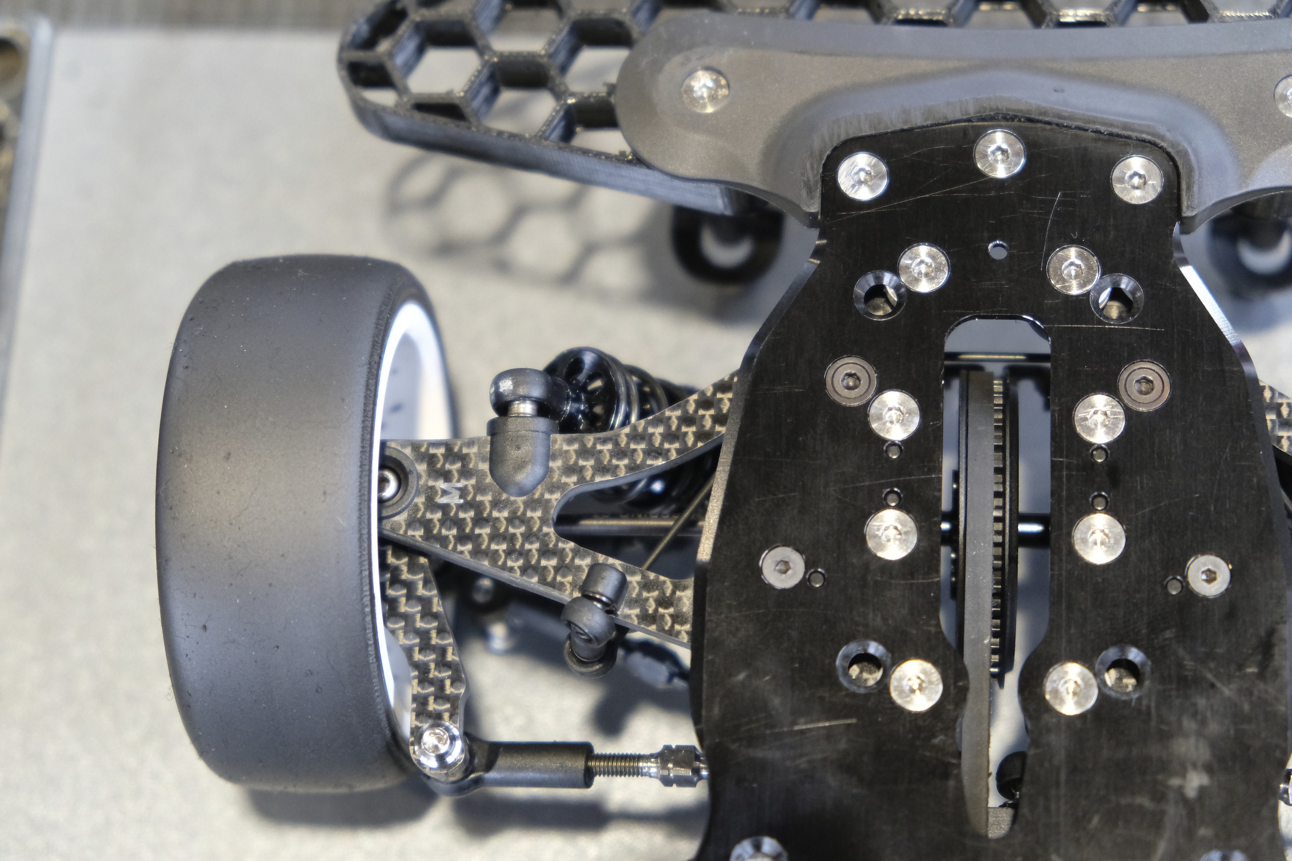 Comme écrit précédemment, exit les mortisseurs ancrés à l'intérieur des triangles, mais exit aussi les triangles inférieurs "CFF" (pour "Carbon Fiber Fusion", qui est la désignation de Team XRay pour ses triangles inférieurs et supérieurs comprenant une âme découpée dans une plaque de composite à base de fibres de carbone sur laquelle est surmoulée une structure comprenant les chapes de rotules de suspension et les supports de barre antiroulis), et place aux nouveaux triangles "CFF2". Ces derniers reposent également sur le principe du surmoulage des éléments en plastique sur du carbone, mais cette fois-ci, le processus a été simplifié car le carbone ne constitue plus une âme de renfort du triangle, mais constitue celui-ci. On y gagne théoriquement en solidité et fiabilité, mais on regrettera juste que ces nouveaux triangles inférieurs ne soient pas au moins symétriques droite et gauche. Les triangles supérieurs reprennent toutefosi encore l'architecture "CFF", mais comme pour la version 2025 sont également livrés des triangles supérieurs à doubles biellettes façon Awesomatix en plus de ceux-ci. Ces triangles supérieurs à doubles biellettes sont d'ailleurs montés sur l'auto photographiée ci-dessous. Ils sont montés maintenant sur des pièces de réglages en carbone et non plus en aluminium montés sur de nouvelles cellules, pour un gain de poids. Les amortisseurs sont les versions ultra-courtes XLP2 repris de la version 2025. La transmission est conservée dans son ensemble, sauf le spool avant et le différentiel arrière qui ont été revus pour tourner sur de plus petits roulements. Un parechoc imprimé en 3D au design alvéolé très traditionnel est toujours livré dans le kit, même si ma préférence va nettement aux parechocs en mousse. A noter que le support d'amortisseurs arrière peut être monté à choix horizontal ou vertical, et que c'est cette dernière position qui est mis en avant par Team XRay. Beaucoup de petits détails ont également évolués. Un nouveau réglage de butées basses est ainsi maintenant par exemple proposé, les bras de renvoi des porte-fusées ne sont plus en aluminium, mais en carbone, etc. L'auto offre de très nombreuses possibilités du réglage du flex. Comme à l'accoutumée, Team XRay propose sa X4 2026 en trois versions, une avec châssis en carbone de 2.2mm (référence XR-300042), une avec châssis en aluminium flex de 1.5mm d'épaisseur (référence XR-300044), et une avec châssis en aluminium flex de 2.0mm d'épaisseur (référence XR-300043). Team XRay offre avec cette version 2026 de la Team XRay X4 une proposition technique avec une qualité de fabrication excellente et une philosophie globale intéressante, et ce malgré défauts, à un tarif en rapport avec le placement haut-de-gamme de cette auto, mais malheureusement inaccessible pour de nombreuses bourses. Au volant de cette Team Xray X4 2026 équipée d'un châssis en aluminium visible sur les photos ci-dessous, Benjamin Elbisser a décroché la pole position et remporté la finale A en catégorie Touring Car 17.5 Open de la première manche des IndoorsSeries de la saison 2025-2026. Elle est montée avec le châssis en aluminium et les triangles supérieurs à doubles biellettes On notera également la présence de visserie en titane à tête UFO et de biellettes à pas inversé et de bielletes en titane au niveau de la direction et de l'ARS d'origineT-Works. L'auto est équipée d'un moteur Orca brushless Boost Plus Outlow 17.5T, d'un contrôleur OE1 Mark II et de batteries LiPo de la même marque. Le servo de direction est un PowerHD S15-X, spécialement conçu pour les Team Xray X4. Il se distingue par l'absence de fixations d'origine, se fixant directement sur le châssis, et par une sortie de fil déportée vers la droite du boîtier, côté centre du châssis, permettant une installation plus propre de l'électronique. La partie radiocommande est confiée à une Sanwa M17S associée à un récepteur RX492i. |