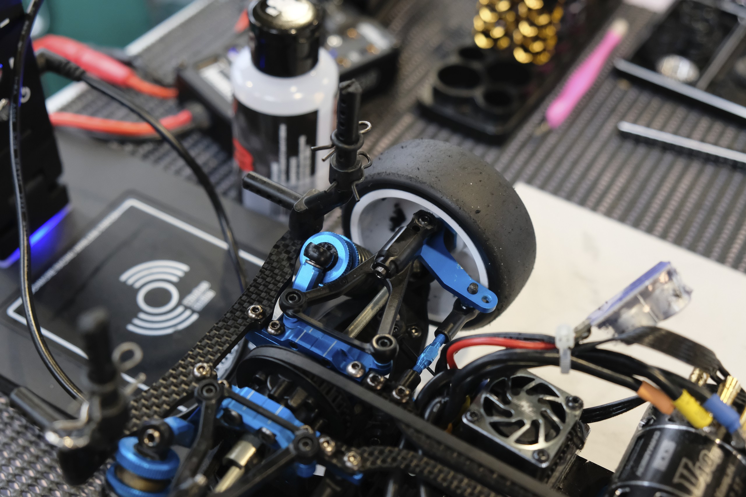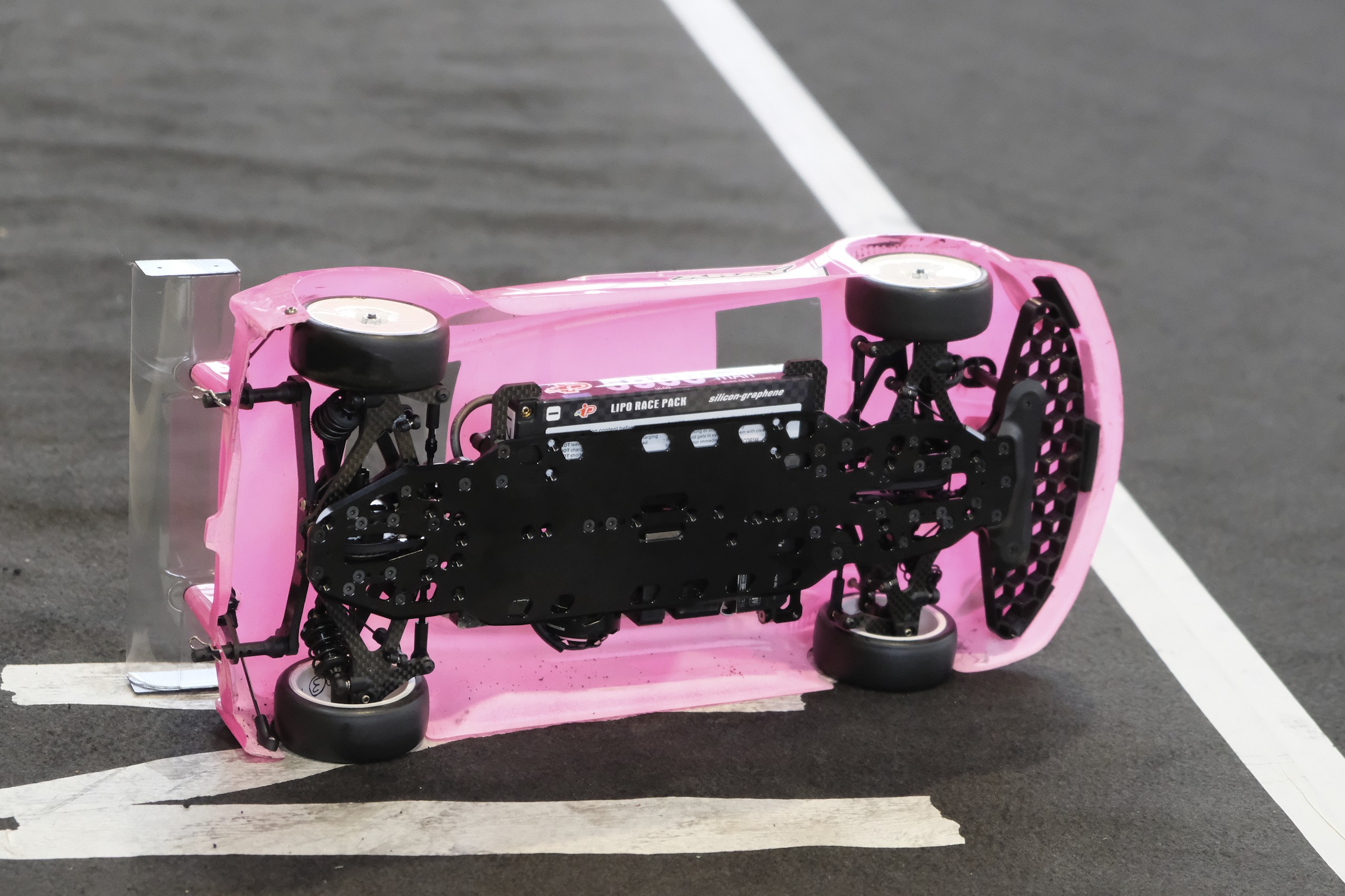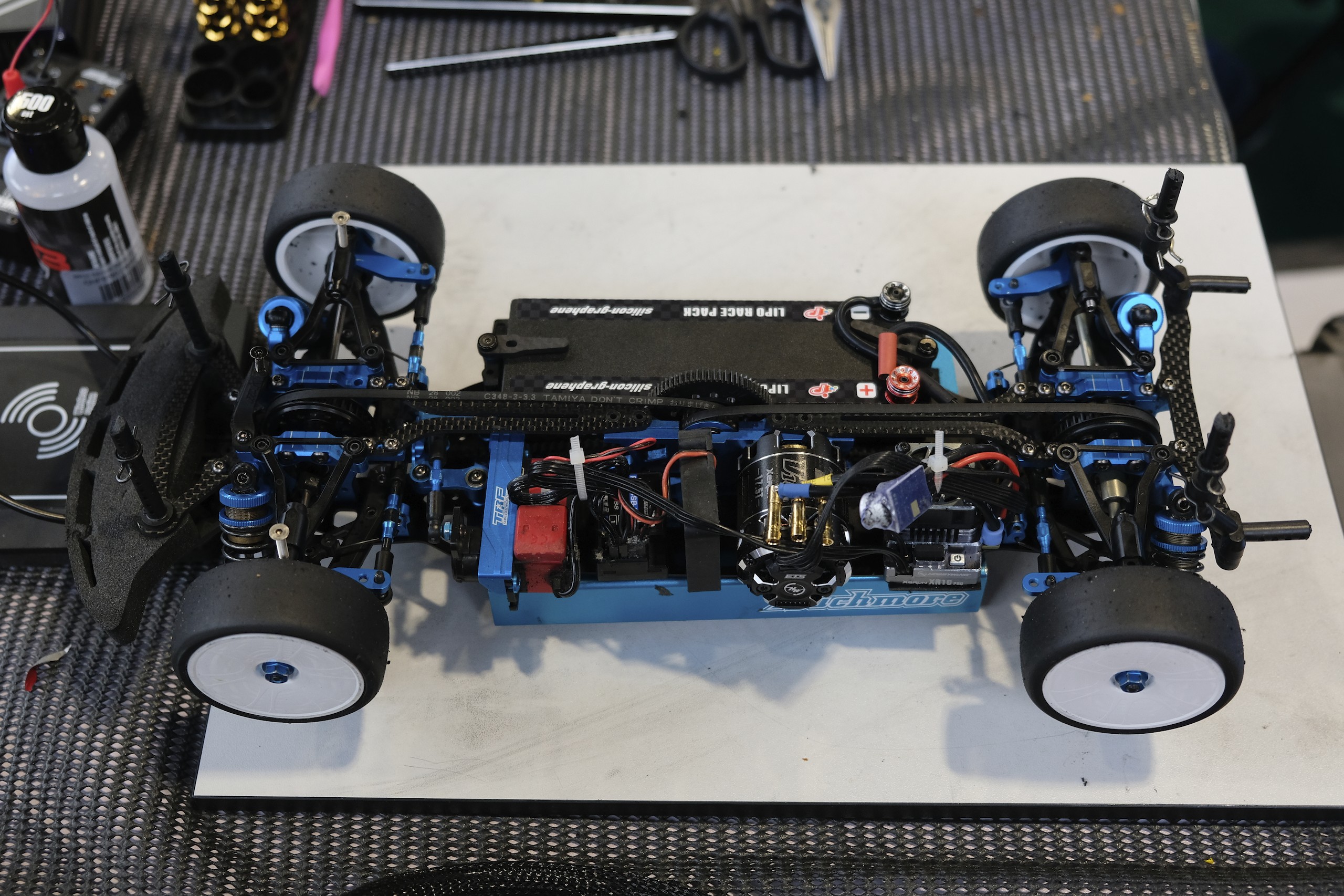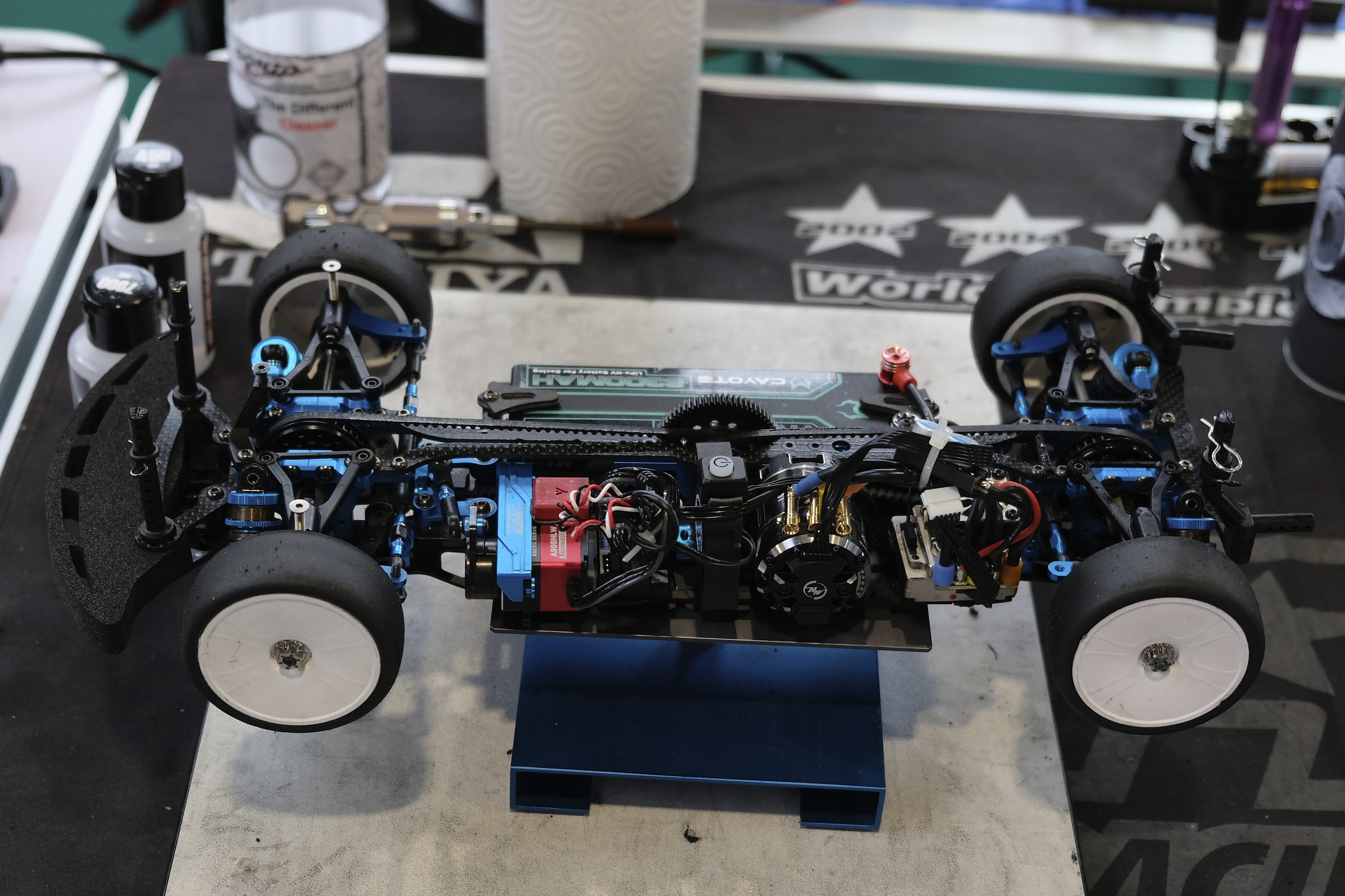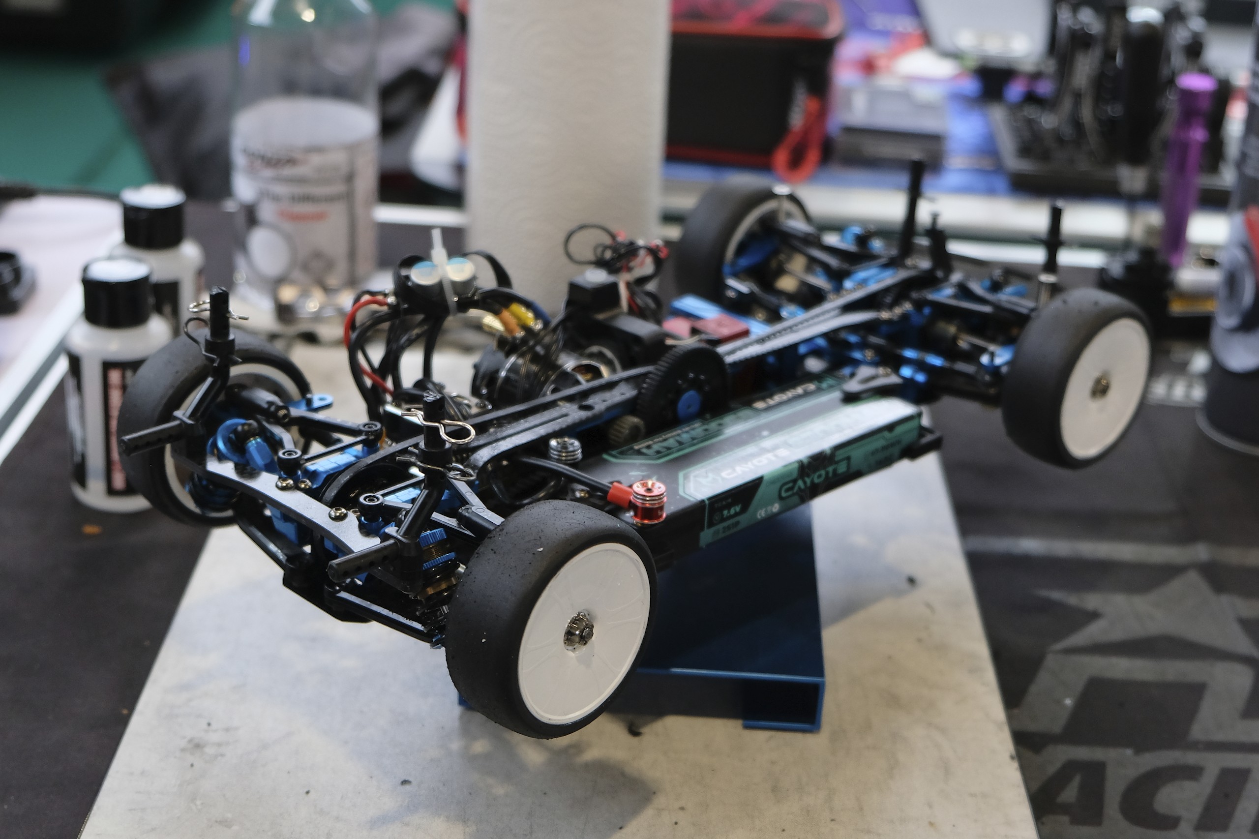 La Tamiya TRF421 de Eric Heubi.Trois pilotes courraient lors de cette première manche des IndoorsSeries de la saison 2025-2026 avec une Tamiya TRF421. La première, celle de Markus Heubi, est motorisée par un moteur brushless 17.5T Hobbywing Xerun V10 Pro G4 associé à d'un contrôleur Xerun XR10 Pro G2 de la même marque, alimenté par des batteries LiHV LCG de 6300mAh de marque Cayote. La partie radiocommande est confiée à Futaba et le servo de direction est un "low-profile" de marque AGFRC référence A50BHLW. |