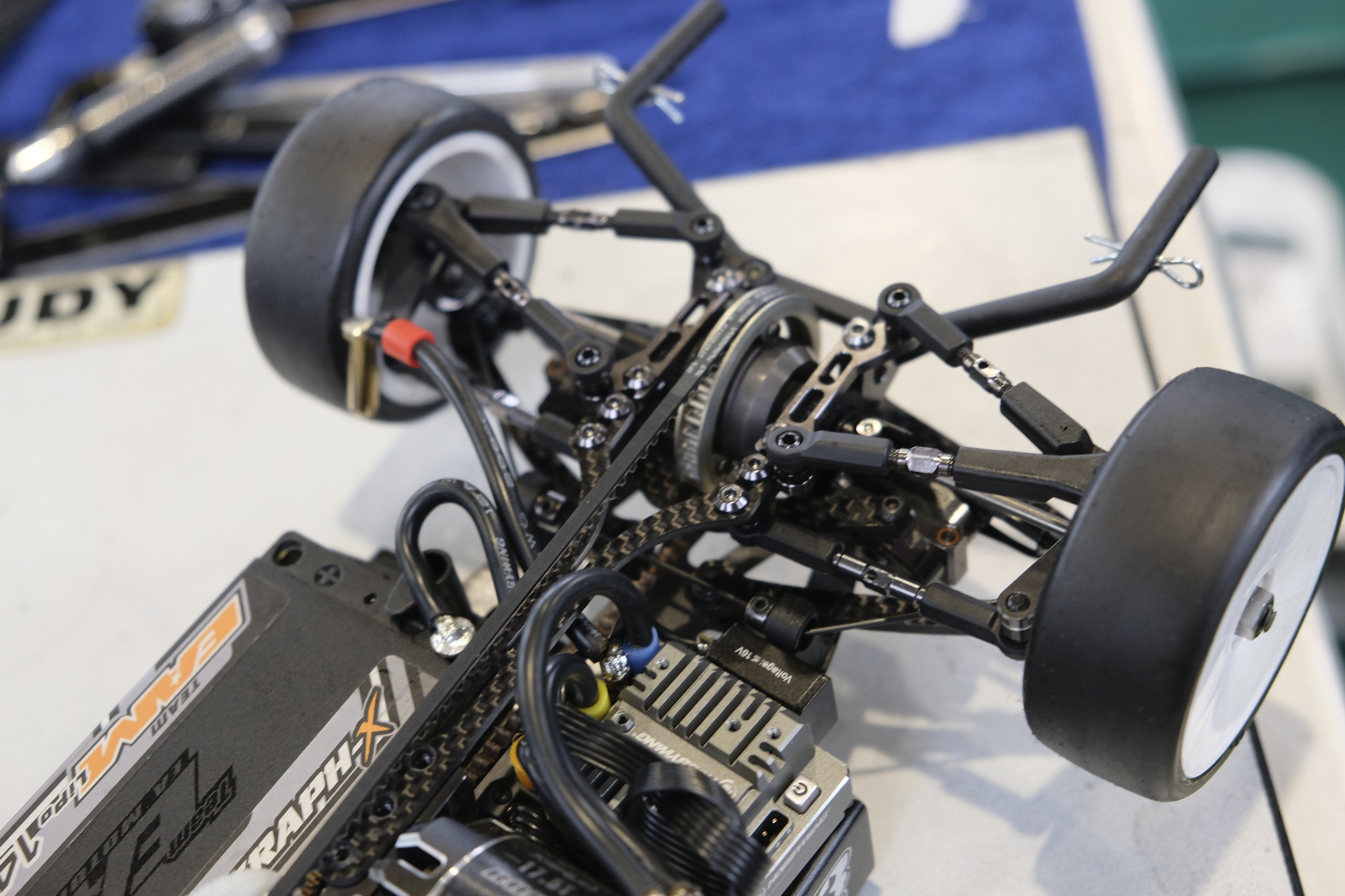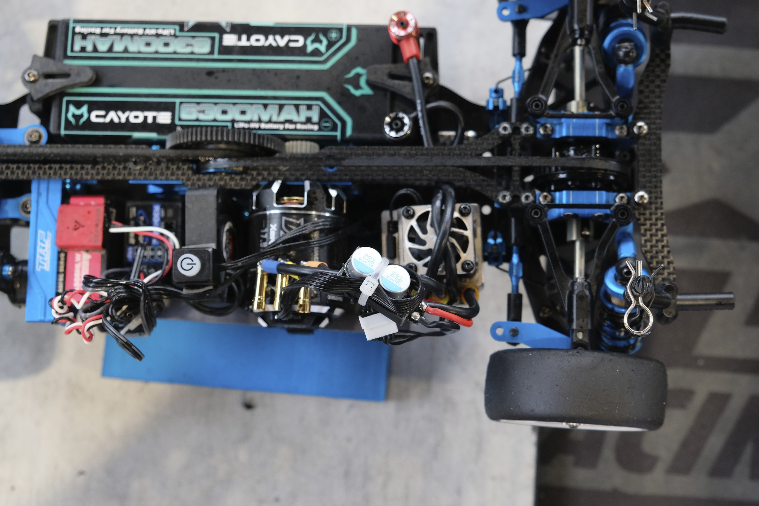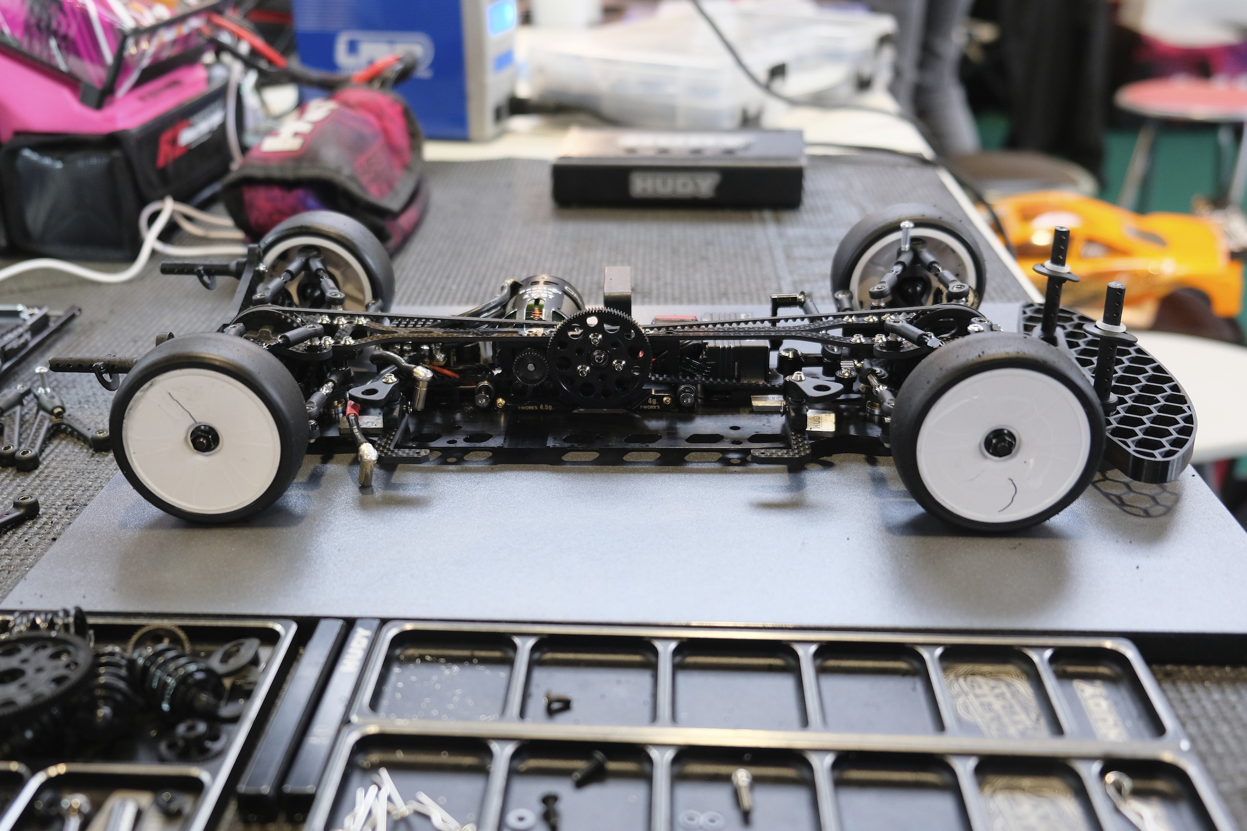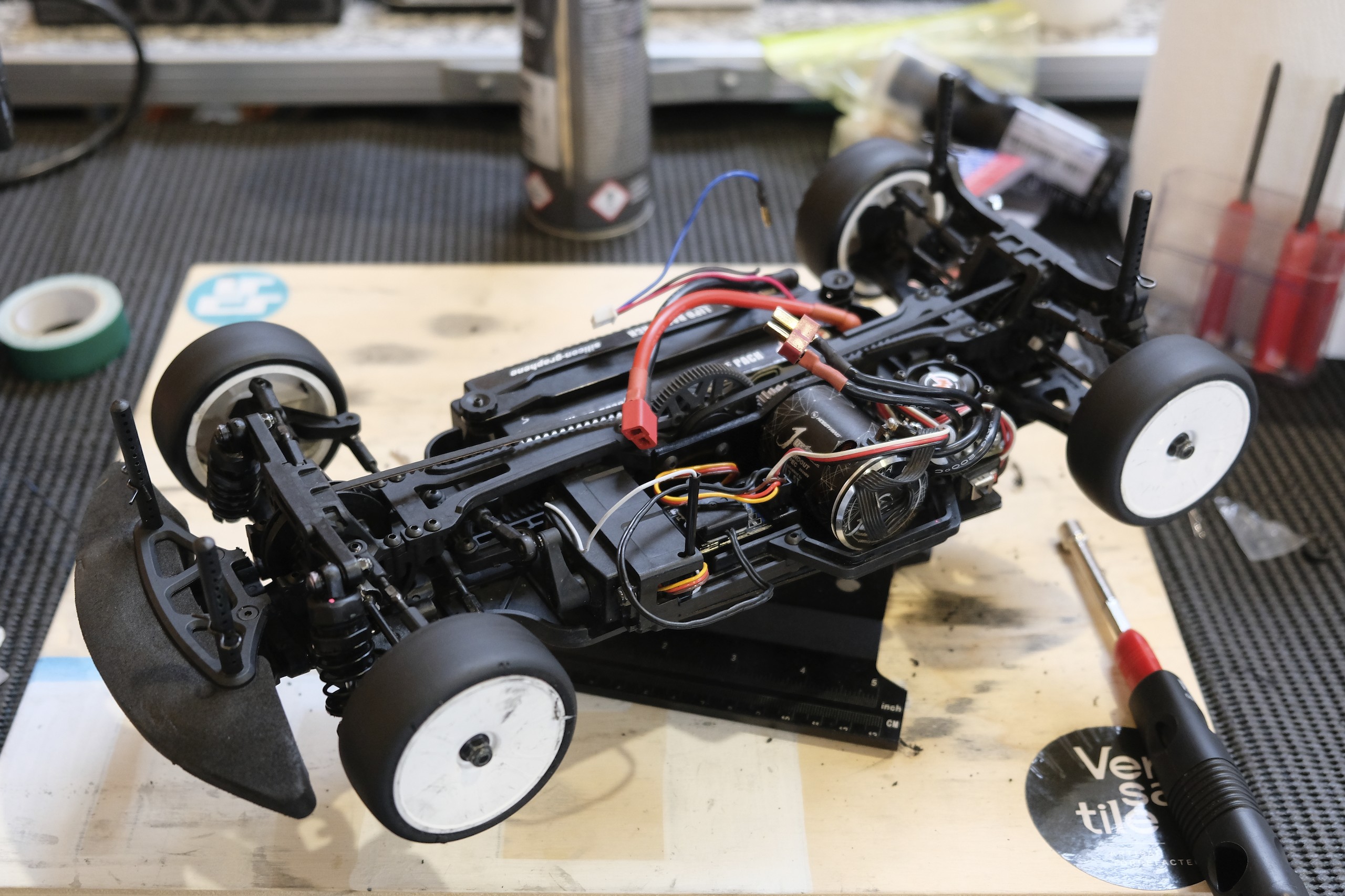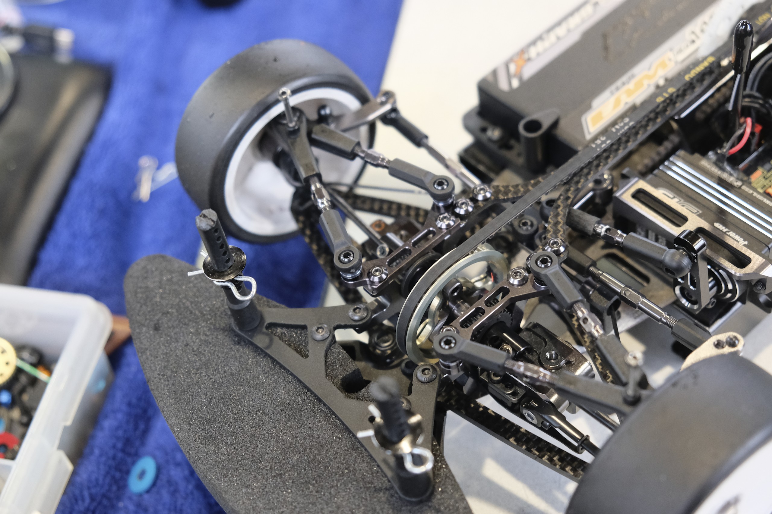 La Tamiya TRF421 de Eric Heubi.Trois pilotes courraient lors de cette première manche des IndoorsSeries de la saison 2025-2026 avec une Tamiya TRF421. La première, celle de Markus Heubi, est motorisée par un moteur brushless 17.5T Hobbywing Xerun V10 Pro G4 associé à d'un contrôleur Xerun XR10 Pro G2 de la même marque, alimenté par des batteries LiHV LCG de 6300mAh de marque Cayote. La partie radiocommande est confiée à Futaba et le servo de direction est un "low-profile" de marque AGFRC référence A50BHLW. |