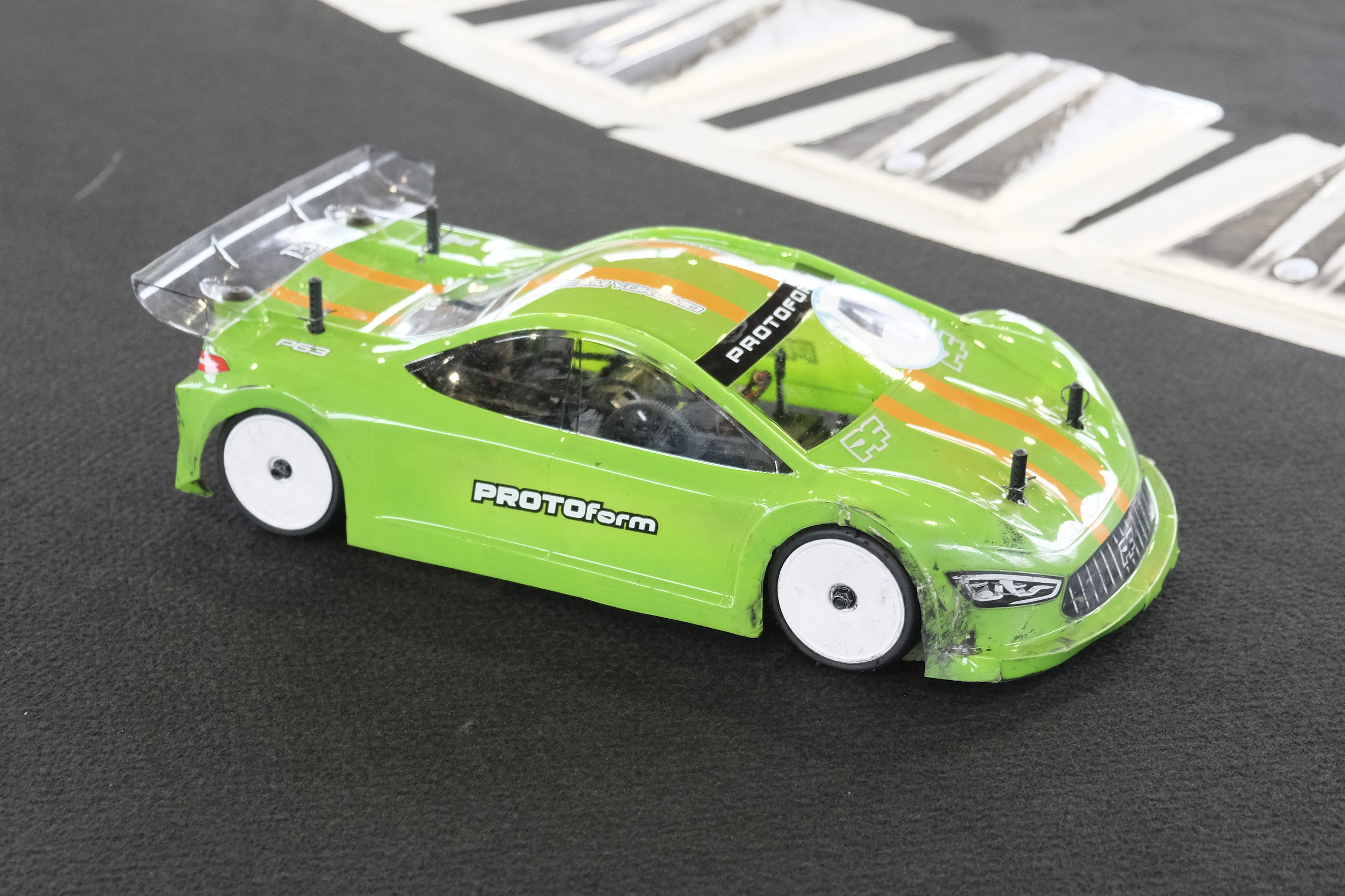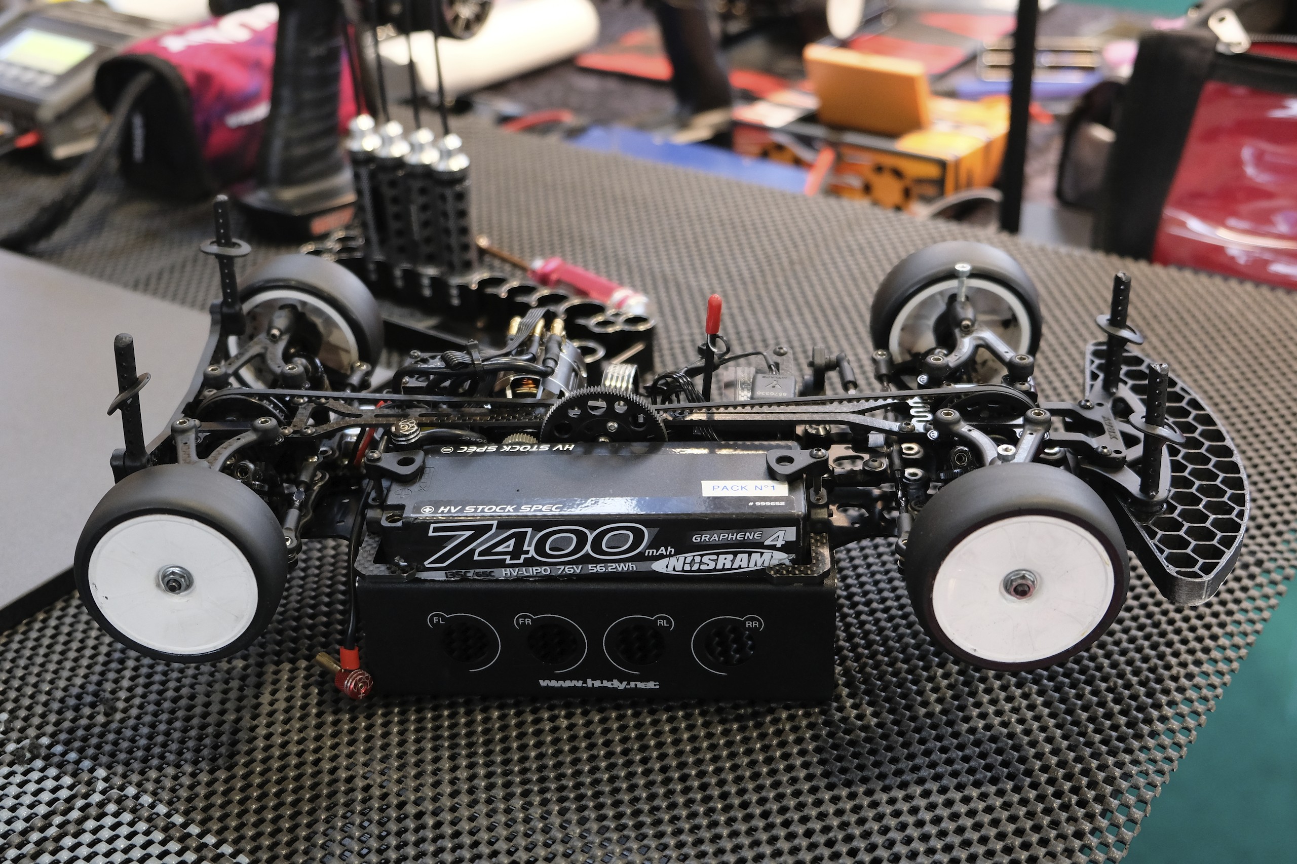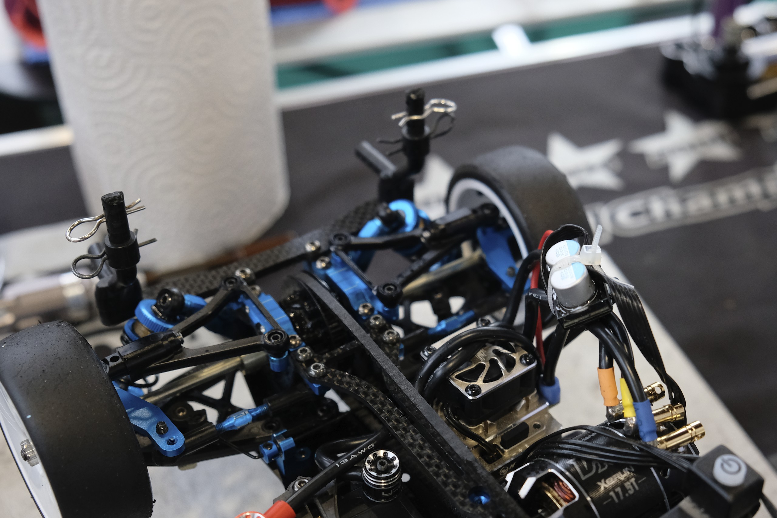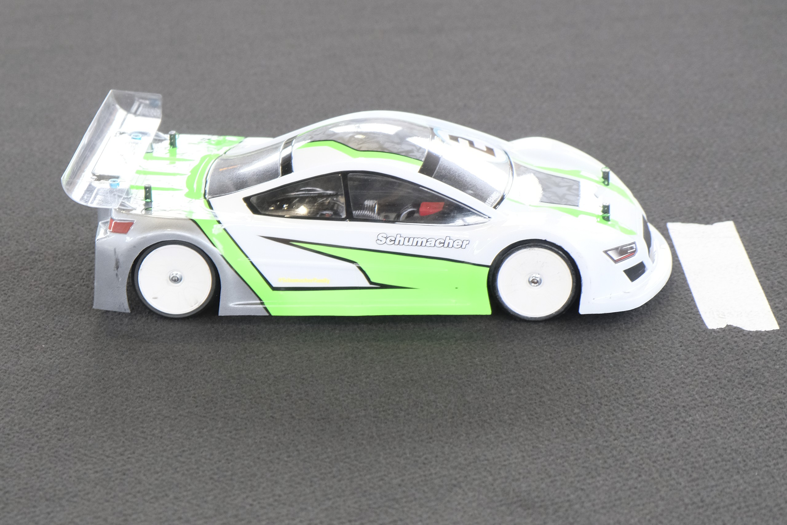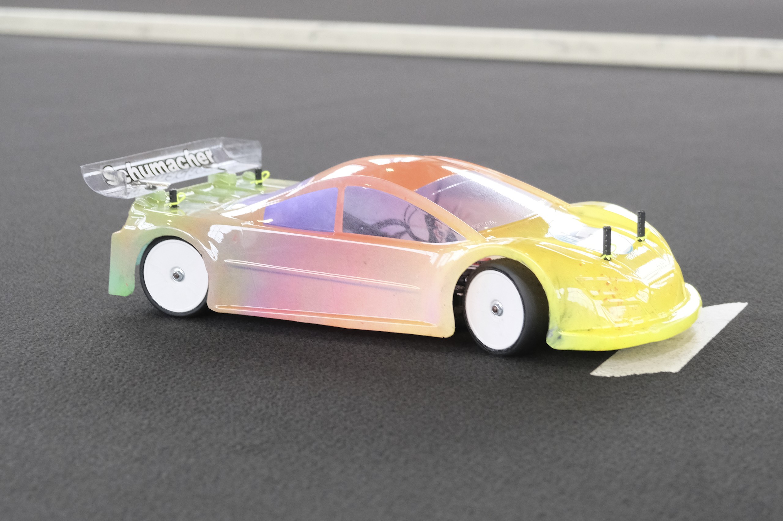 La Schumacher Vibe TC de Grégory Freiburghaus.Deux pilotes, dont Grégory Freiburghaus, roulait avec la nouvelle Touring 1/10° électrique entrée-de-gamme destinée à la compétition de la marque britannique Schumacher Racing Products, la Vibe TC. Cette dernière avait déjà fait l'objet d'une présentation détaillée sur ce même site début octobre. La Schumacher Vibe TC de Grégory Freiburghaus en photos ci-dessous est sensiblement d'origine, hormis l'adoption de barress antiroulis avant et arrière. L'auto en photos ci-dessous est motorisée par un moteur brushless 17.5T Hobbywing Xerun V10 Pro G4 associé à d'un contrôleur Xerun XR10 Pro G2 de la même marque, alimenté par des batteries LiHV LCG de marque IP Intellect et au format "Shorty". La partie radiocommande est confiée à Sanwa et le servo de direction est un "low-profile" de marque HRC Racing référence HRC6820CAR. |