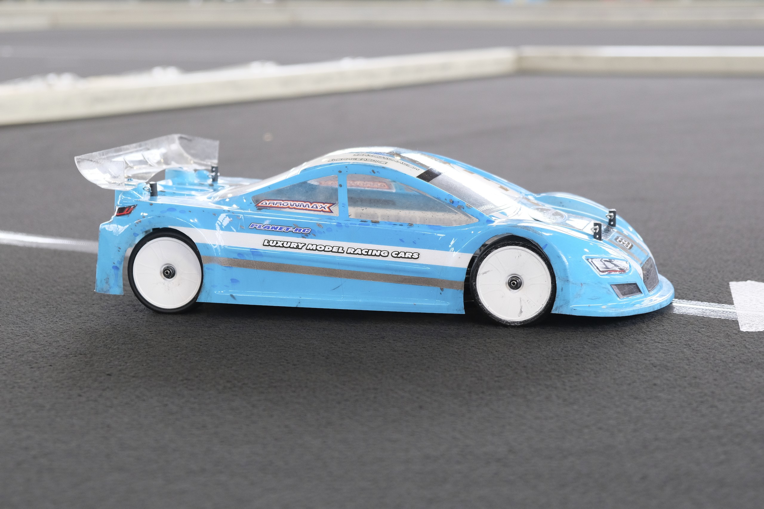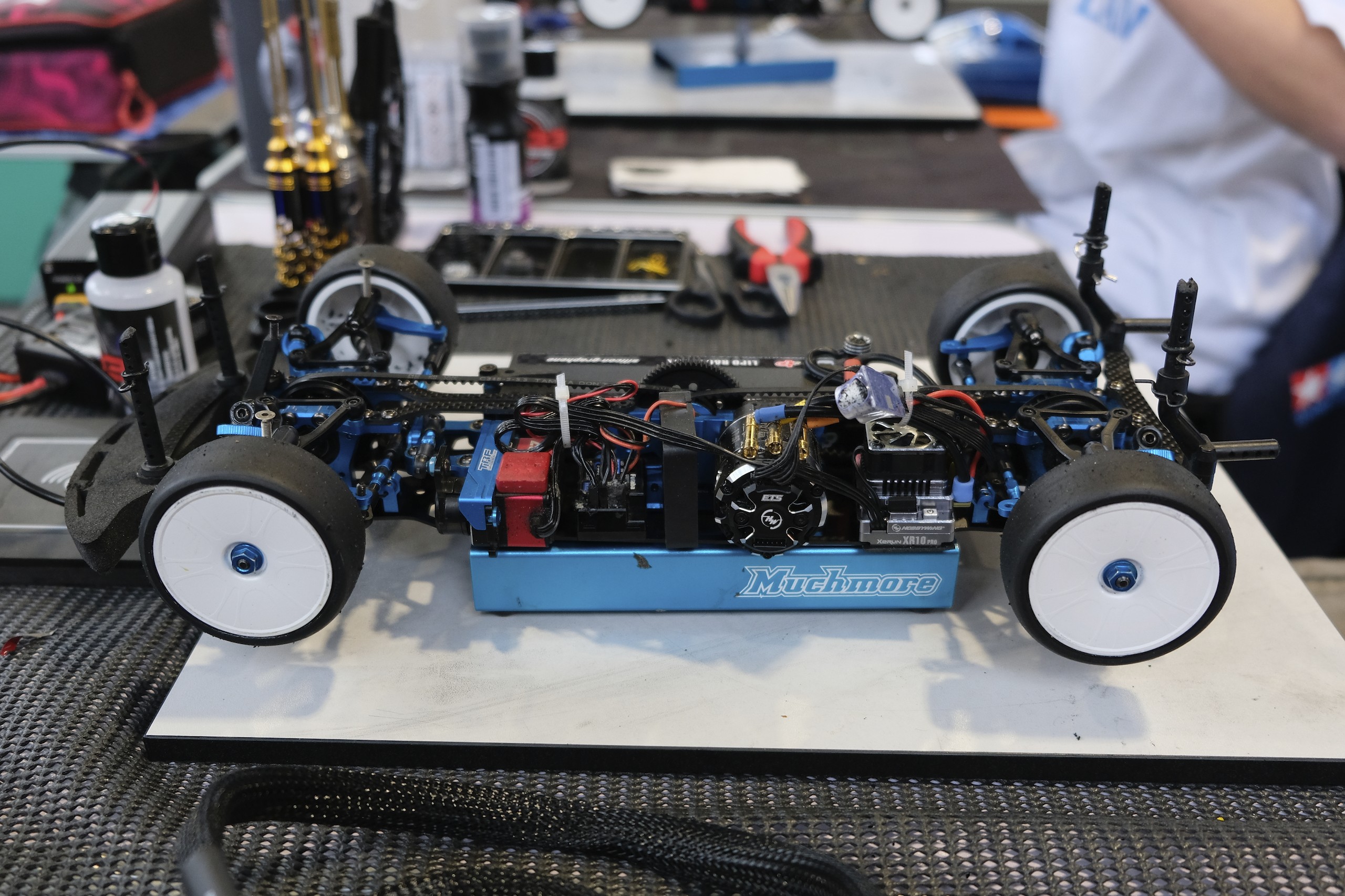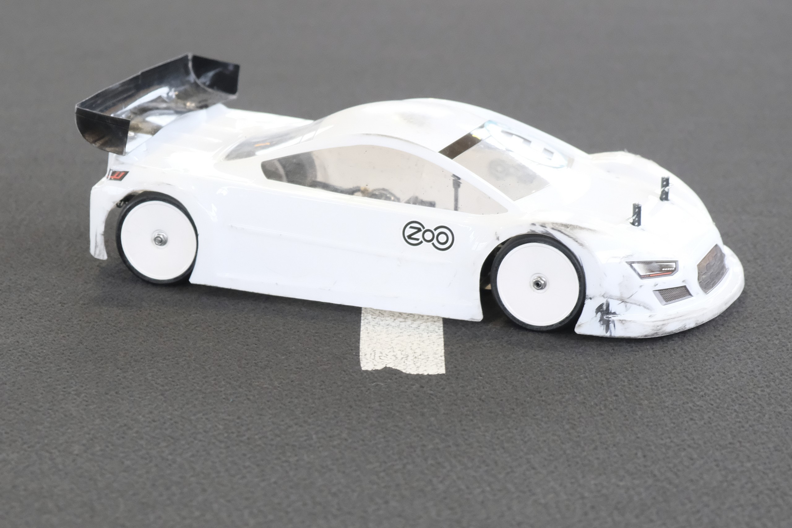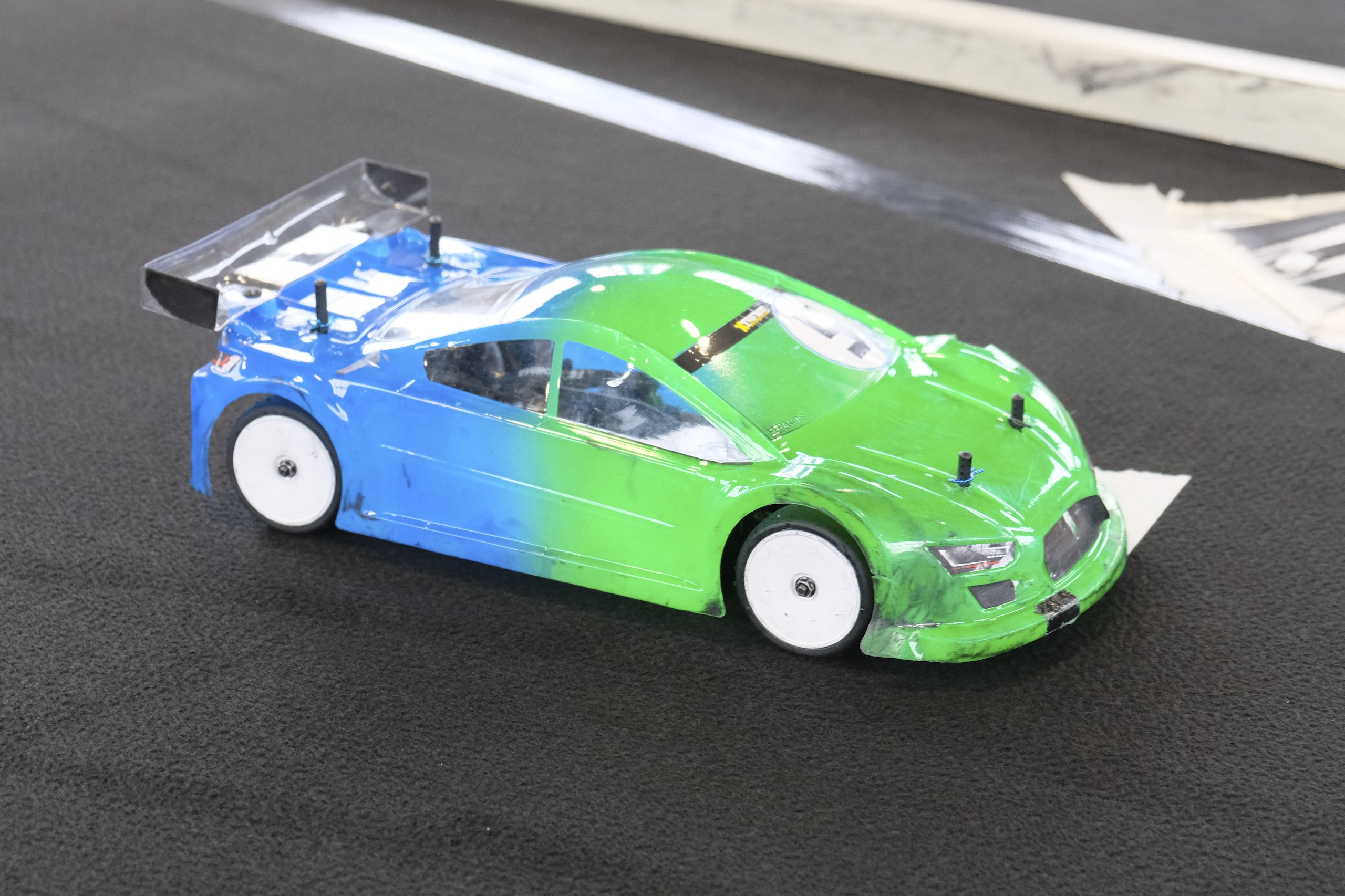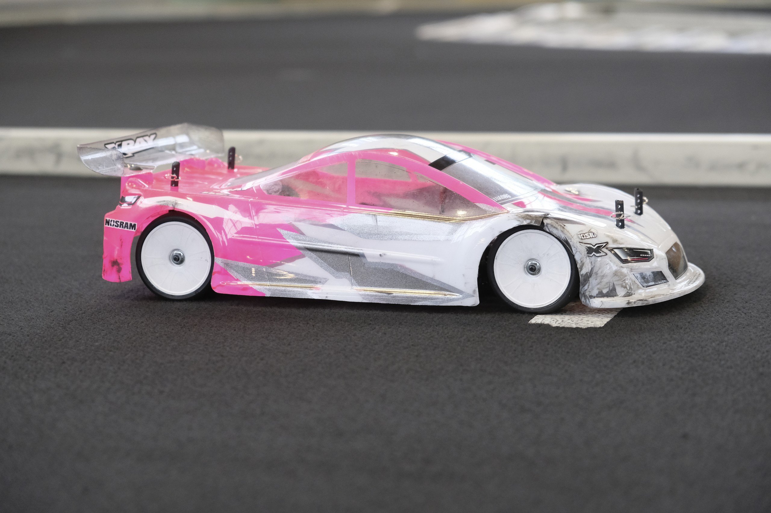 La Schumacher Vibe TC de Grégory Freiburghaus.Deux pilotes, dont Grégory Freiburghaus, roulait avec la nouvelle Touring 1/10° électrique entrée-de-gamme destinée à la compétition de la marque britannique Schumacher Racing Products, la Vibe TC. Cette dernière avait déjà fait l'objet d'une présentation détaillée sur ce même site début octobre. La Schumacher Vibe TC de Grégory Freiburghaus en photos ci-dessous est sensiblement d'origine, hormis l'adoption de barress antiroulis avant et arrière. L'auto en photos ci-dessous est motorisée par un moteur brushless 17.5T Hobbywing Xerun V10 Pro G4 associé à d'un contrôleur Xerun XR10 Pro G2 de la même marque, alimenté par des batteries LiHV LCG de marque IP Intellect et au format "Shorty". La partie radiocommande est confiée à Sanwa et le servo de direction est un "low-profile" de marque HRC Racing référence HRC6820CAR. |