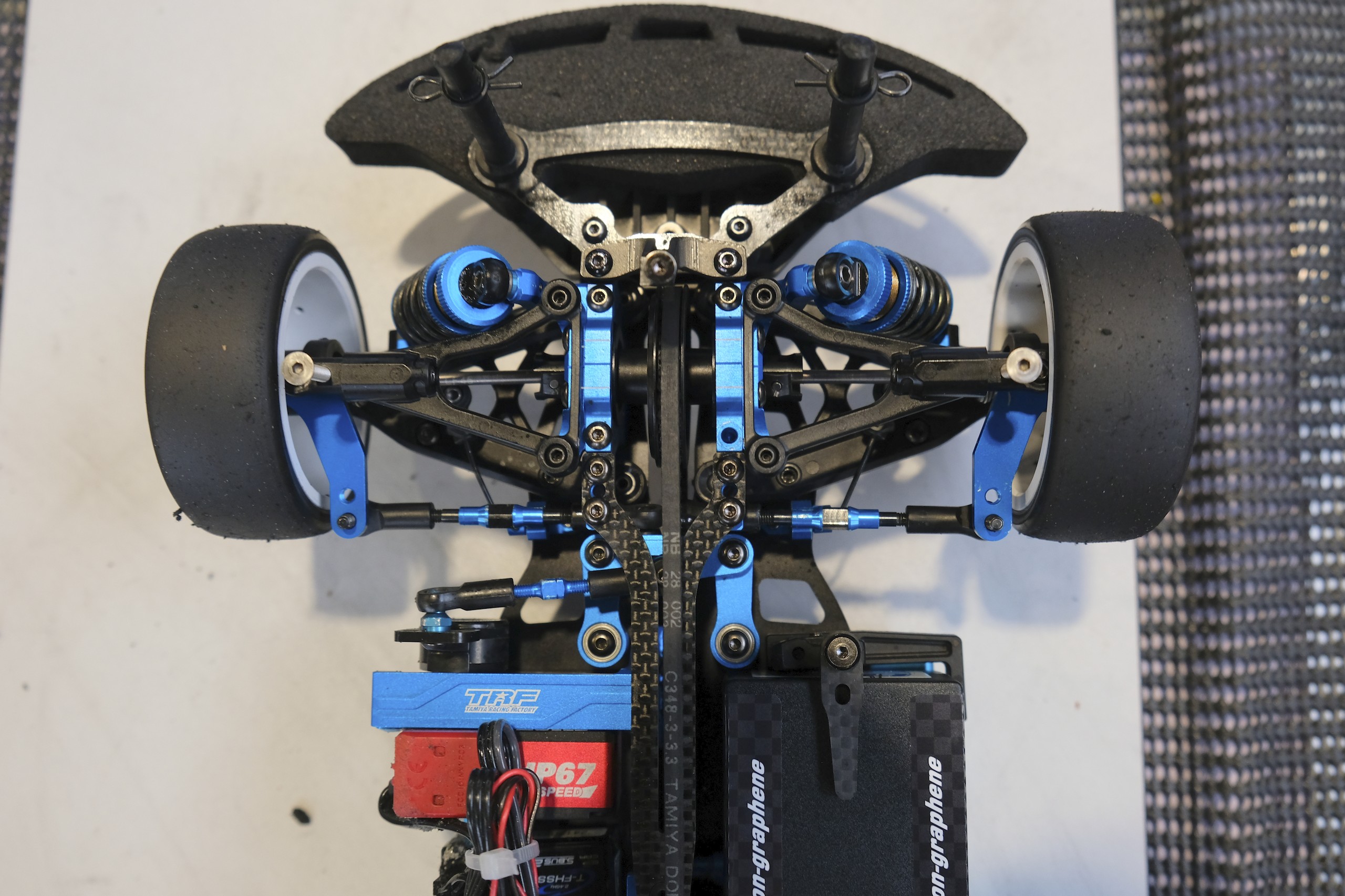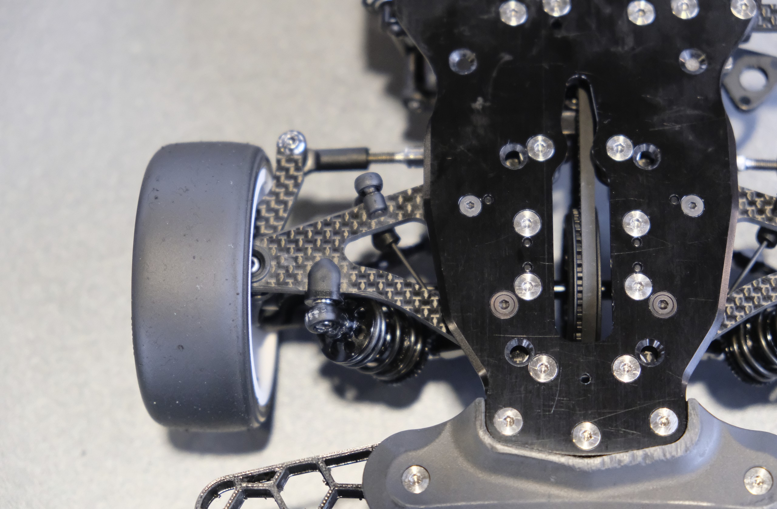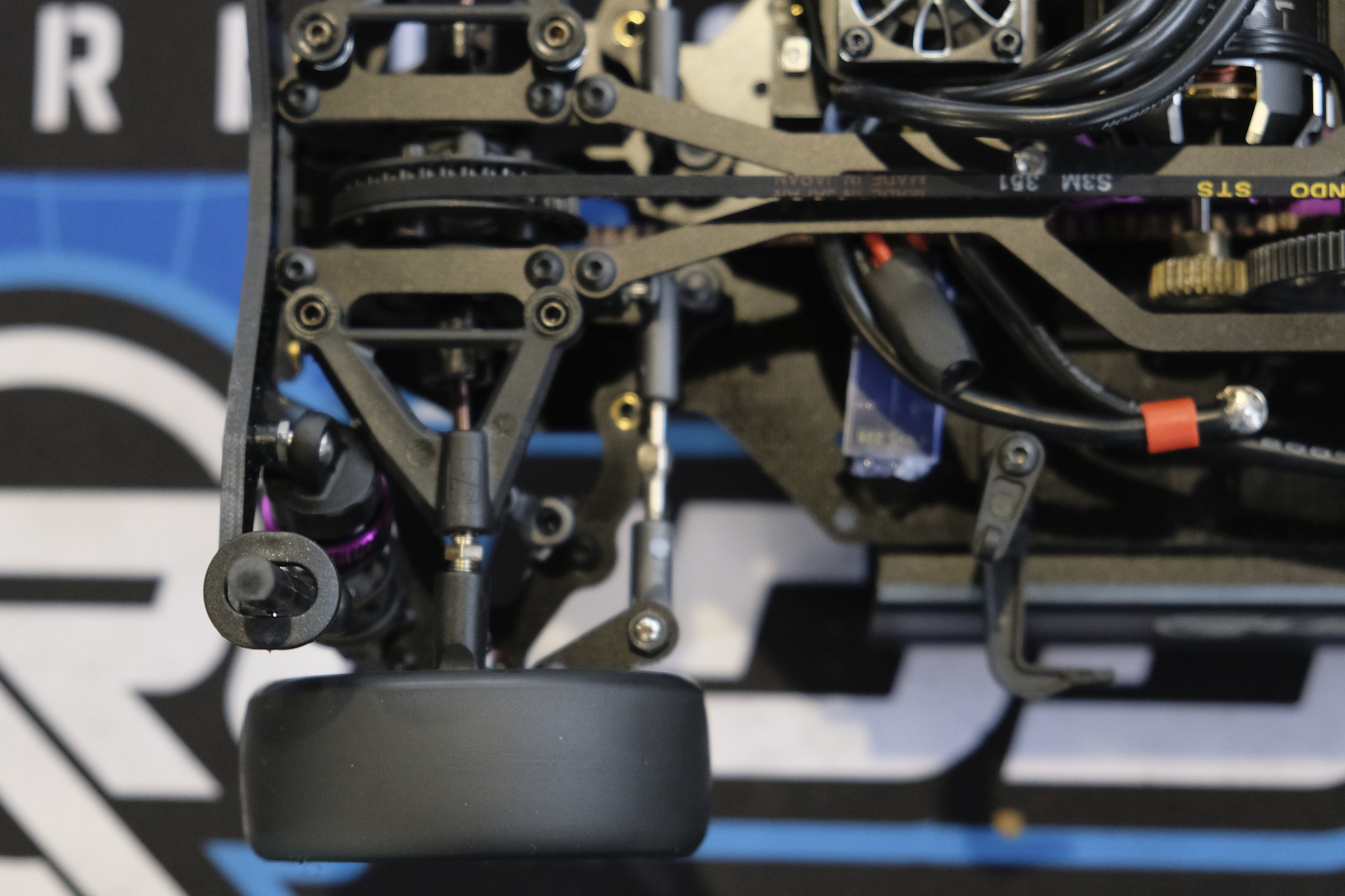 Technique châssis.Beaucoup de propriétaires de Tamiya TRF421 souhaiteraient remplacer les bras de direction en aluminium des porte-fusées d'origine par des versions en carbone, surtout à l'avant, car ils ont tendance à se voiler en cas de chocs un peu violent. Il en existe déjà, par exemple chez le fabricant anglais M-Racing (de qualité inconnue) et chez le fabricant hong-kongais H2RD. Malheureusement, chez ce dernier, la qualité n’est pas vraiment au rendez-vous. En effet, le trou oblong de ces bras est trop large d’environ 0.3mm. Ils sont donc inutilisables en l’état. Seul solution, combler ce vide tant bien que mal avec de la colle cyanoacrylate... Il est d'ailleurs sidérant de voir qu'aucun fabricant ne propose d'options pour la Tamiya TRF421 alors qu'il y a des besoins évidents (il suffit de trainer un peu sur les forums et les réseaux sociaux...) alors que ces mêmes fabricants proposent une ribambelle d'options inutiles pour des autos qui ont des volumes de vente infiniments plus faibles que pour ladite TRF421... Des bras de direction en carbone des porte-fusées pour TRF421 en photos ci-contre étaient en test lors de lors de cette course. Ils se différencient des H2RD par une qualité de carbone différente (la trame visible du tissu de carbone étant plus proche de celle proposée par Tamiya) et un usinage du trou oblong serré, ce qui est voulu et ce qui est très bien pour le guidage, mais qui impose un montage soigné bien à plat. Made in Besançon en France, il devrait bientôt être disponible dans la gamme de pièces THG du magasin français The Hobbies Gate. |