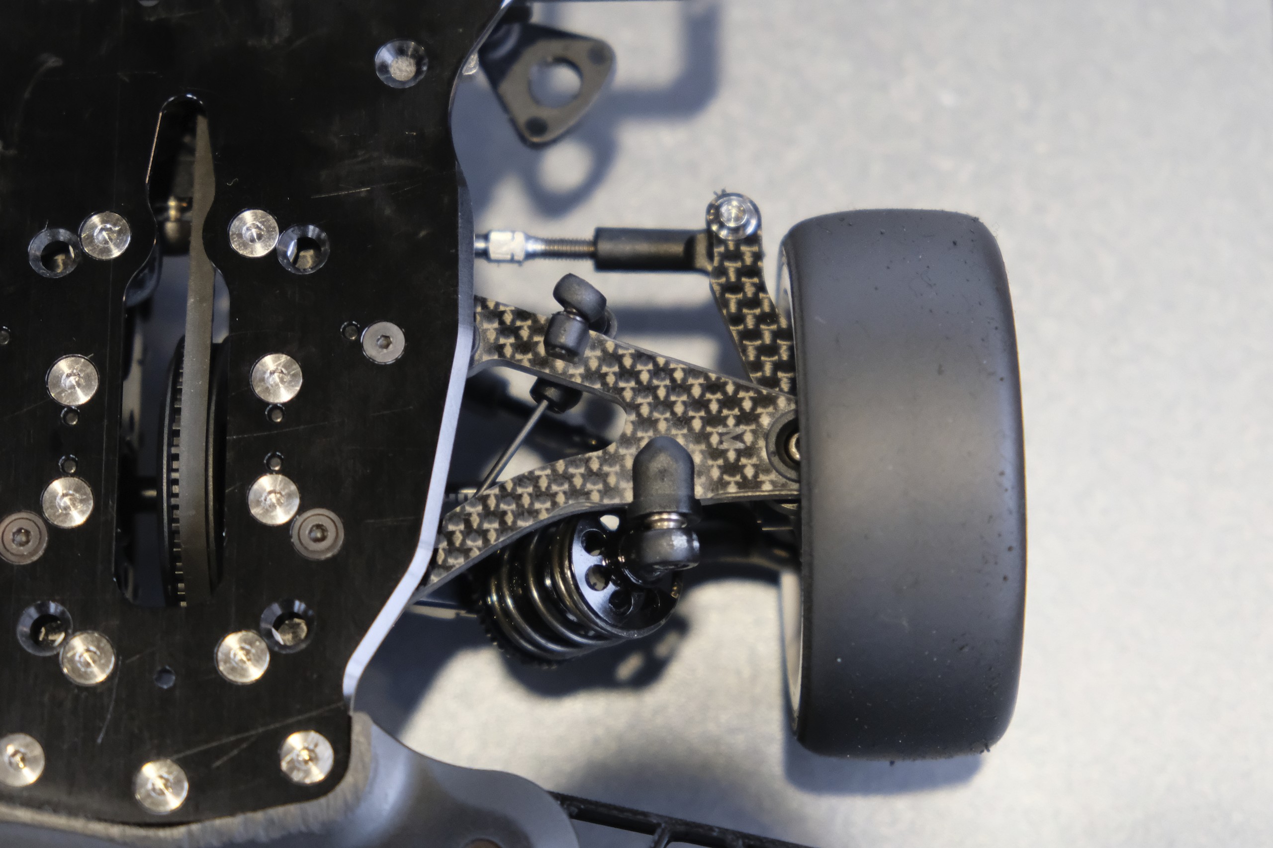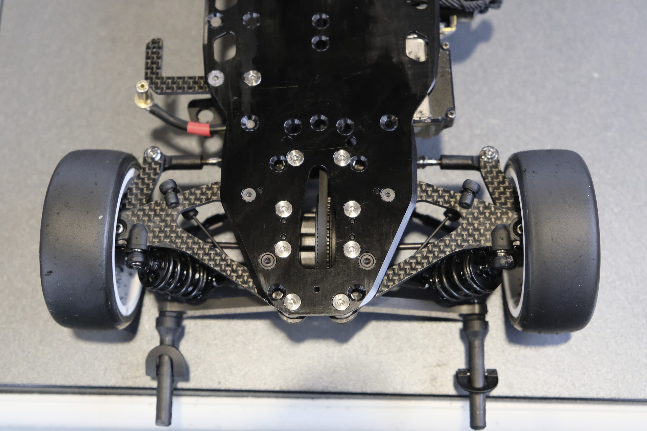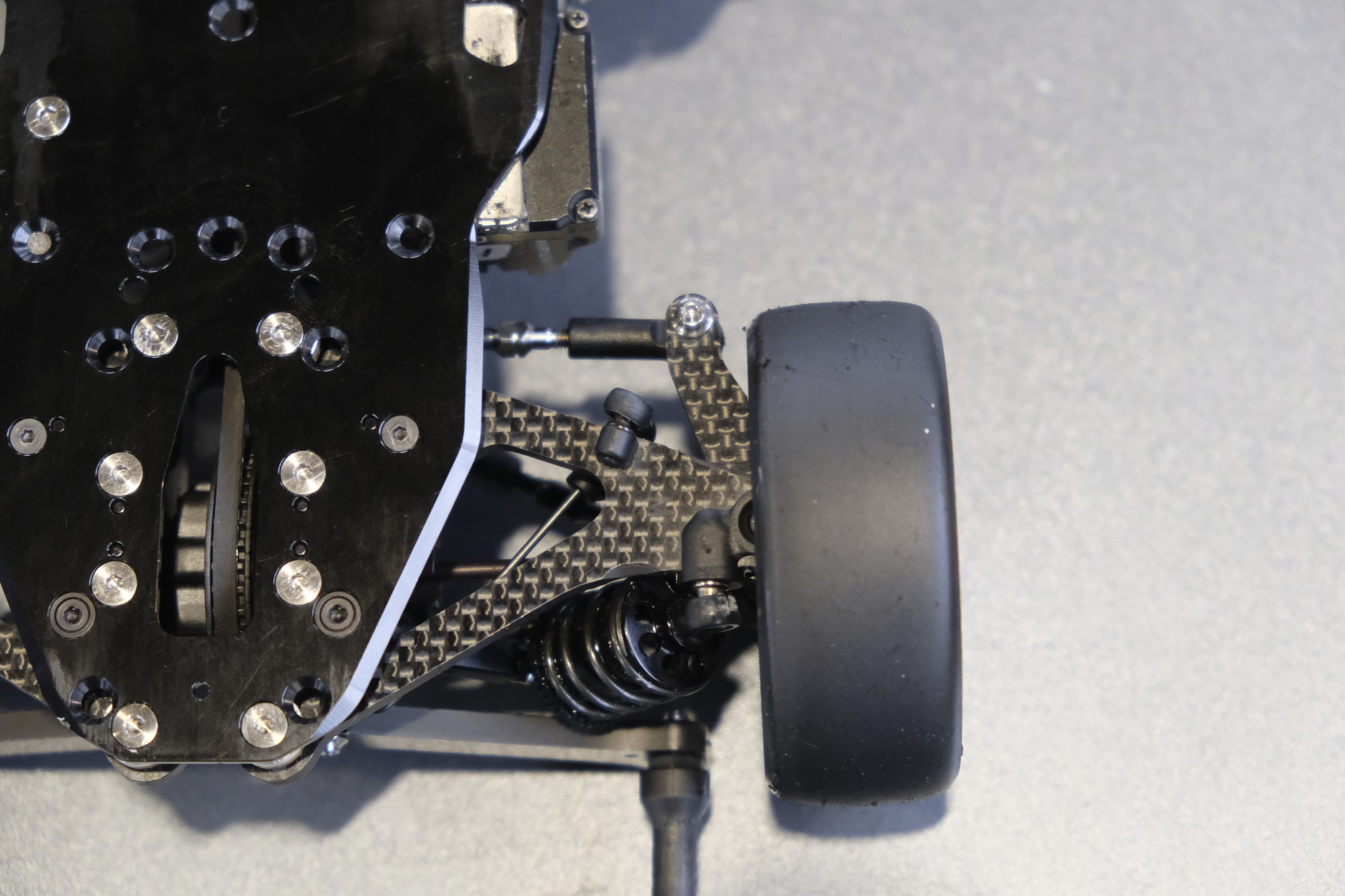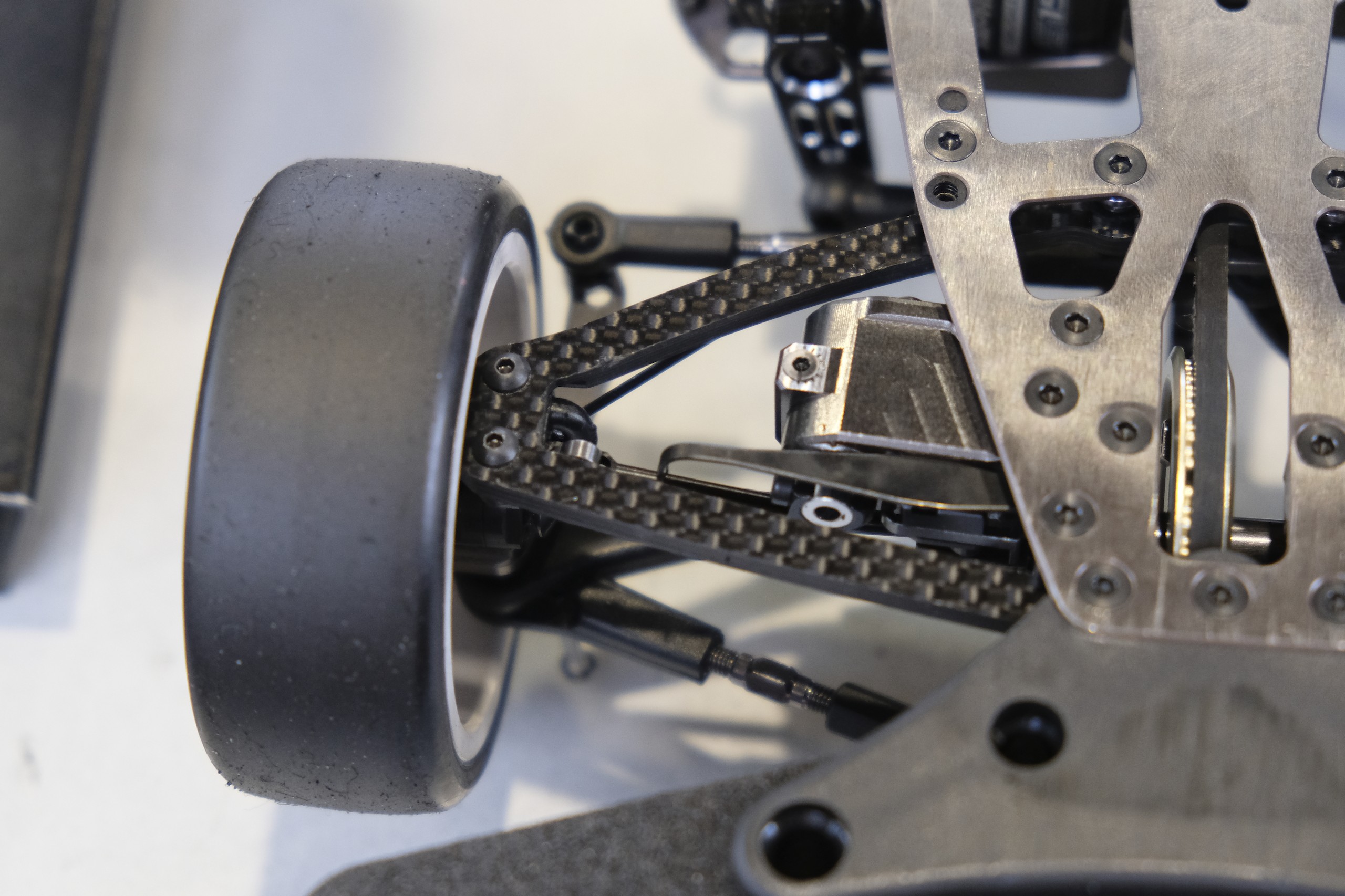 Technique châssis.Beaucoup de propriétaires de Tamiya TRF421 souhaiteraient remplacer les bras de direction en aluminium des porte-fusées d'origine par des versions en carbone, surtout à l'avant, car ils ont tendance à se voiler en cas de chocs un peu violent. Il en existe déjà, par exemple chez le fabricant anglais M-Racing (de qualité inconnue) et chez le fabricant hong-kongais H2RD. Malheureusement, chez ce dernier, la qualité n’est pas vraiment au rendez-vous. En effet, le trou oblong de ces bras est trop large d’environ 0.3mm. Ils sont donc inutilisables en l’état. Seul solution, combler ce vide tant bien que mal avec de la colle cyanoacrylate... Il est d'ailleurs sidérant de voir qu'aucun fabricant ne propose d'options pour la Tamiya TRF421 alors qu'il y a des besoins évidents (il suffit de trainer un peu sur les forums et les réseaux sociaux...) alors que ces mêmes fabricants proposent une ribambelle d'options inutiles pour des autos qui ont des volumes de vente infiniments plus faibles que pour ladite TRF421... Des bras de direction en carbone des porte-fusées pour TRF421 en photos ci-contre étaient en test lors de lors de cette course. Ils se différencient des H2RD par une qualité de carbone différente (la trame visible du tissu de carbone étant plus proche de celle proposée par Tamiya) et un usinage du trou oblong serré, ce qui est voulu et ce qui est très bien pour le guidage, mais qui impose un montage soigné bien à plat. Made in Besançon en France, il devrait bientôt être disponible dans la gamme de pièces THG du magasin français The Hobbies Gate. |