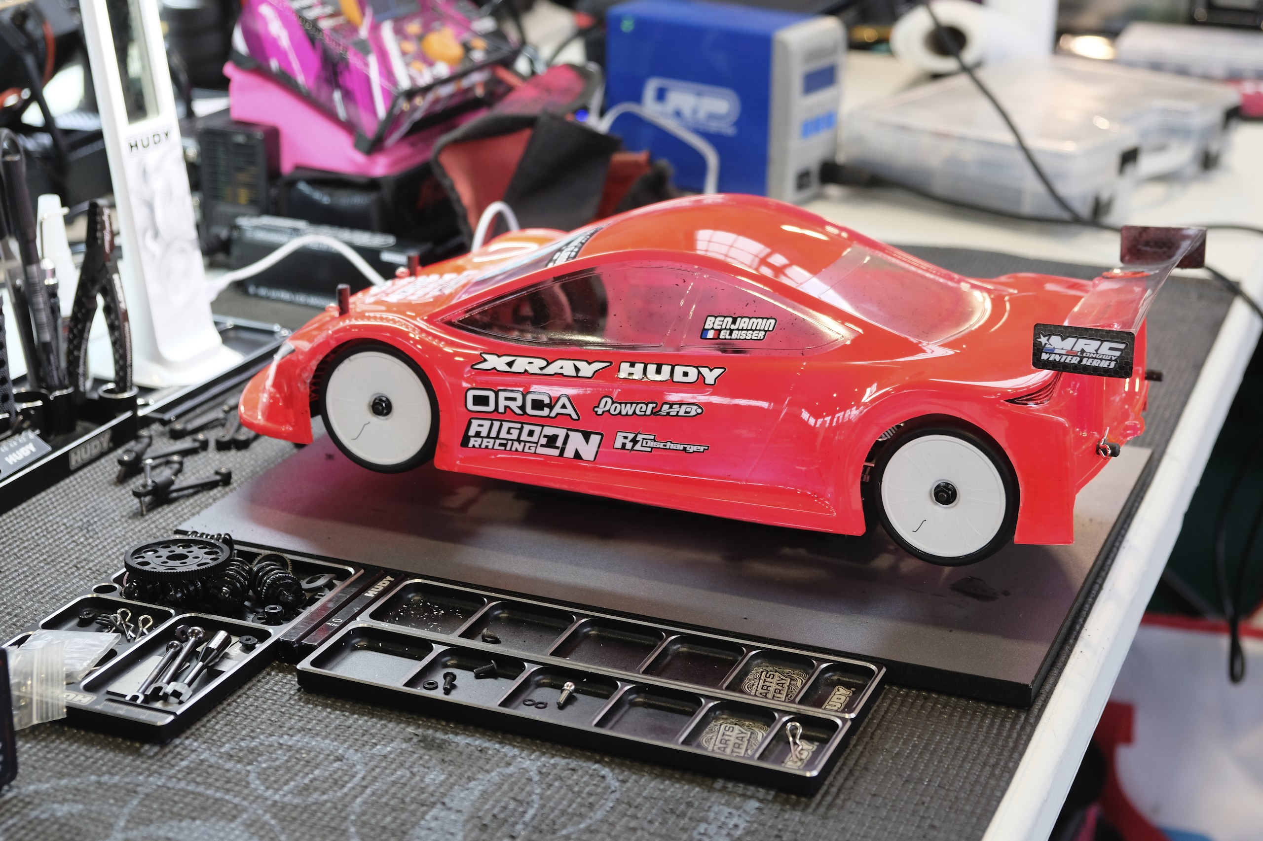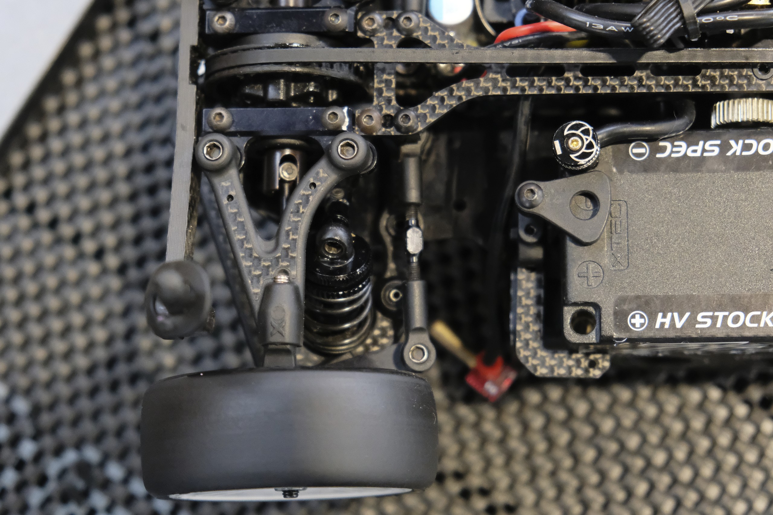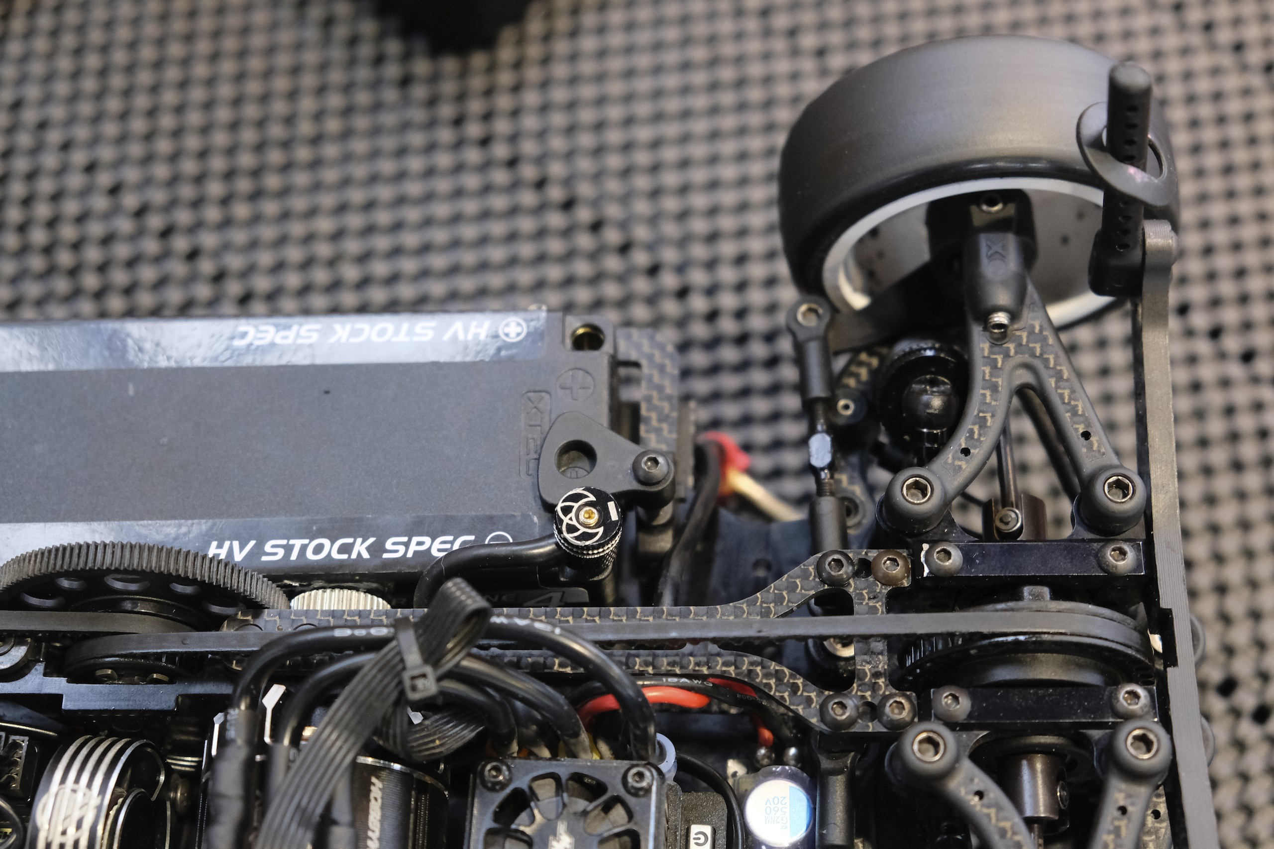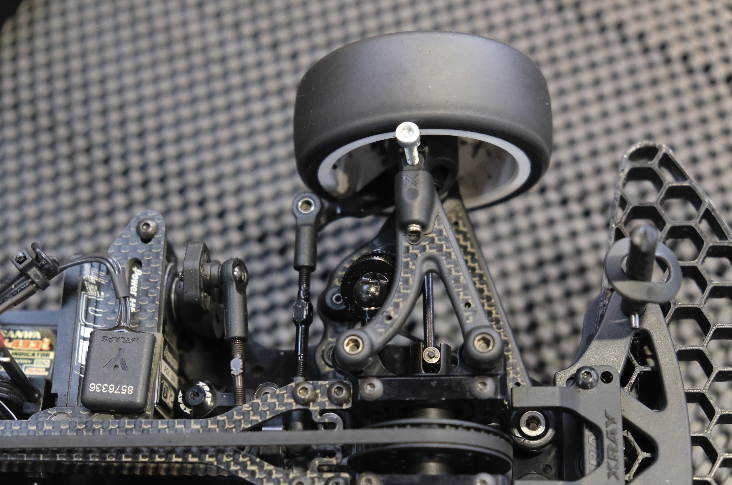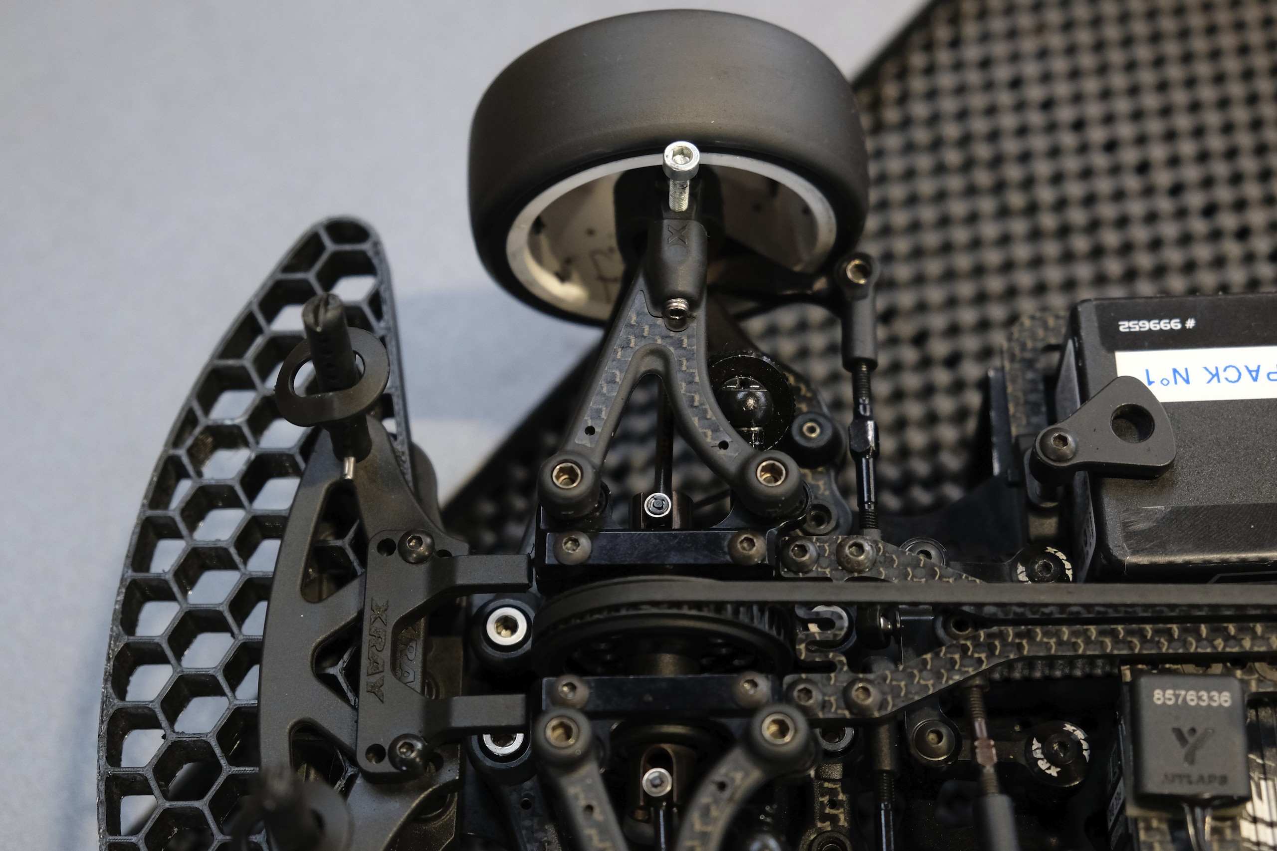 Technique châssis.La Team XRay X4 2026 de Benjamin Elbisser.La Team XRay X4 2026 est une des grosses nouveautés du début de la saison hivernale. Elle fait donc l'objet d'une présentation détaillée à la page suivante: "Présentation: la Touring Car 1/10° électrique Team XRay X4 2026". La Team XRay X4 2026 de Benjamin Elbisser, poleman et vainqueur de la finale A, en photos ci-dessous, est montée avec le châssis en aluminium et les triangles supérieurs à doubles biellettes On notera également la présence de visserie en titane à tête UFO et de biellettes à pas inversé et de bielletes en titane au niveau de la direction et de l'ARS d'origineT-Works. L'auto est équipée d'un moteur Orca brushless Boost Plus Outlow 17.5T, d'un contrôleur OE1 Mark II et de batteries LiPo de la même marque. Le servo de direction est un PowerHD S15-X, spécialement conçu pour les Team Xray X4. Il se distingue par l'absence de fixations d'origine, se fixant directement sur le châssis, et par une sortie de fil déportée vers la droite du boîtier, côté centre du châssis, permettant une installation plus propre de l'électronique. La partie radiocommande est confiée à une Sanwa M17S associée à un récepteur RX492i. |
