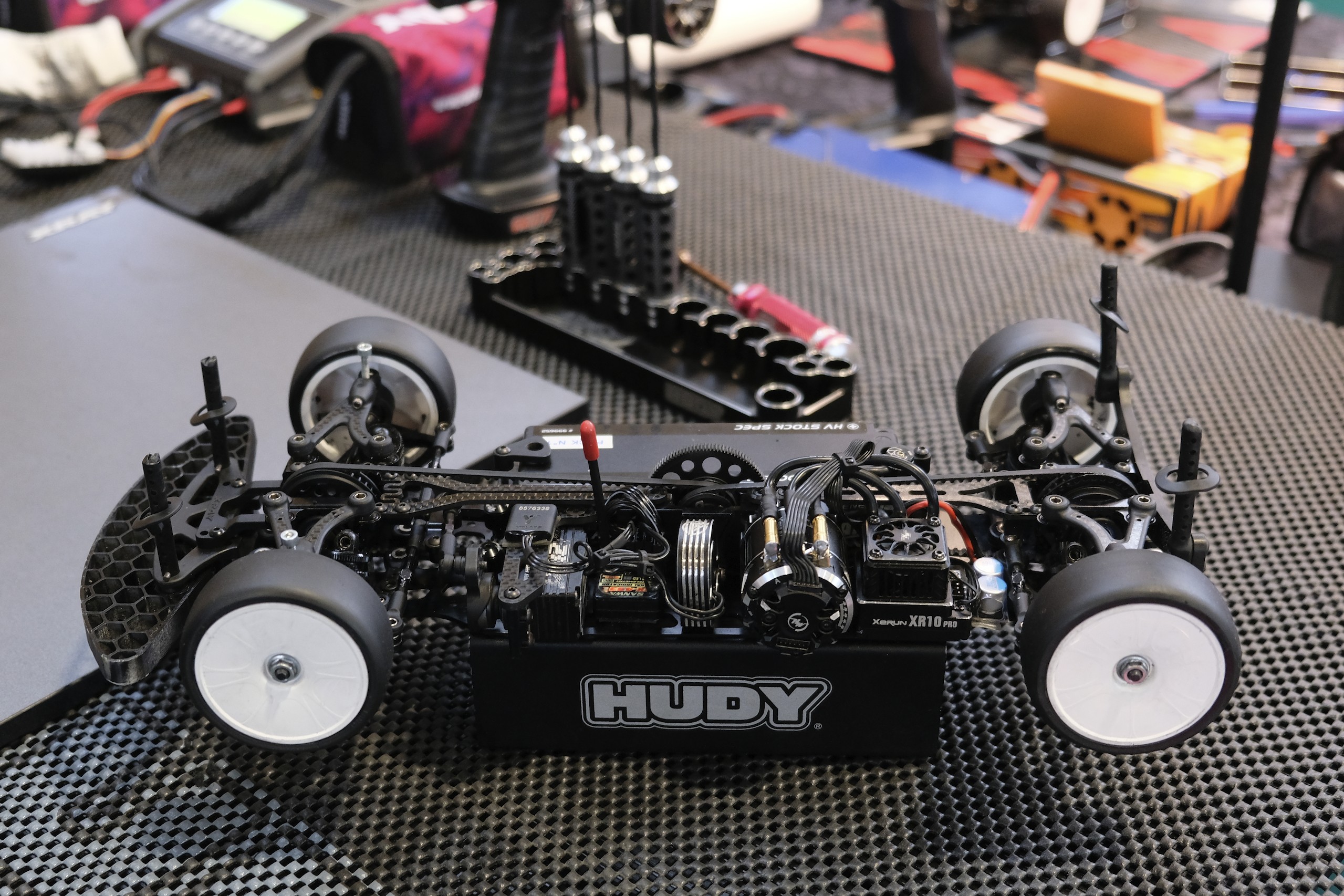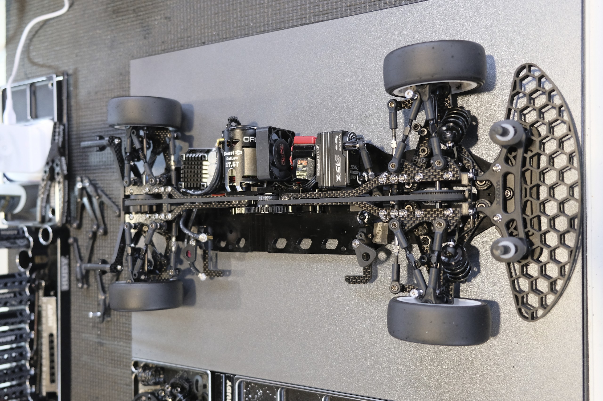 Une Team XRay X4 2025.La Team XRay X4 2025 avec châssis en aluminium ci-dessous est motorisée par un moteur brushless 17.5T Hobbywing Xerun V10 Pro G4 associé à d'un contrôleur Xerun XR10 Pro G2S de la même marque, alimenté par des batteries LiHV LCG de 7400mAh de marque Nosramc3. La partie radiocommande est confiée à Futaba et le servo de direction est un "low-profile" de marque PowerHD référence D12W. |