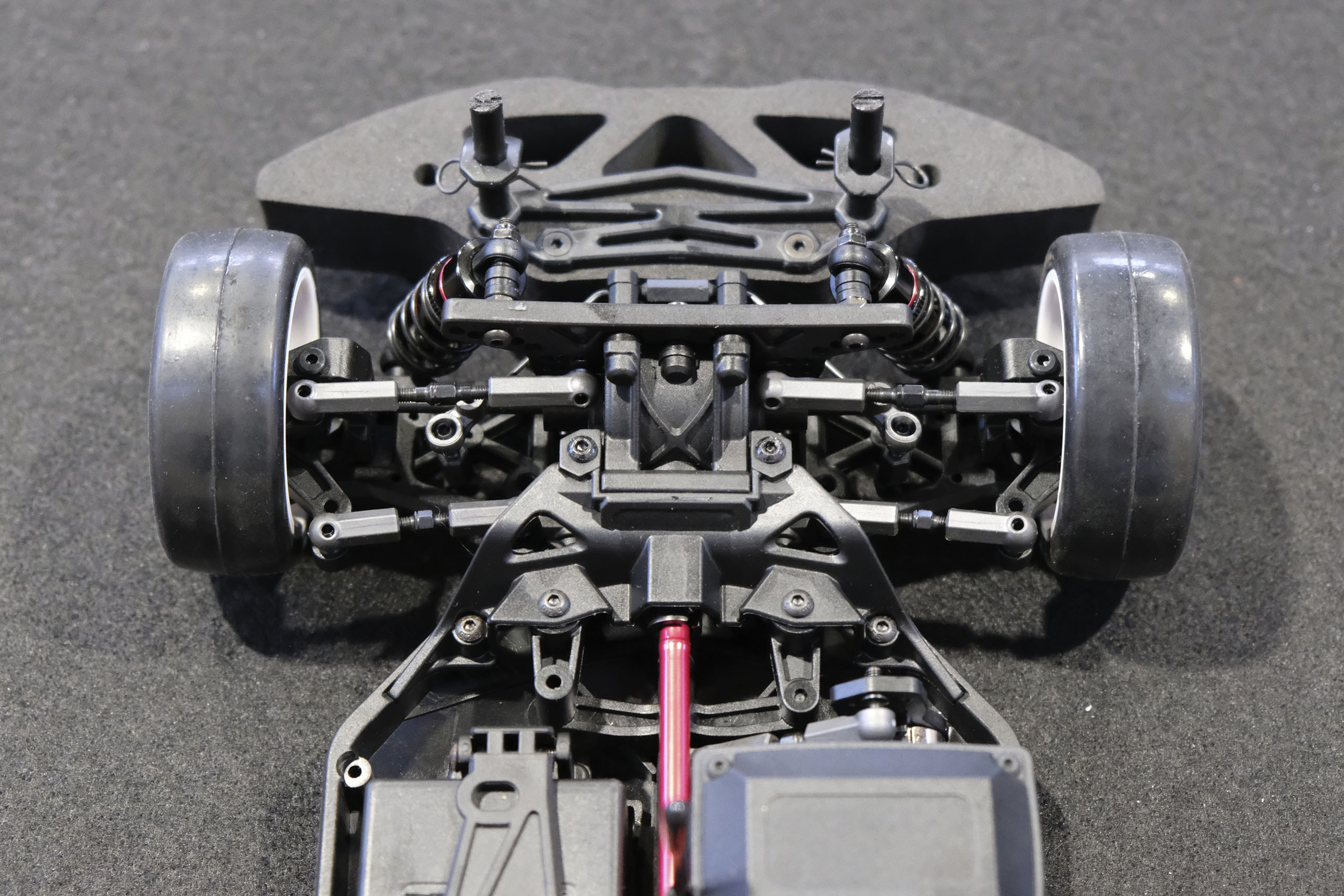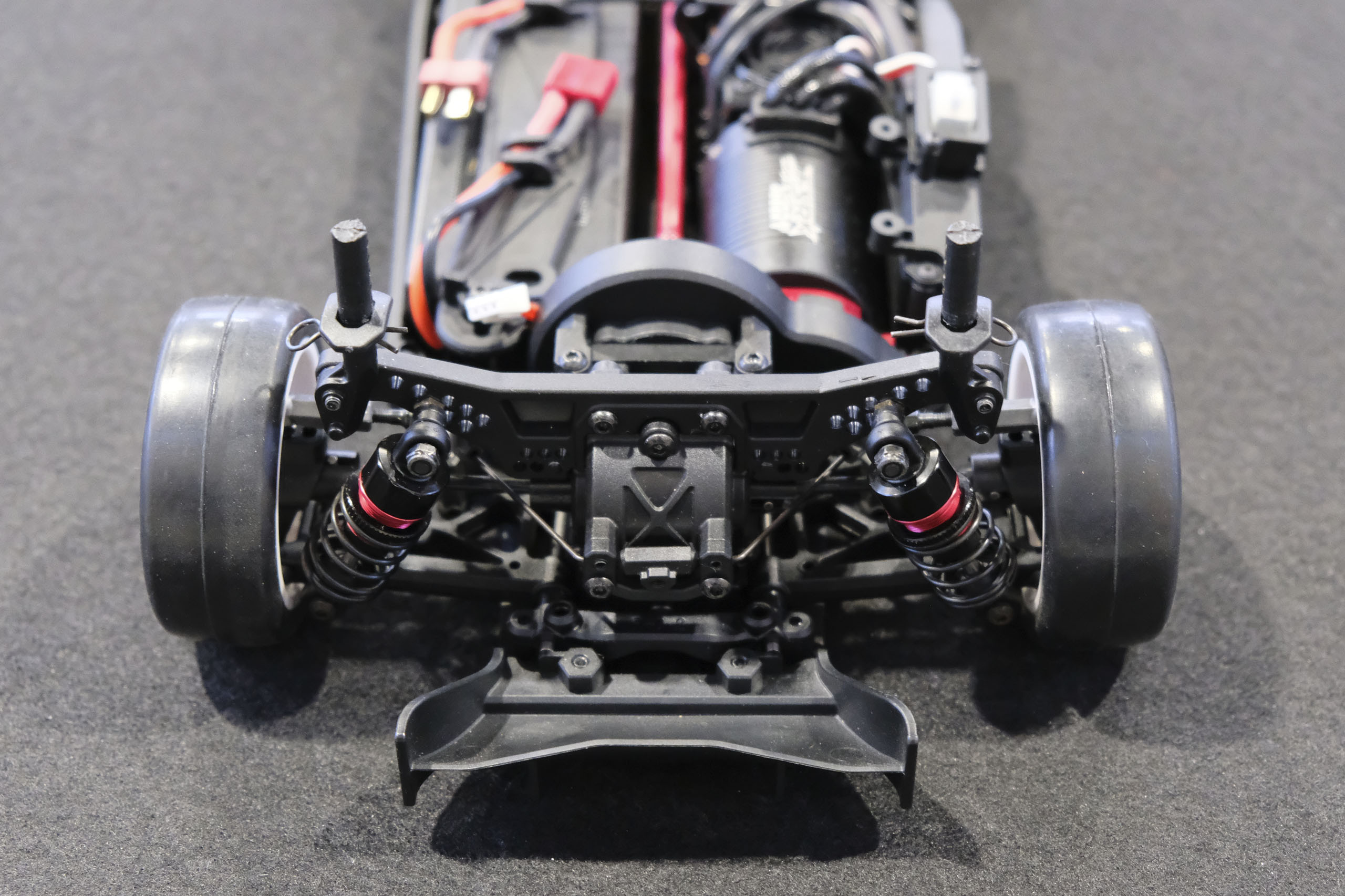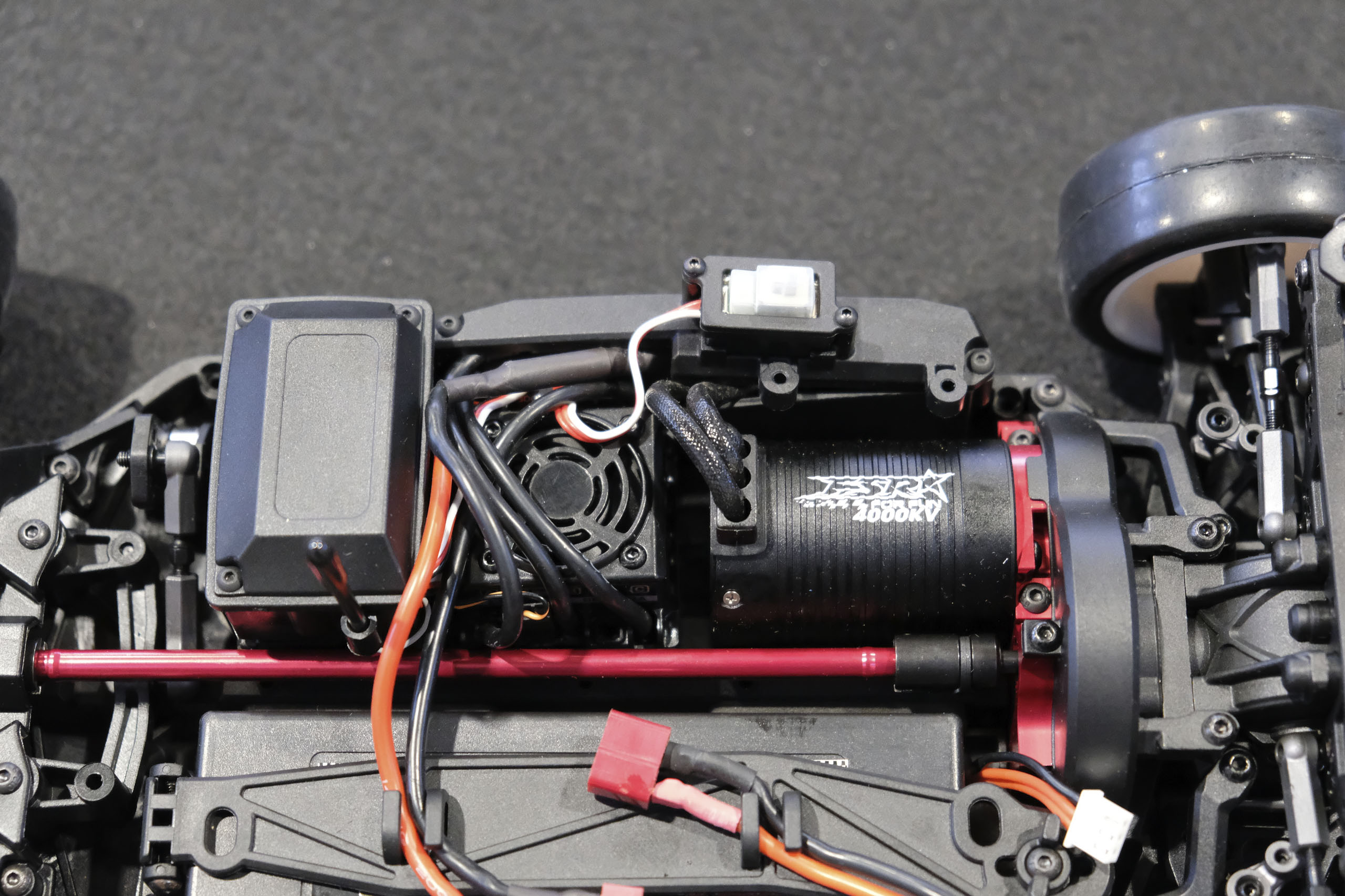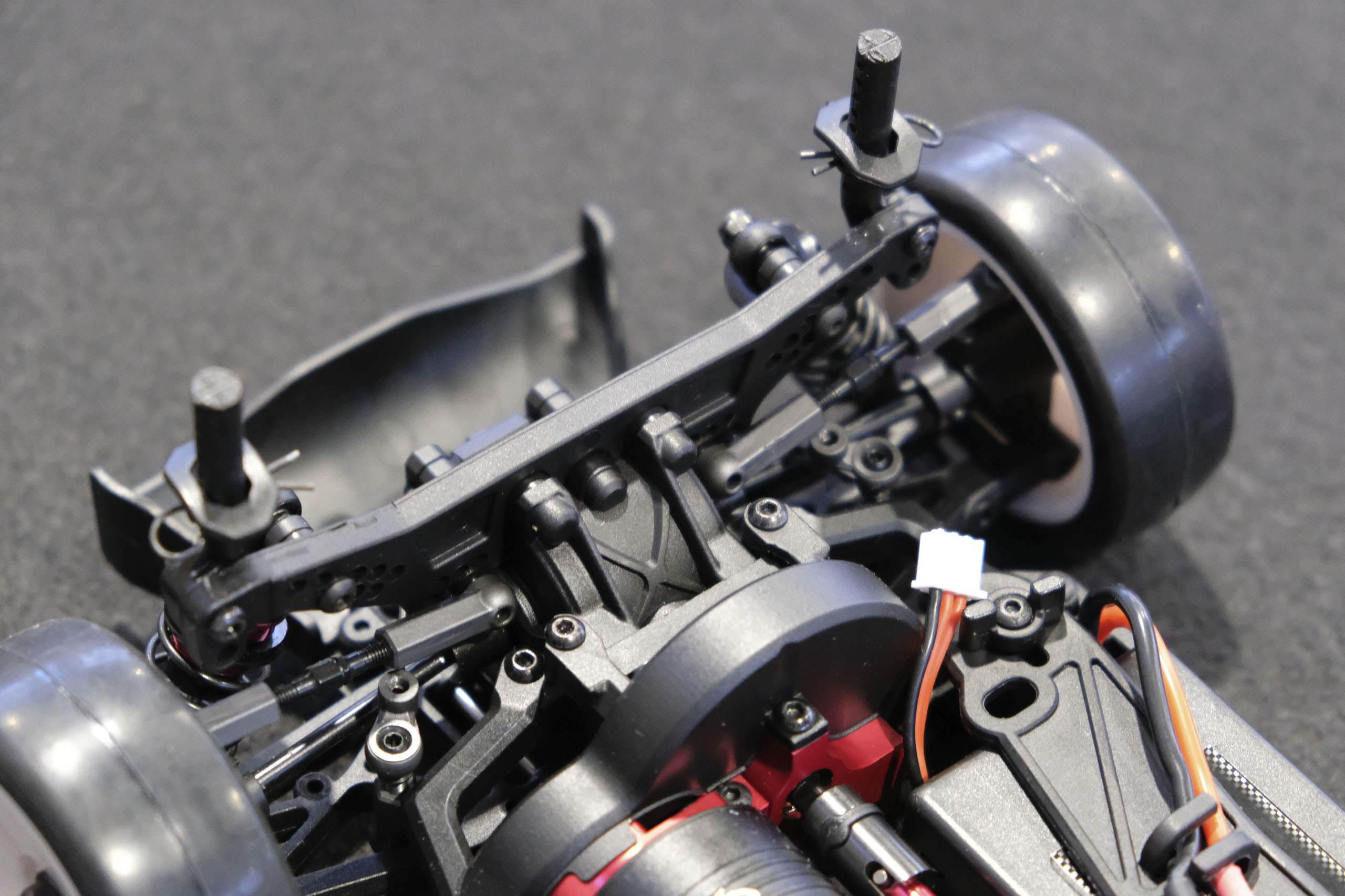 Tout d'abord, un grand merci à Xavier qui m'a confié son auto pour ces séances photos! Xavier, manager du magasin français The Hobbies Gate, m'a présenté ce nouveau châssis Touring 1/10° électrique entrée-de-gamme de la marque WEXRC, la Coupe, qui se présente sous forme RTR, soit en configuration avec un moteur à charbons, soit en configuration avec un moteur brushless sensorless. Une version kit à monter devrait suivre bientôt. La version en configuration avec un moteur brushless sensorless est livrée avec une petite radiocommande 2.4GHz, un servo de direction annoncé à 6kg, un contrôleur brushless de 50A et son moteur associé annoncé à 4000kV (toutes ces valeurs n'étant pas normalisées, elles n'ont qu'une fonction indicative), une batterie 7.4 V 2000 mAh avec boîtier rigide, et un chargeur USB (très léger, mais qui a le mérite d'être livré). Elle est proposée aux alentours de 270€ dans cette configuration. A priori, le châssis en tant que tel a l'air très sympathique, avec une conception soignée, et un équipement fourni (amortisseurs à huile avec corps en aluminium, biellettes à pas inversé, barres anti-roulis, cardan central en aluminium, etc.). Dans la futur version kit à monter, elle pourrait constituer une bonne option pour les petits budgets souhaitant s'initier à la compétition. A suivre de près donc! |