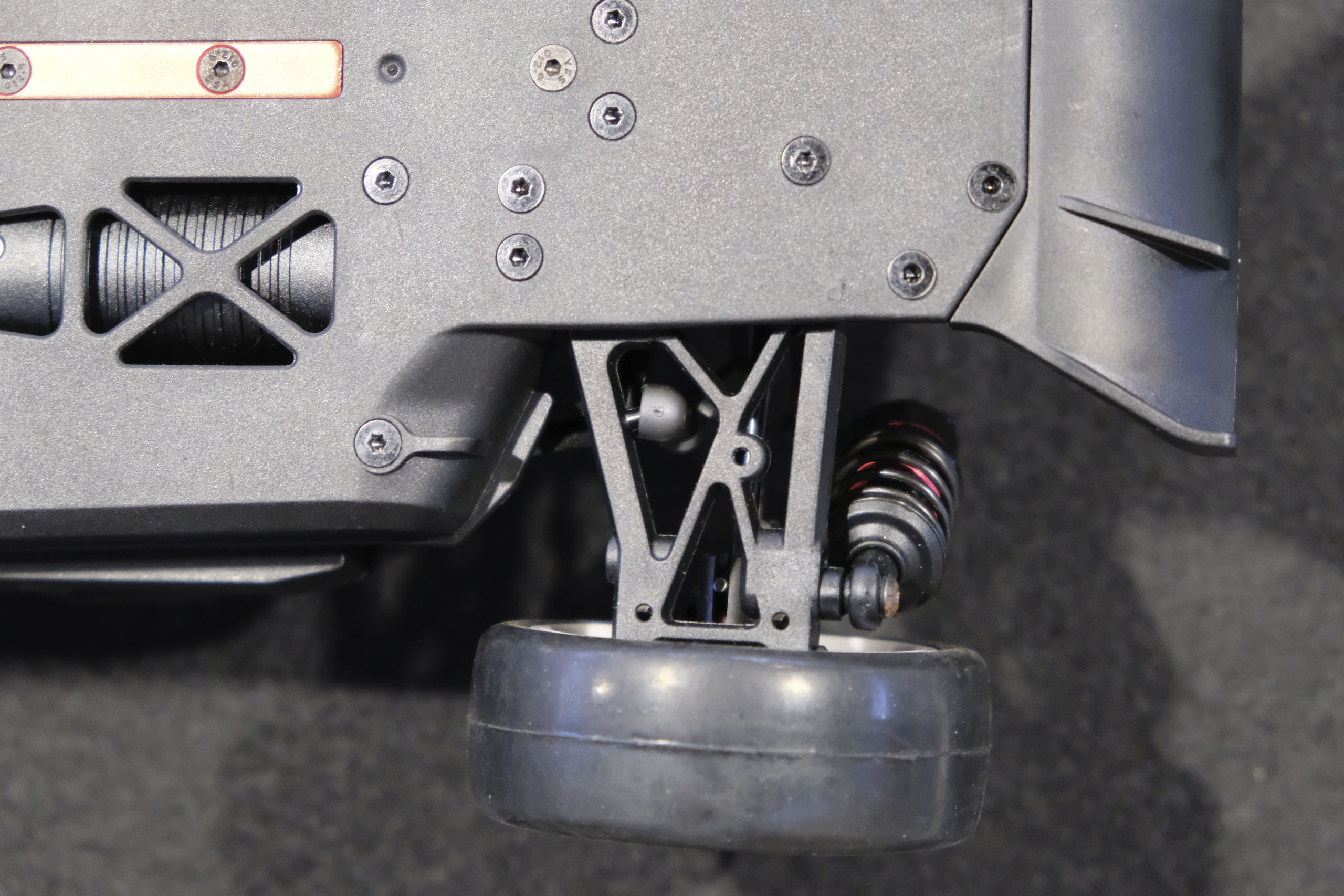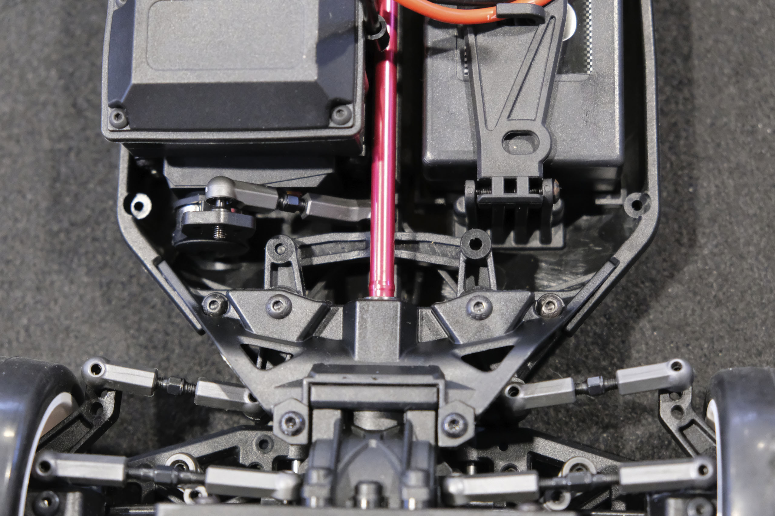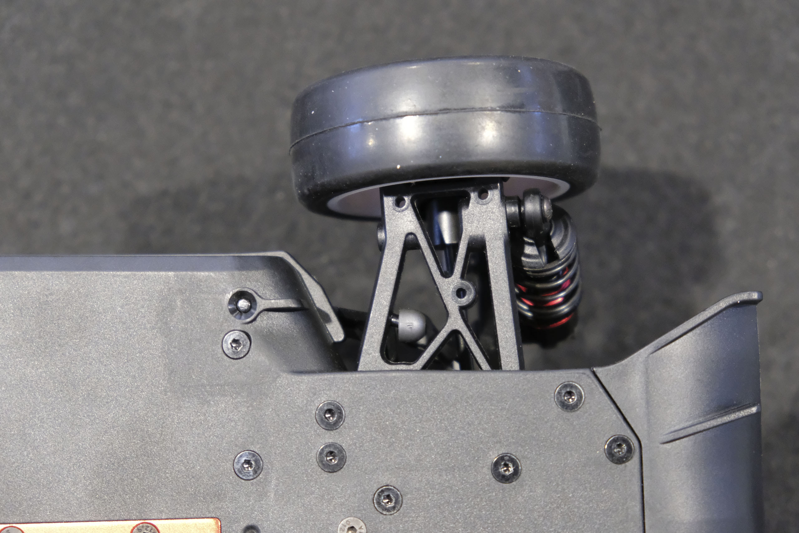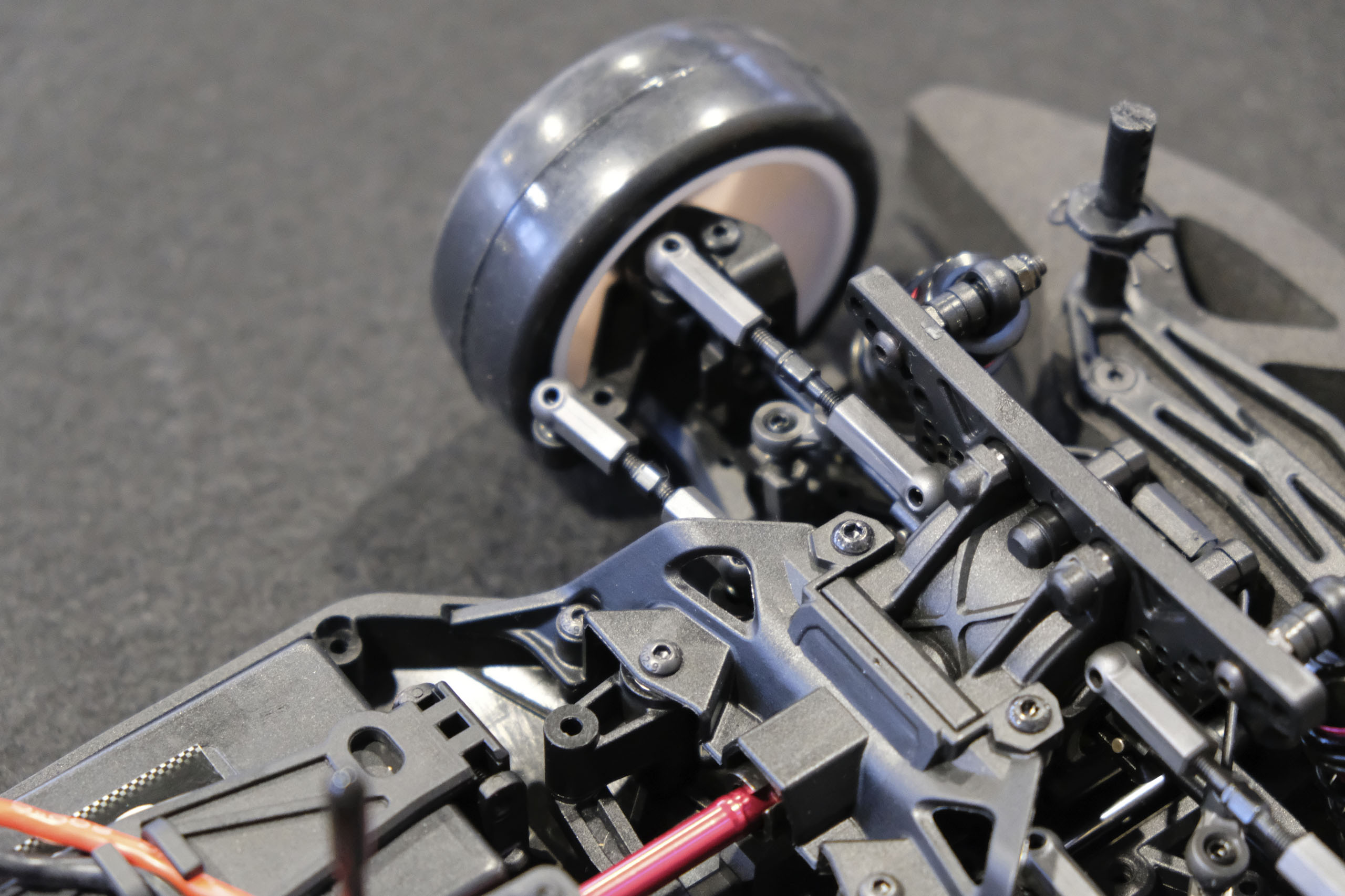Tout d'abord, un grand merci à Xavier qui m'a confié son auto pour ces séances photos! Xavier, manager du magasin français The Hobbies Gate, m'a présenté ce nouveau châssis Touring 1/10° électrique entrée-de-gamme de la marque WEXRC, la Coupe, qui se présente sous forme RTR, soit en configuration avec un moteur à charbons, soit en configuration avec un moteur brushless sensorless. Une version kit à monter devrait suivre bientôt. La version en configuration avec un moteur brushless sensorless est livrée avec une petite radiocommande 2.4GHz, un servo de direction annoncé à 6kg, un contrôleur brushless de 50A et son moteur associé annoncé à 4000kV (toutes ces valeurs n'étant pas normalisées, elles n'ont qu'une fonction indicative), une batterie 7.4 V 2000 mAh avec boîtier rigide, et un chargeur USB (très léger, mais qui a le mérite d'être livré). Elle est proposée aux alentours de 270€ dans cette configuration. A priori, le châssis en tant que tel a l'air très sympathique, avec une conception soignée, et un équipement fourni (amortisseurs à huile avec corps en aluminium, biellettes à pas inversé, barres anti-roulis, cardan central en aluminium, etc.). Dans la futur version kit à monter, elle pourrait constituer une bonne option pour les petits budgets souhaitant s'initier à la compétition. A suivre de près donc! |