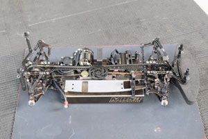 Tout d'abord, un grand merci à Alexis qui m'a confié son auto pour cette séance photos et pour les informations! Alexis Banderier, fondateur de flowRMX, roulait lors des deuxième et troisième et dernière manches des Indoorseries 2025-2026 qui se déroulaient à Savigny en Suisse avec une Awesomatix A800RR équipée des pièces prototypes de ce qui composera le futur kit de transformation proposée par cette toute nouvelle marque sur le marché qu'est flowRMX. L'idée derrière ce kit de transformation est de retrouver le comportement routier et le tempérament de la Awesomatix A800MMX (qui avait été testée en 2021 sur ce même site) tout en conservant les avantages techniques des versions A800R (présentée en 2023 sur ce même site) et A800RR. Les versions A800R et A800RR présentent par rapport à la version MMX des porte-à-faux avant et arrière fortement réduits, un objectif atteint notamment grâce à un châssis sensiblement plus court sans modification de l'empattement, à de nouveaux triangles inférieurs, ainsi qu'à un parechoc inférieur et sa platine redessinés. Cette réduction des porte-à-faux améliore le comportement de l'auto dans les phases d'accélération et de freinage. Les versions A800R et A800RR peuvent également bénéficier en option d'un châssis Awesomatix en acier inoxydable 420 (vendu sous la référence SCC pour le kit de conversion complet et sous la référence C01B-RS pour le châssis seul), matière très à la mode en ce moment, ou bien de celui d'un autre optionneur (WeiRC, Takashima, etc). Il est plus difficile d'en trouver un pour la version MMX. Toutefois malgré ses évolutions techniquement fort intéressantes, certains pilotes de A800R et A800RR semblent regretter la facilité de pilotage et de réglage de l'ancienne version MMX. Pour répondre à ce besoin identifié, le kit de transformation flowRMX se compose donc d'un châssis en acier inoxydable de 1.2mm d'épaisseur, d'un ensemble de vis à tête fraisée à angle de cône spécifique, et de quatre triangles FL, FR, RL et RR. Ces triangles reprennent le concept d'avoir des longueurs différentes à l'avant et à l'arrière, mais avec un dessin spécifique adapté à l'architecture des versions A800R et A800RR. Ce kit de transformation se propose donc de réunir les qualités routières de la version MMX et les évolutions techniques des versions R et RR sur une même auto. flowRMX annonce sur son site internet un pilotage avec "plus de fluidité, plus de confiance et plus de régularité". Le prix annoncé pour ce kit de transformation se situe actuellement juste sous la barre des 200€, et pour chaque triangle, sous la barre des 15€. L'auto d'Alexis, photographiée lors de la troisième et dernière manches des Indoorseries 2025-2026, est équipée d'un moteur brushless Hobbywing Xerun V10 G4, d'un régulateur Xerun XR10 Pro Elite G2S de la même marque, d'un servo de direction low-profile PowerHD S15. La partie radiocommande est confiée à Sanwa. |
